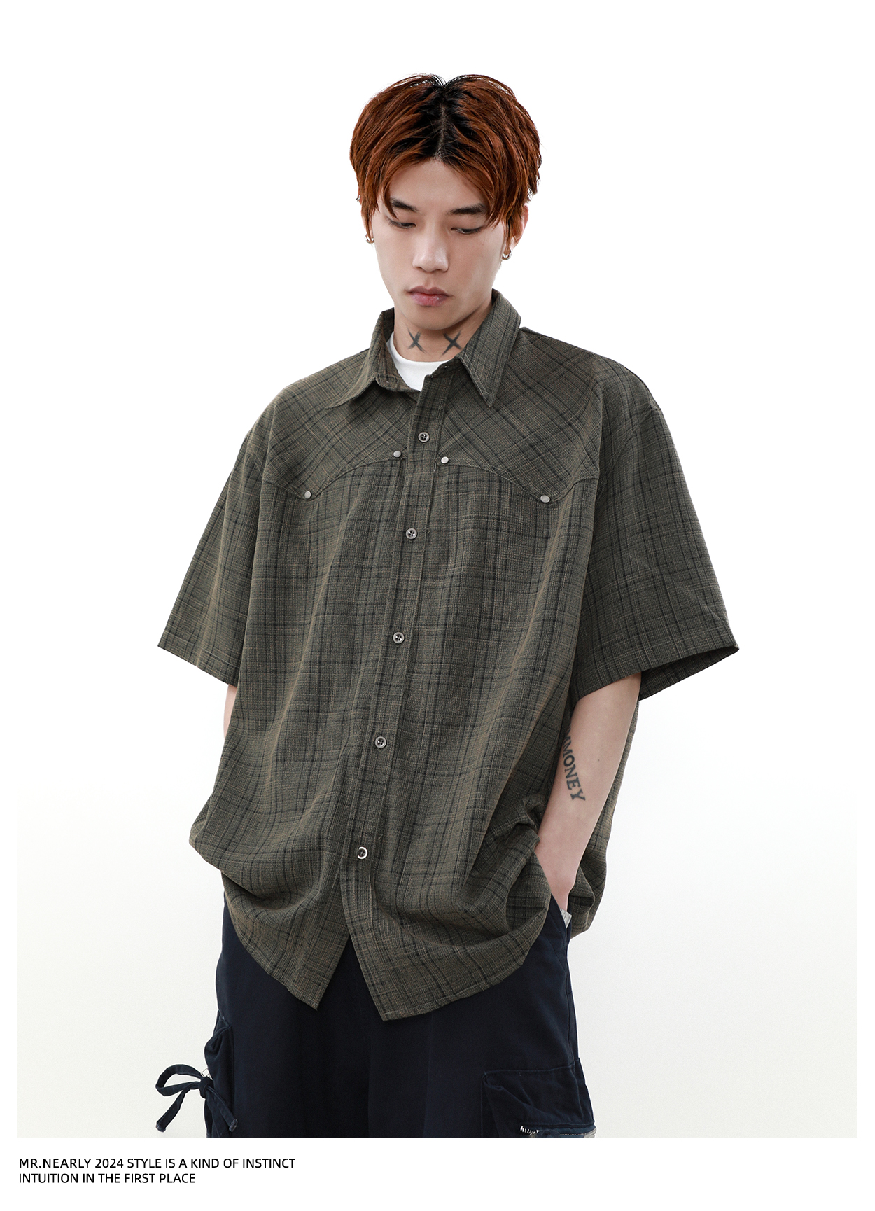 Retro Casual Plaid Short Sleeve Shirt WN4945