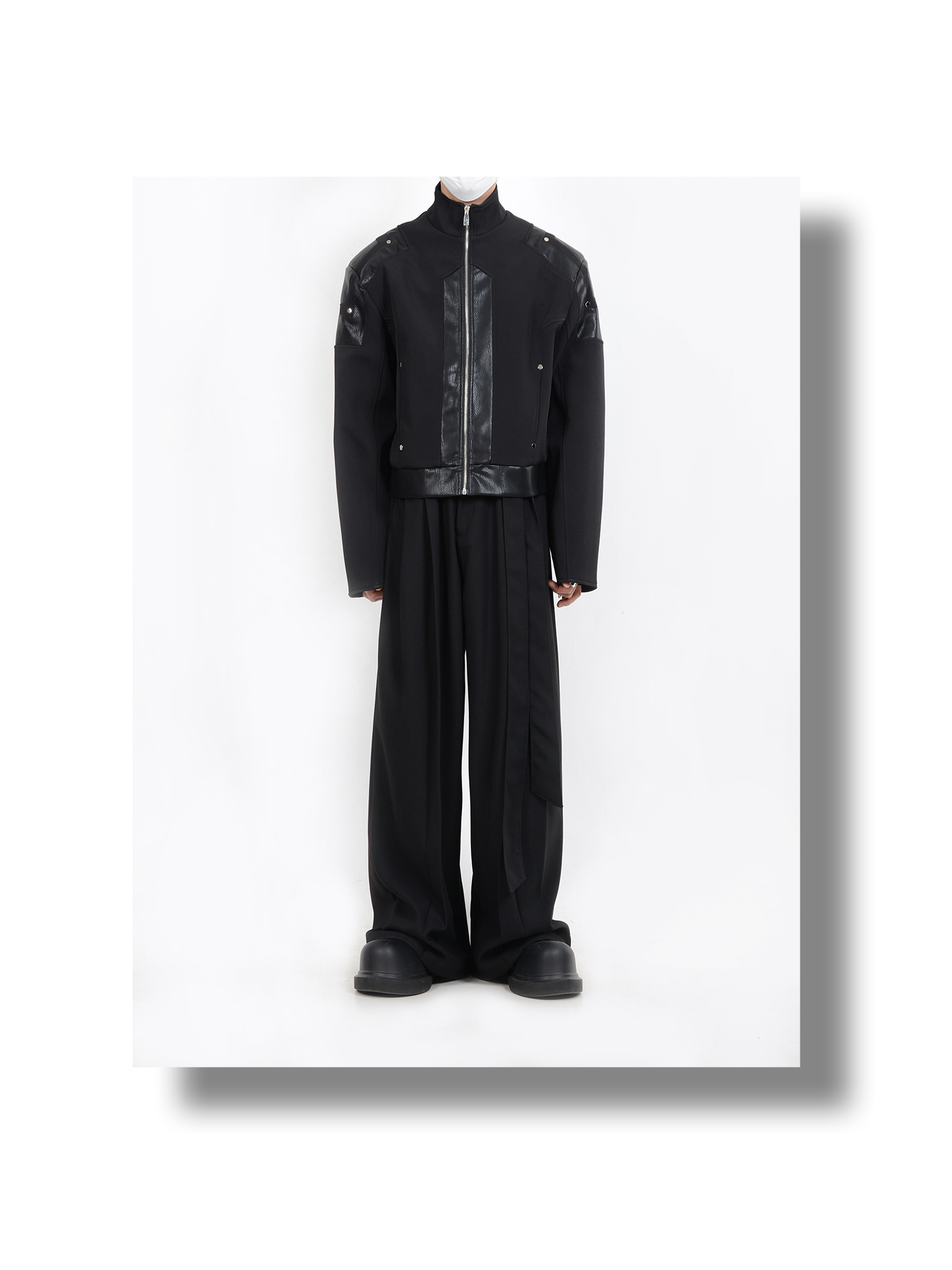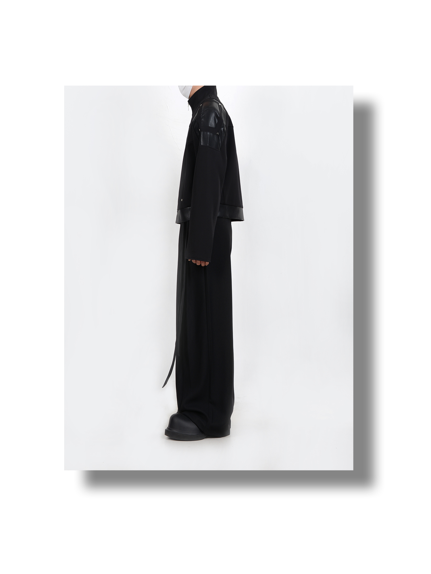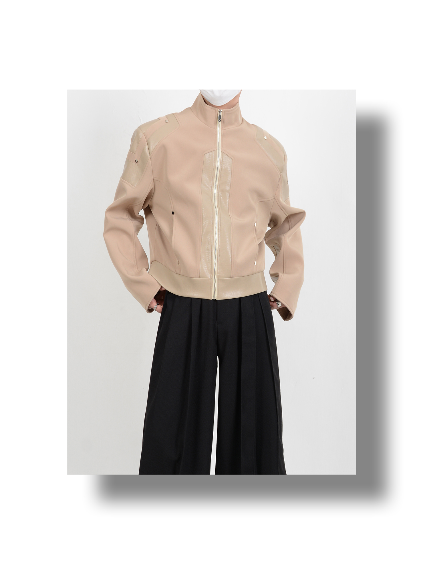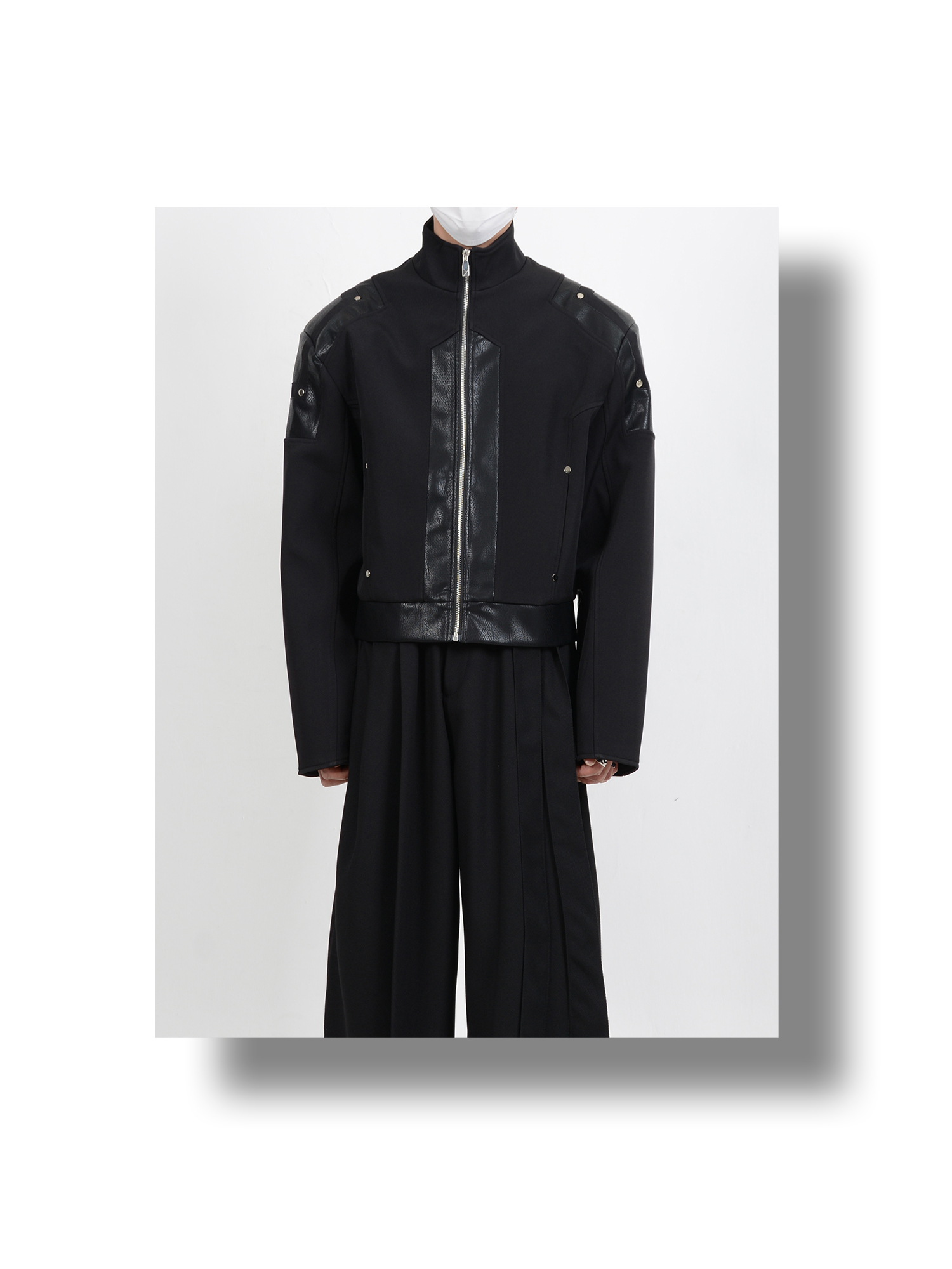 Stand Neck PU Leather Mix Short Jacket WN5116