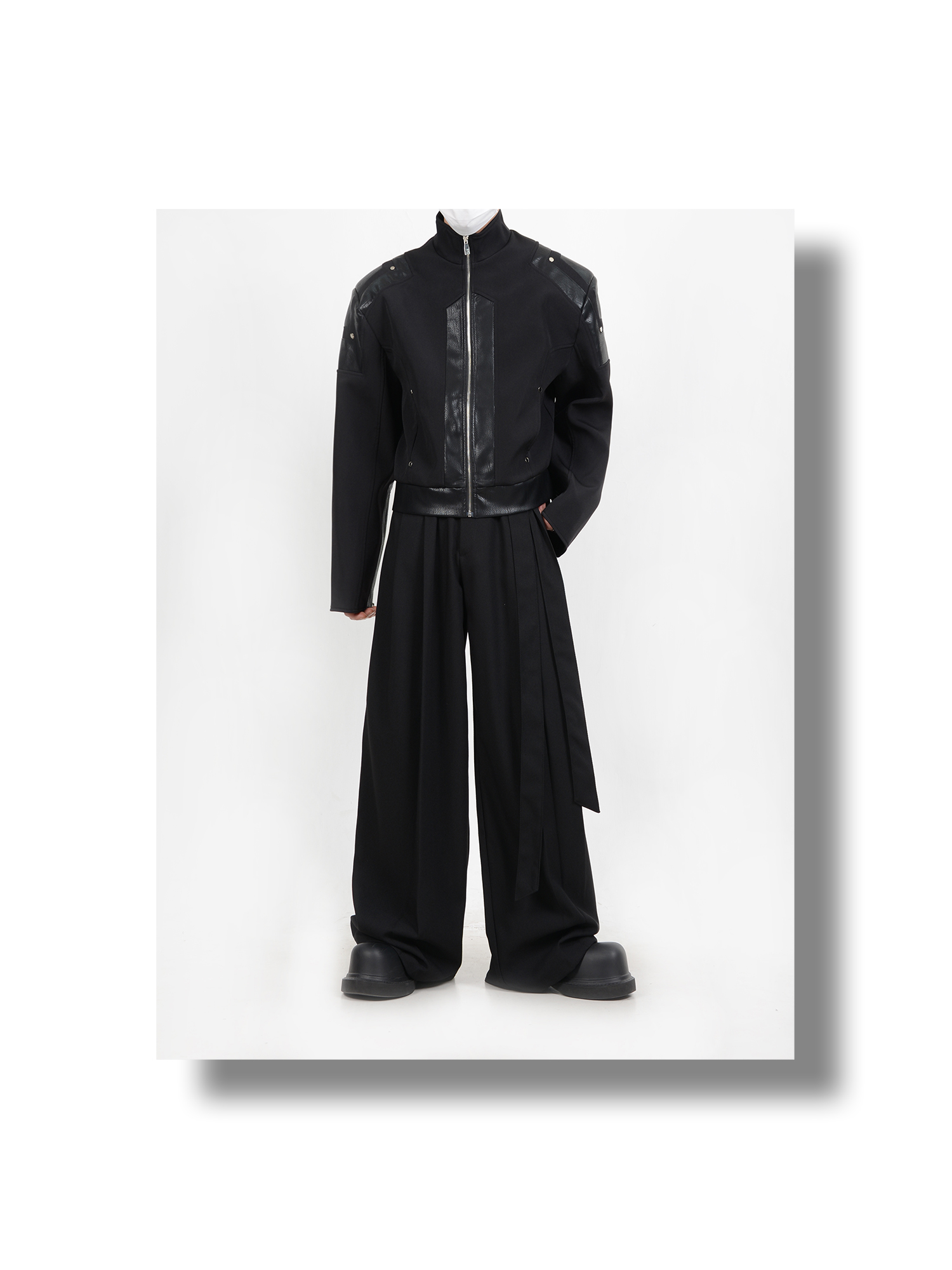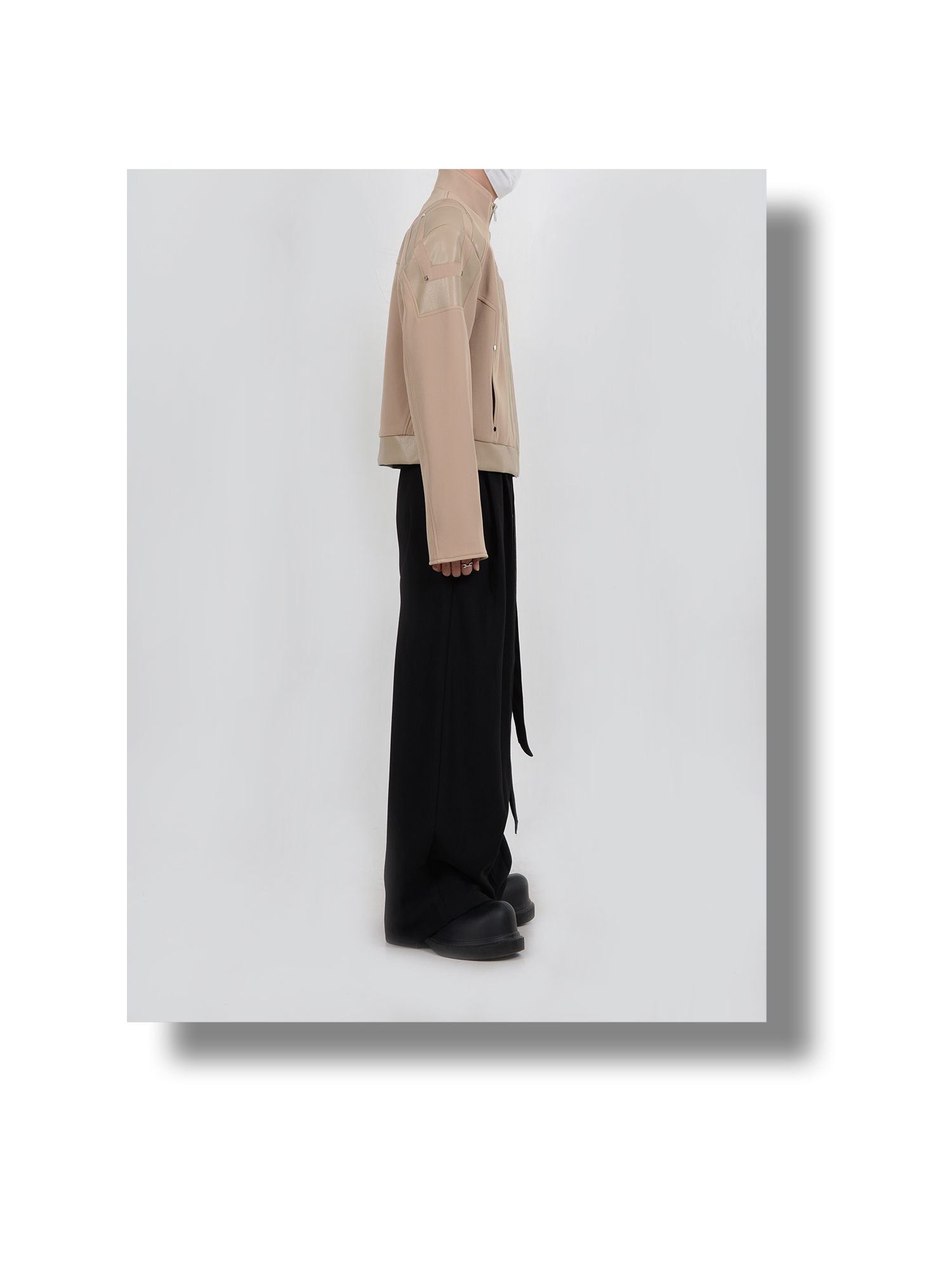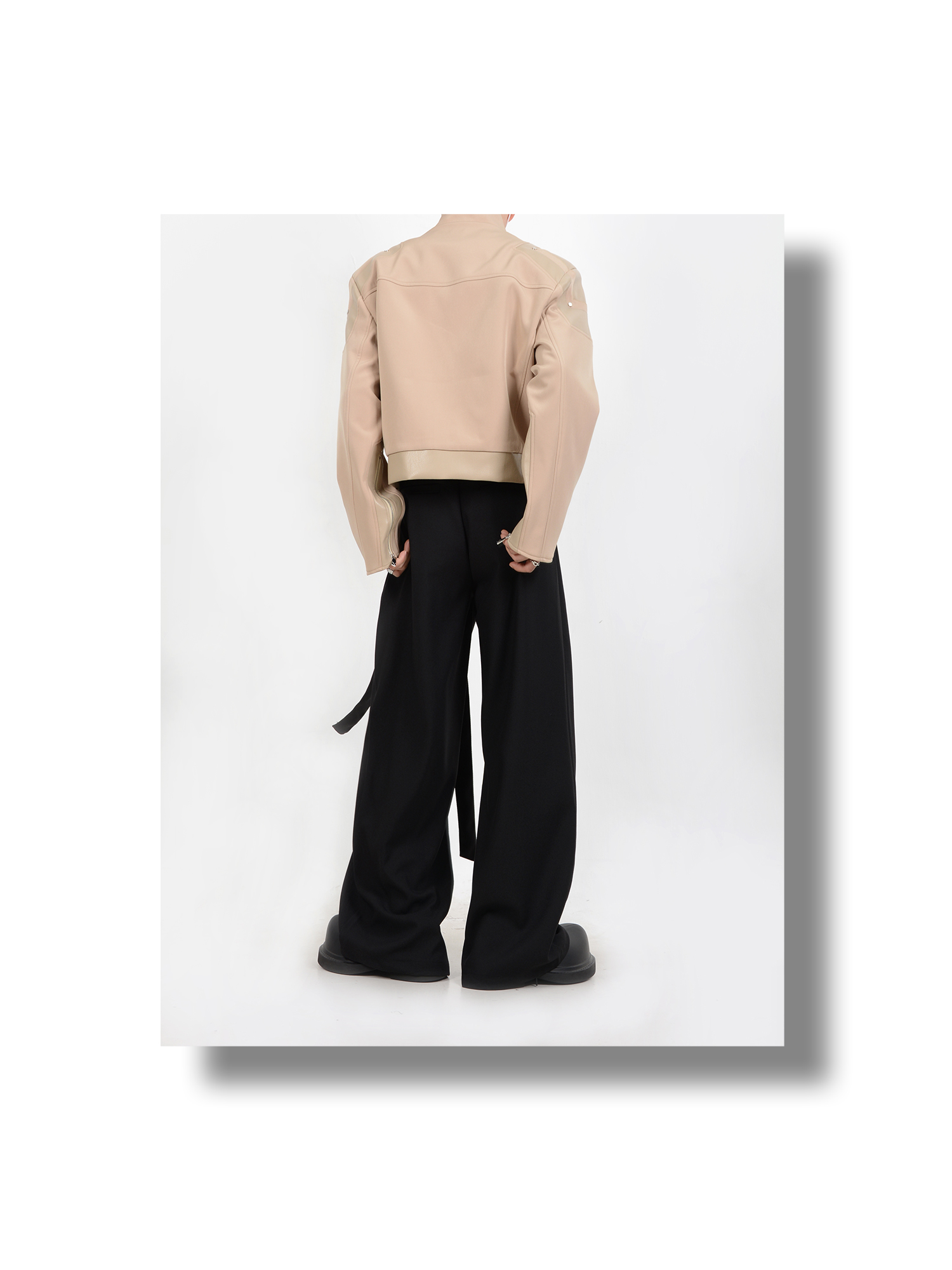 Stand Neck PU Leather Mix Short Jacket WN5116