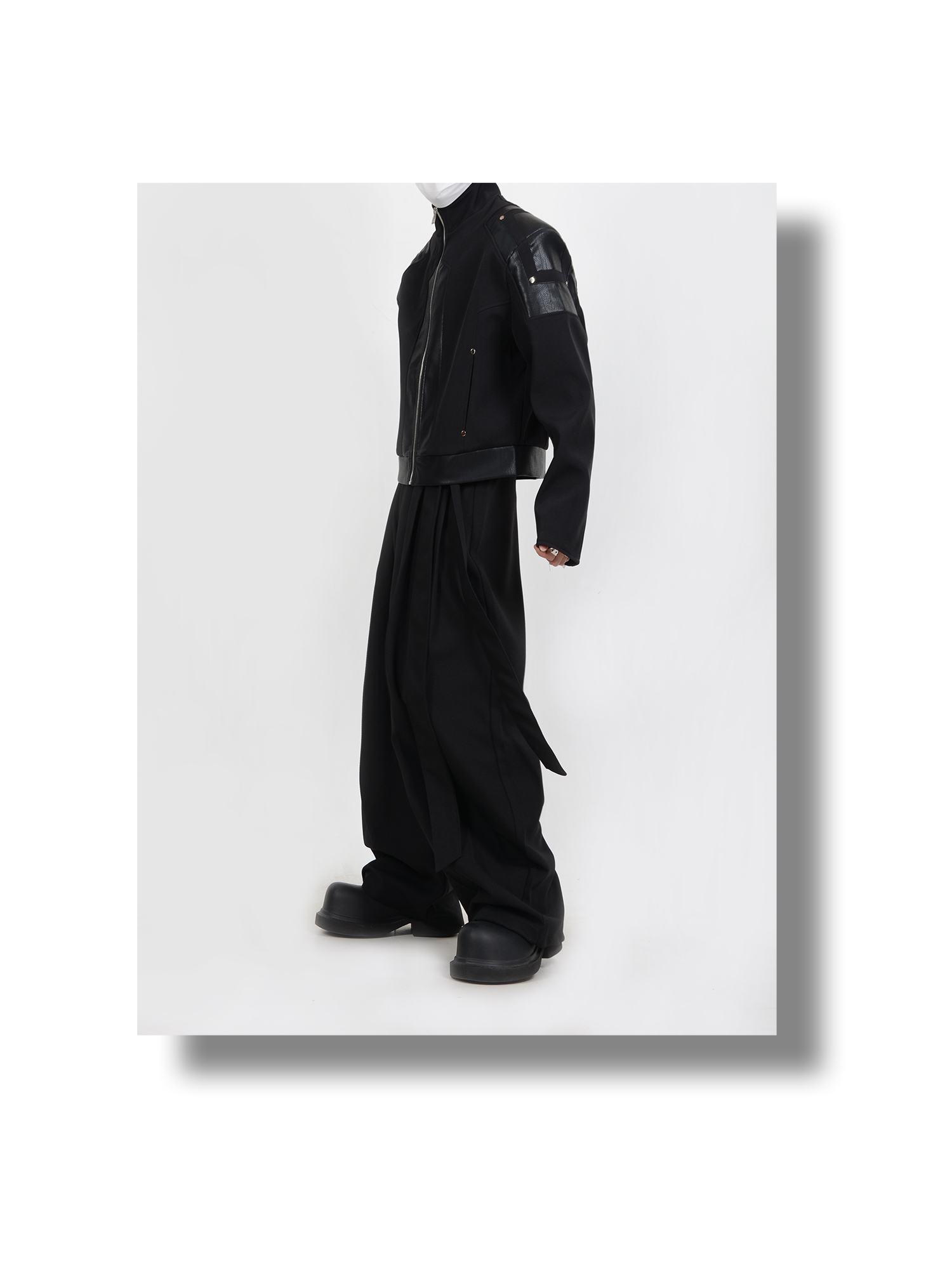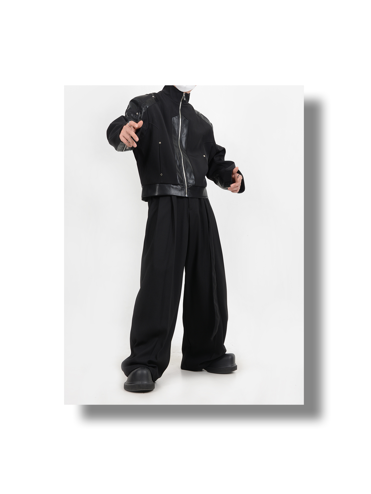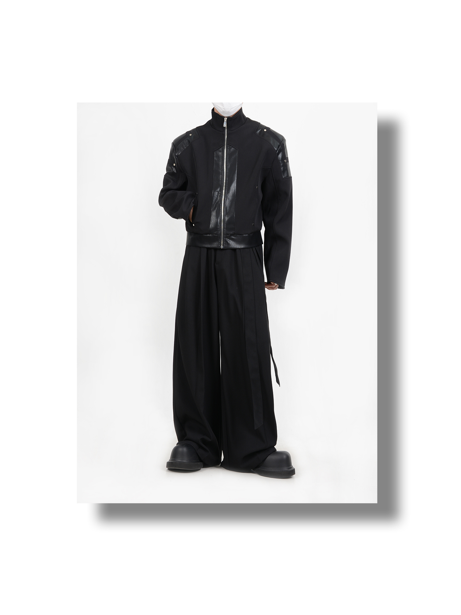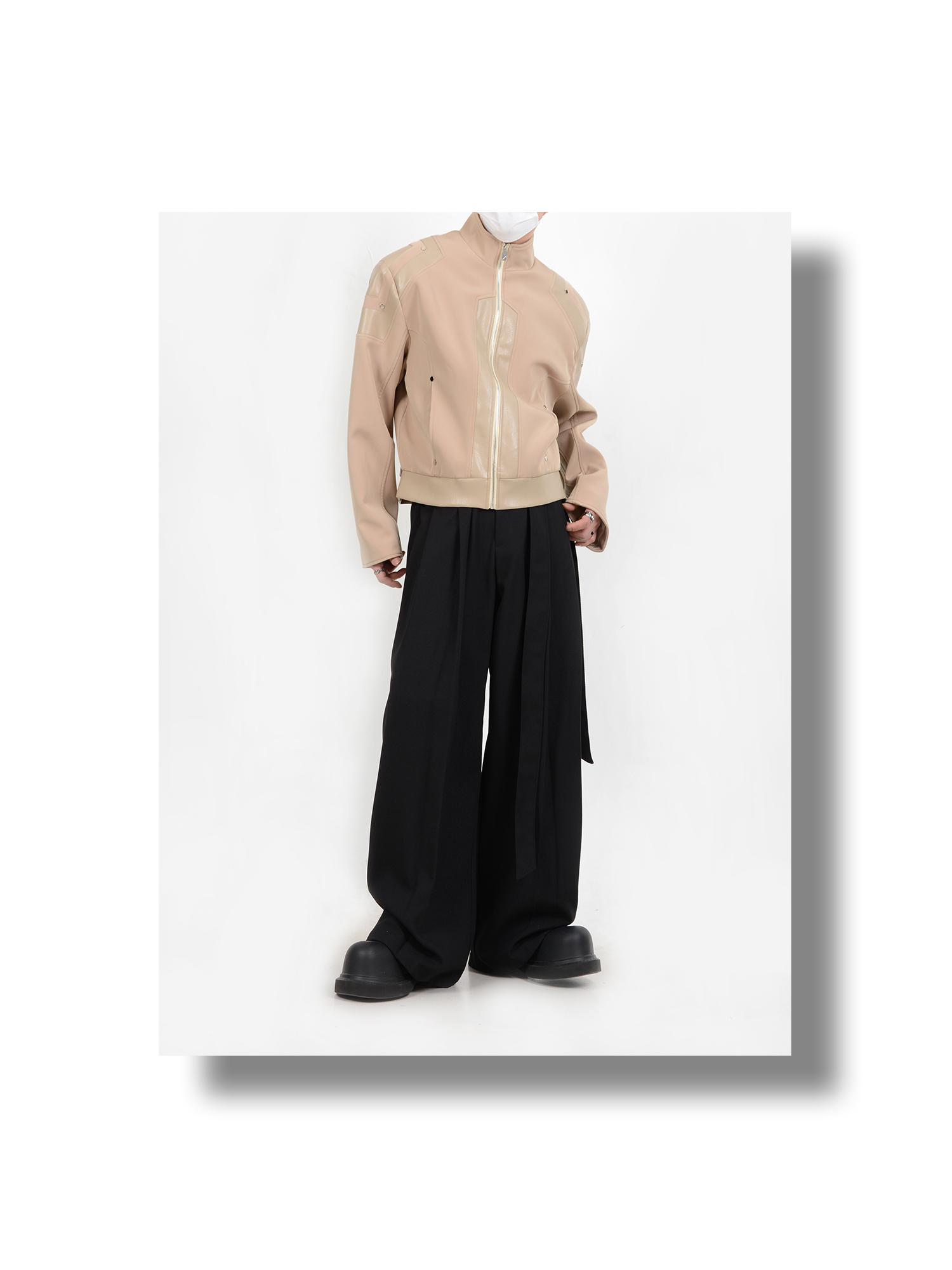 Stand Neck PU Leather Mix Short Jacket WN5116