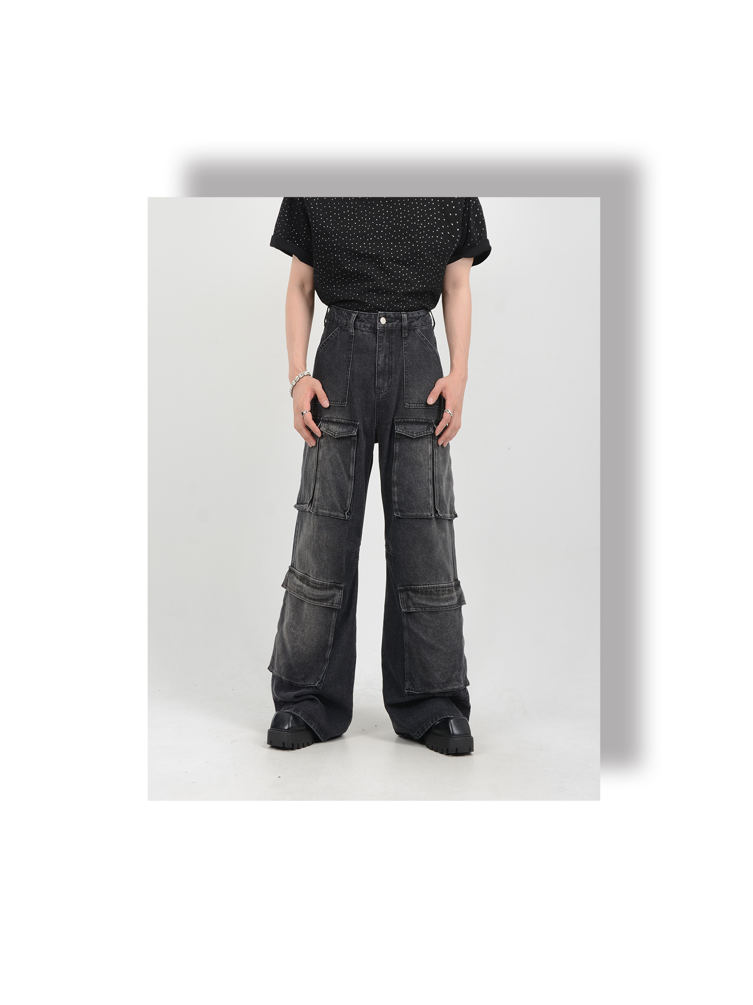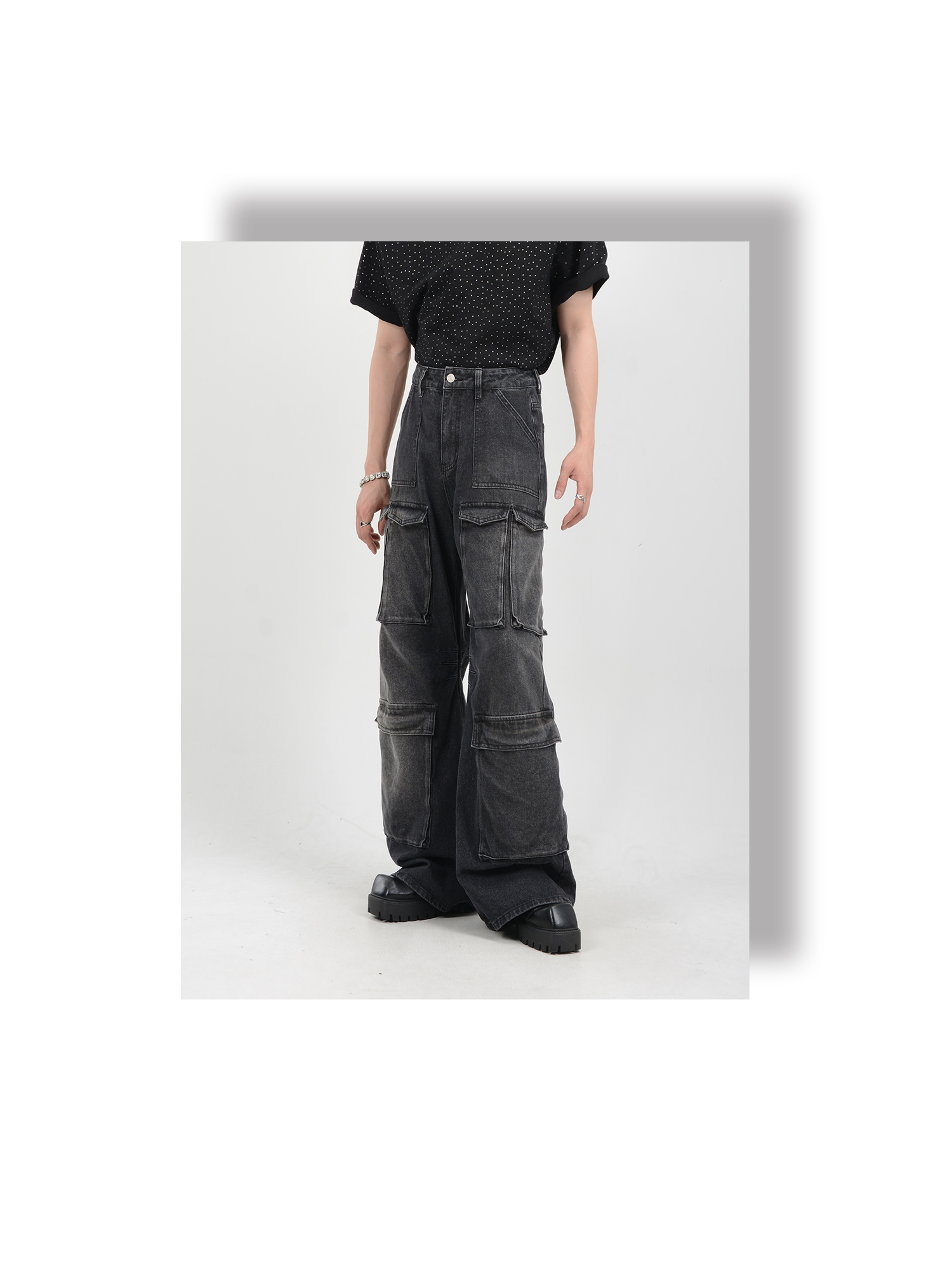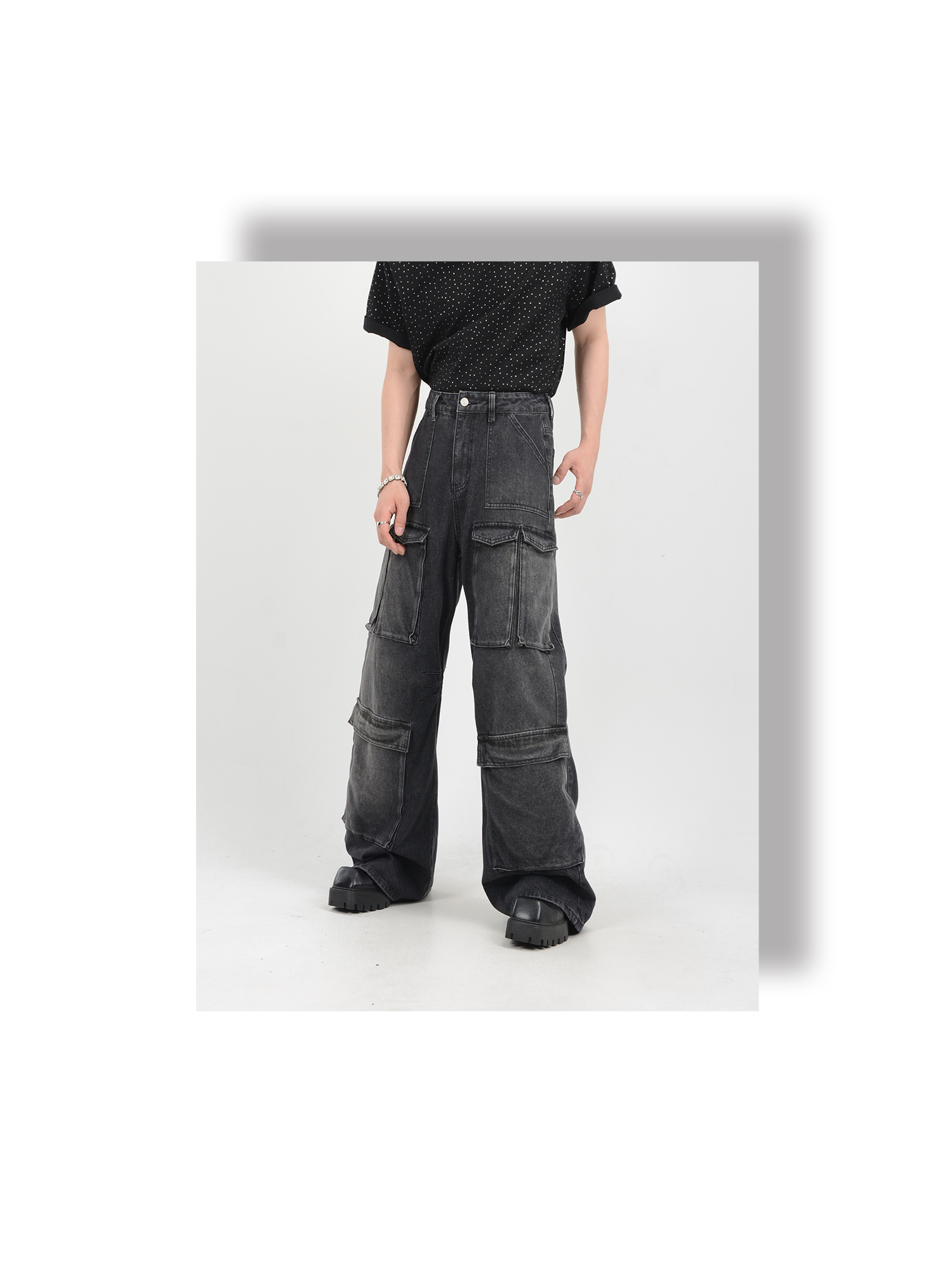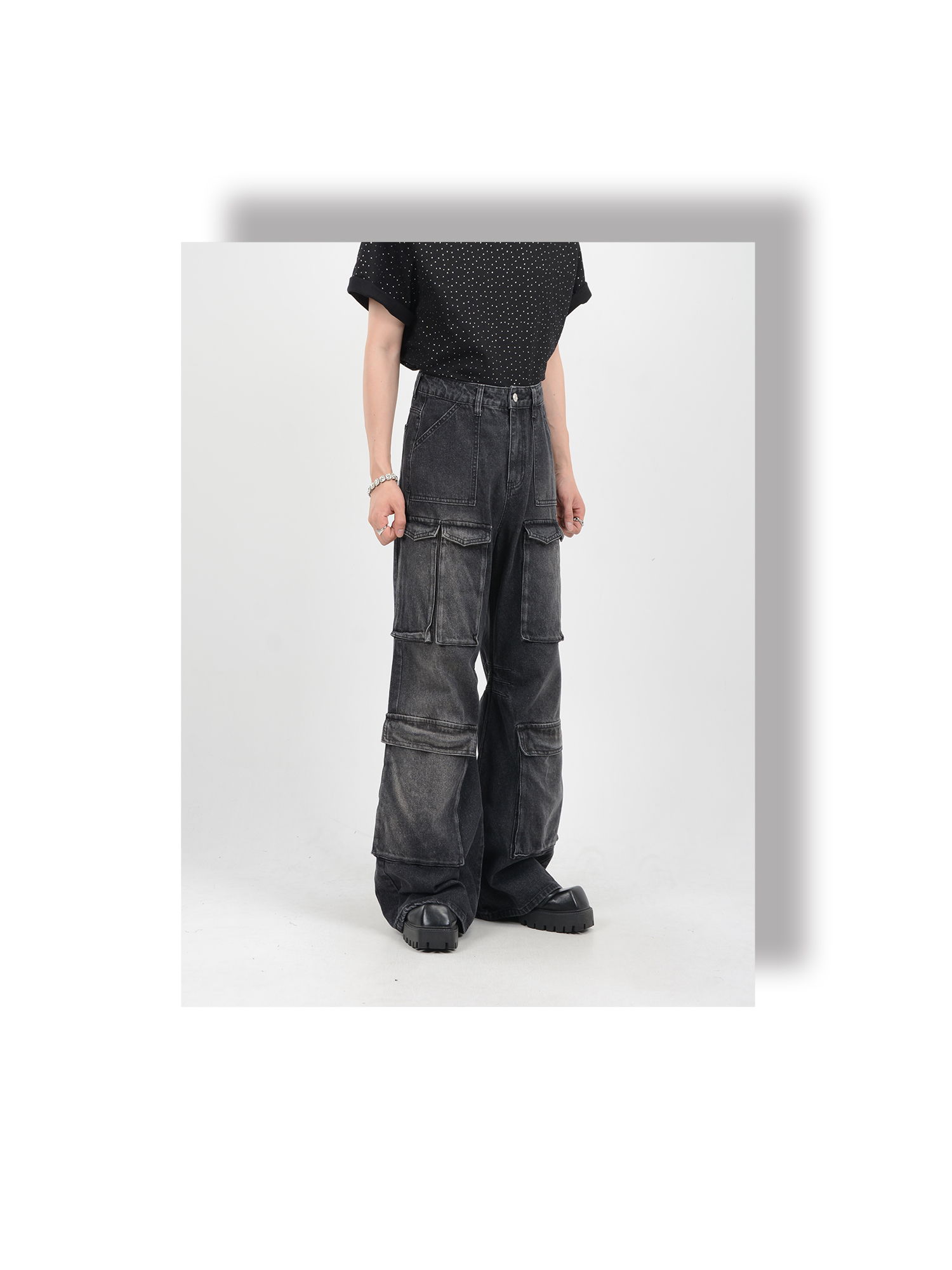 Wide-Leg Straight Cargo Denim Jeans WN7143