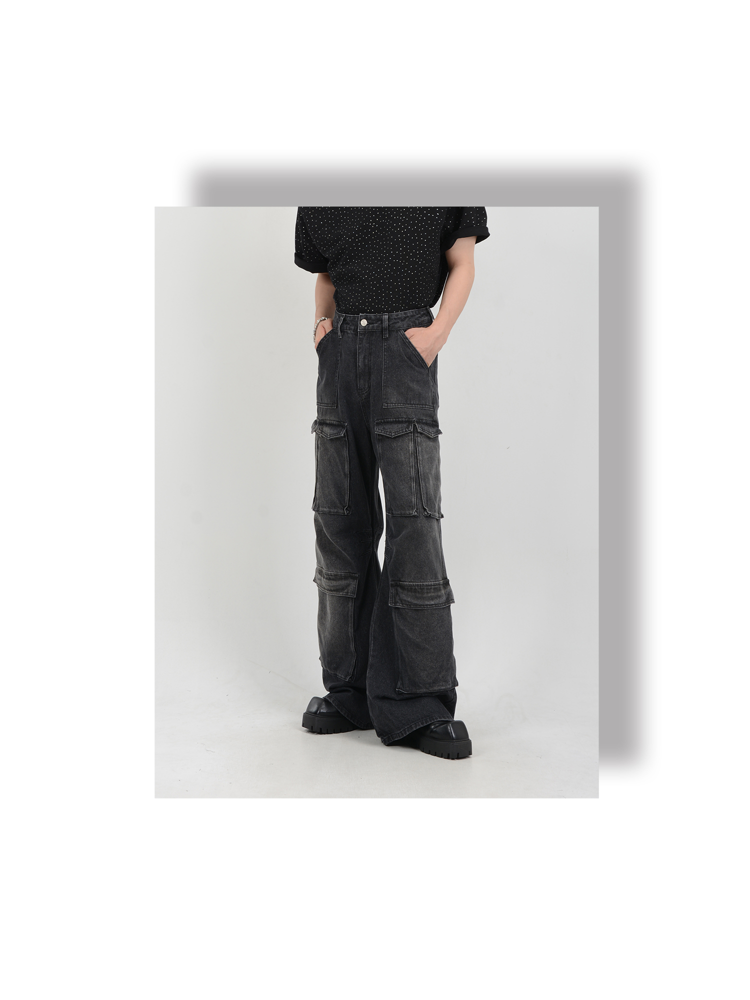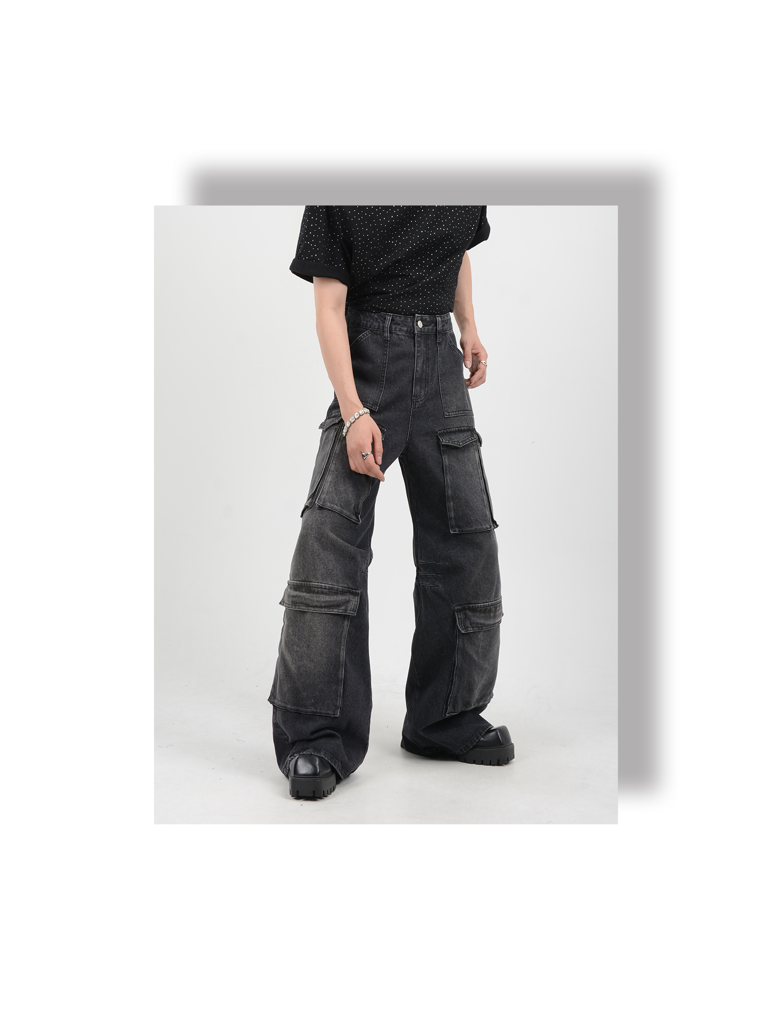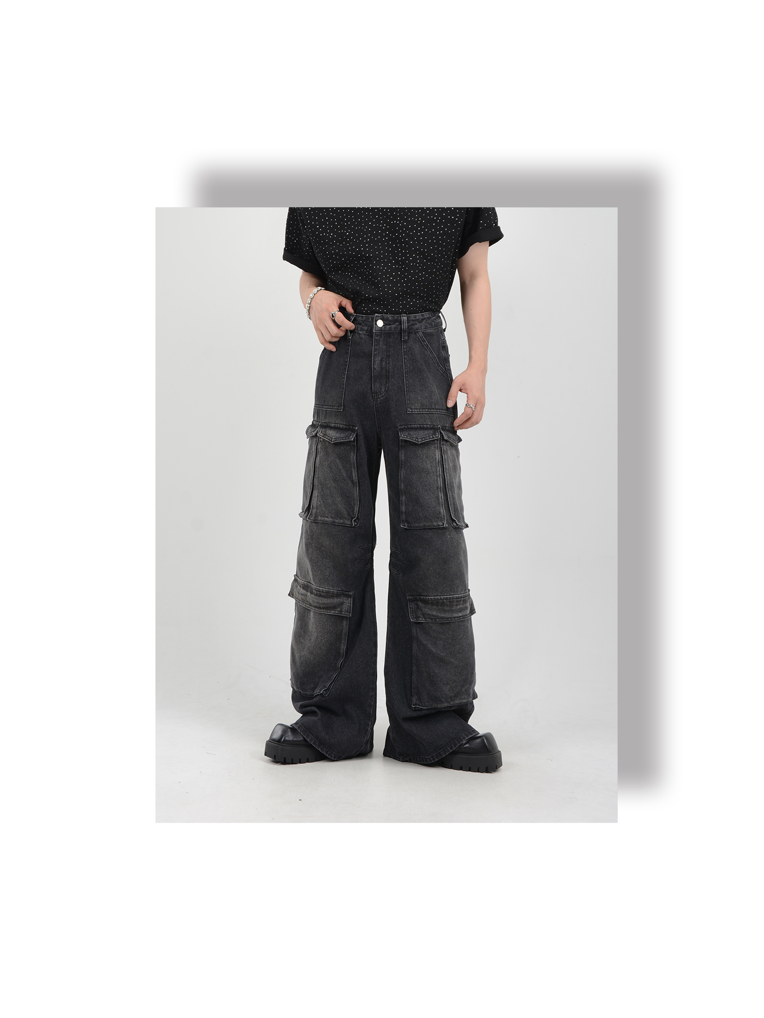 Wide-Leg Straight Cargo Denim Jeans WN7143
