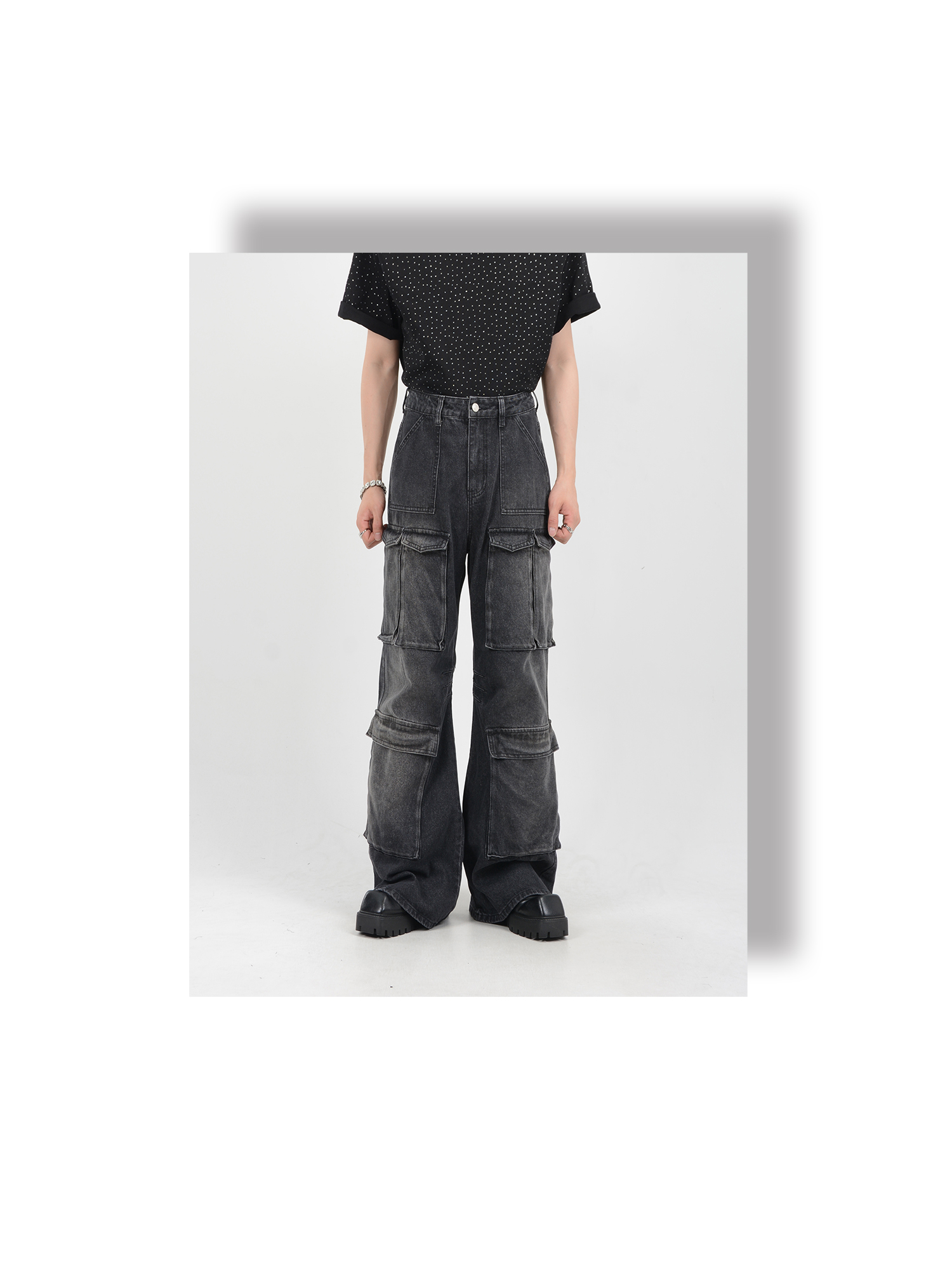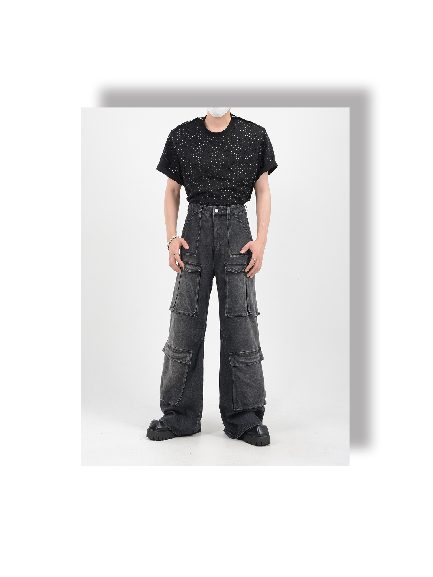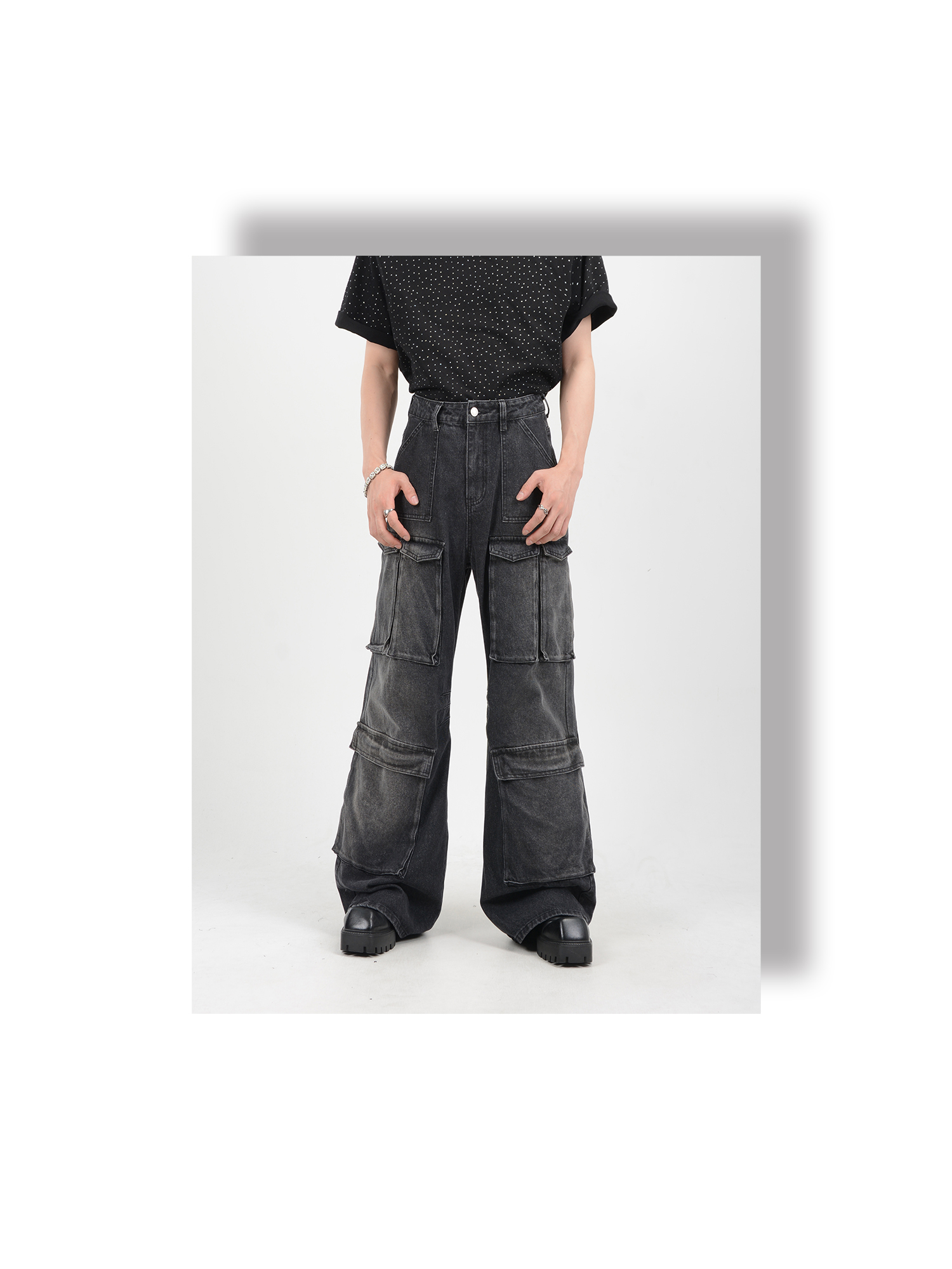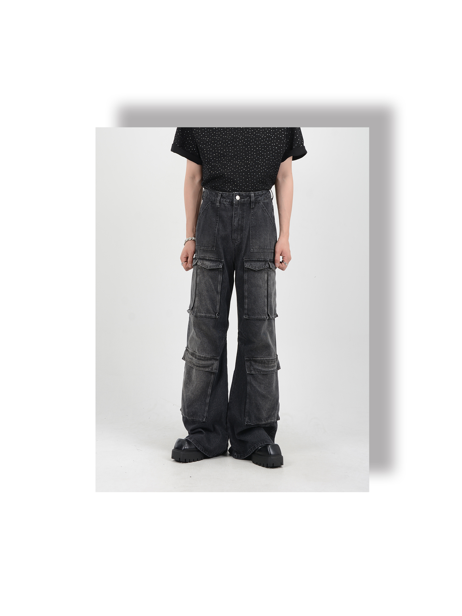 Wide-Leg Straight Cargo Denim Jeans WN7143