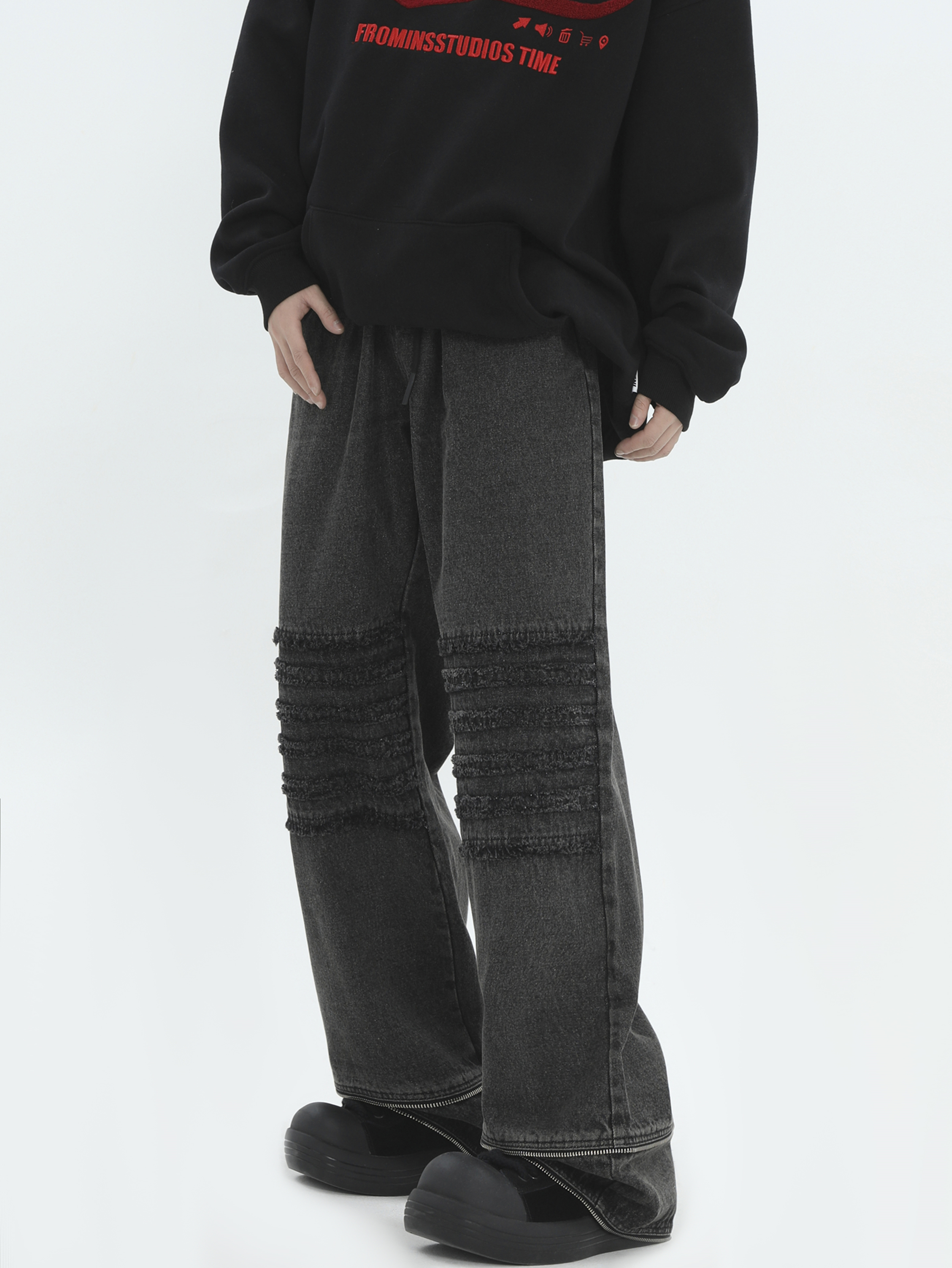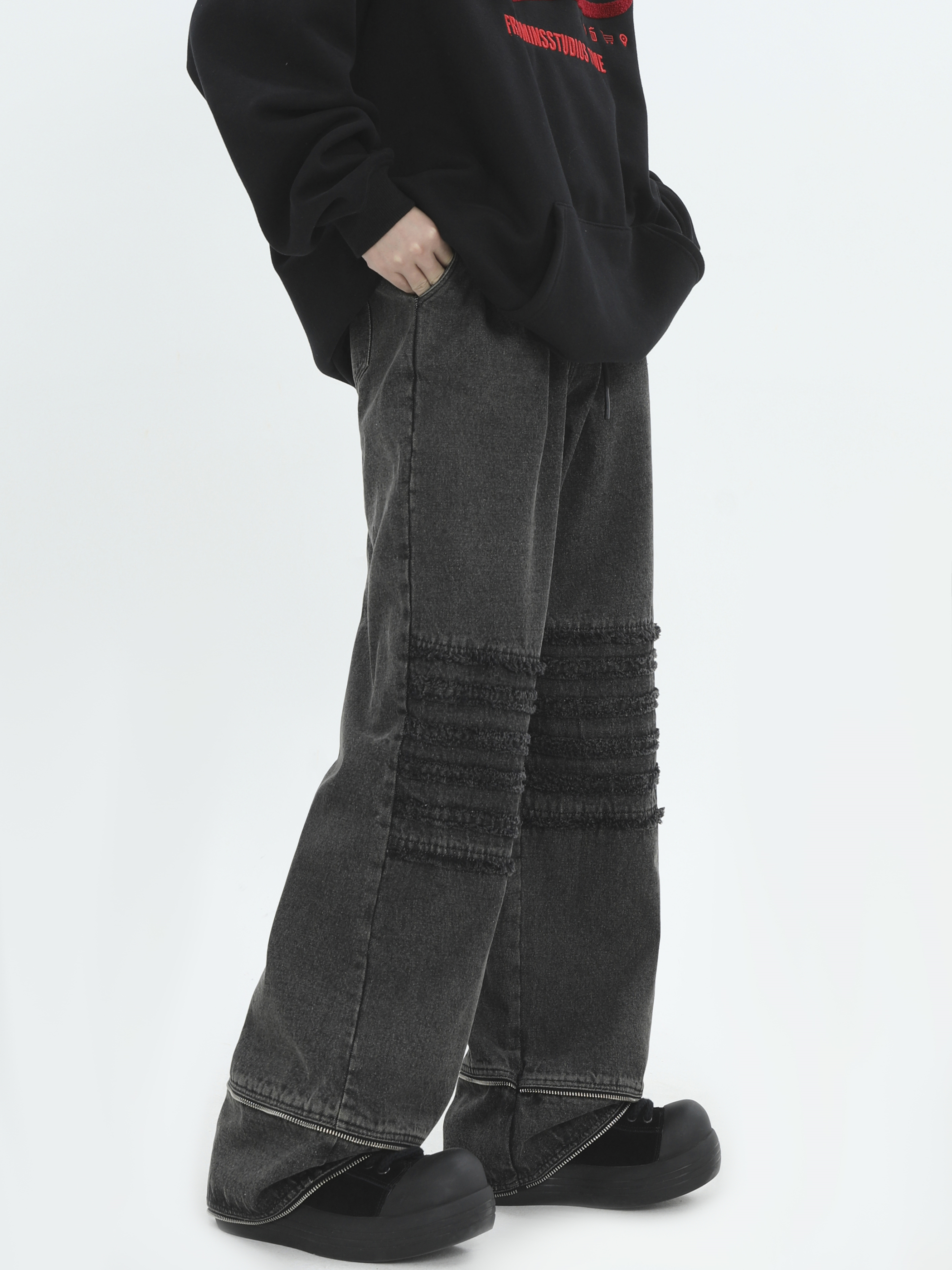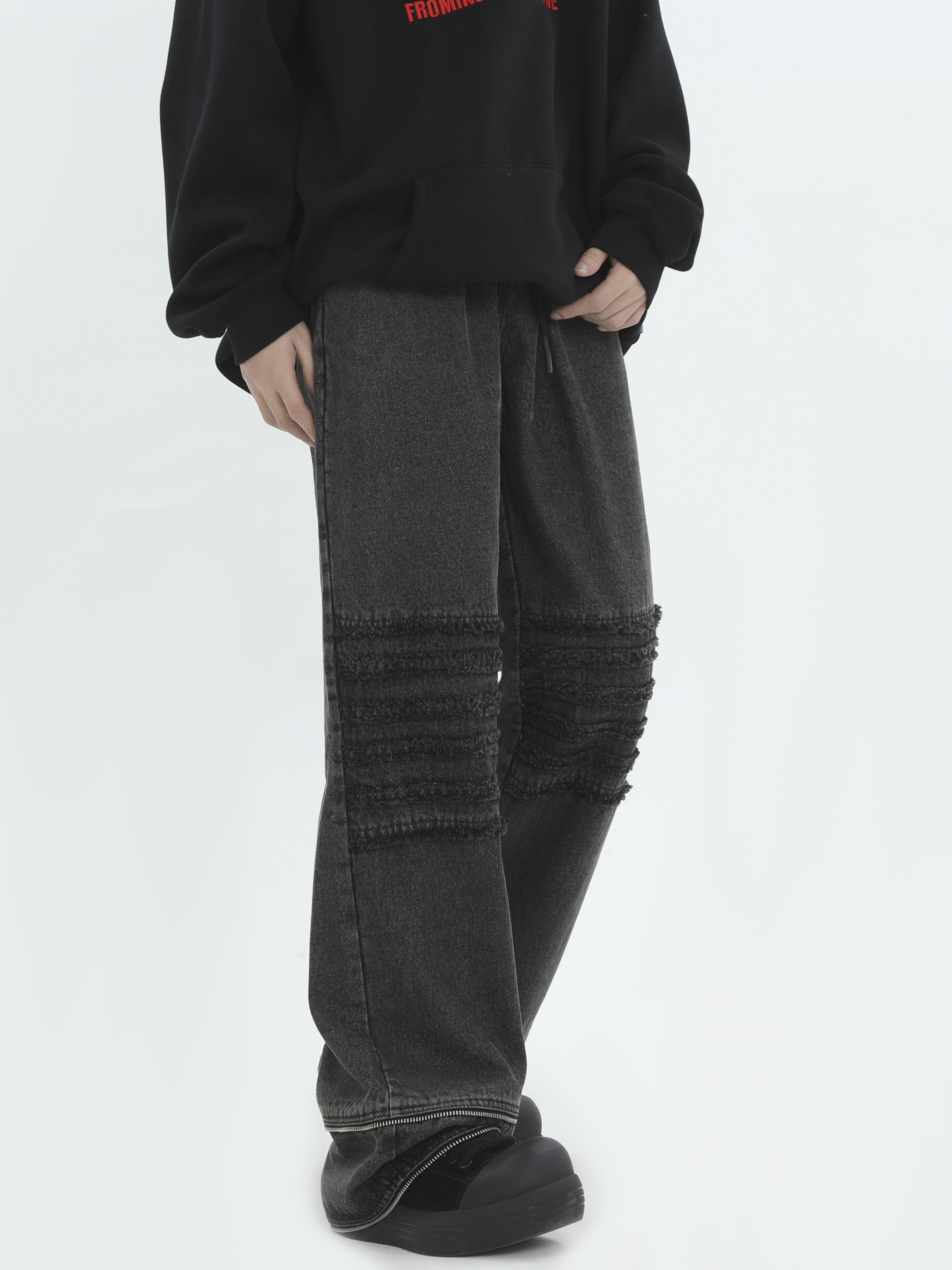 Raw Edge Washed Wide-Leg Straight Denim Jeans WN7172