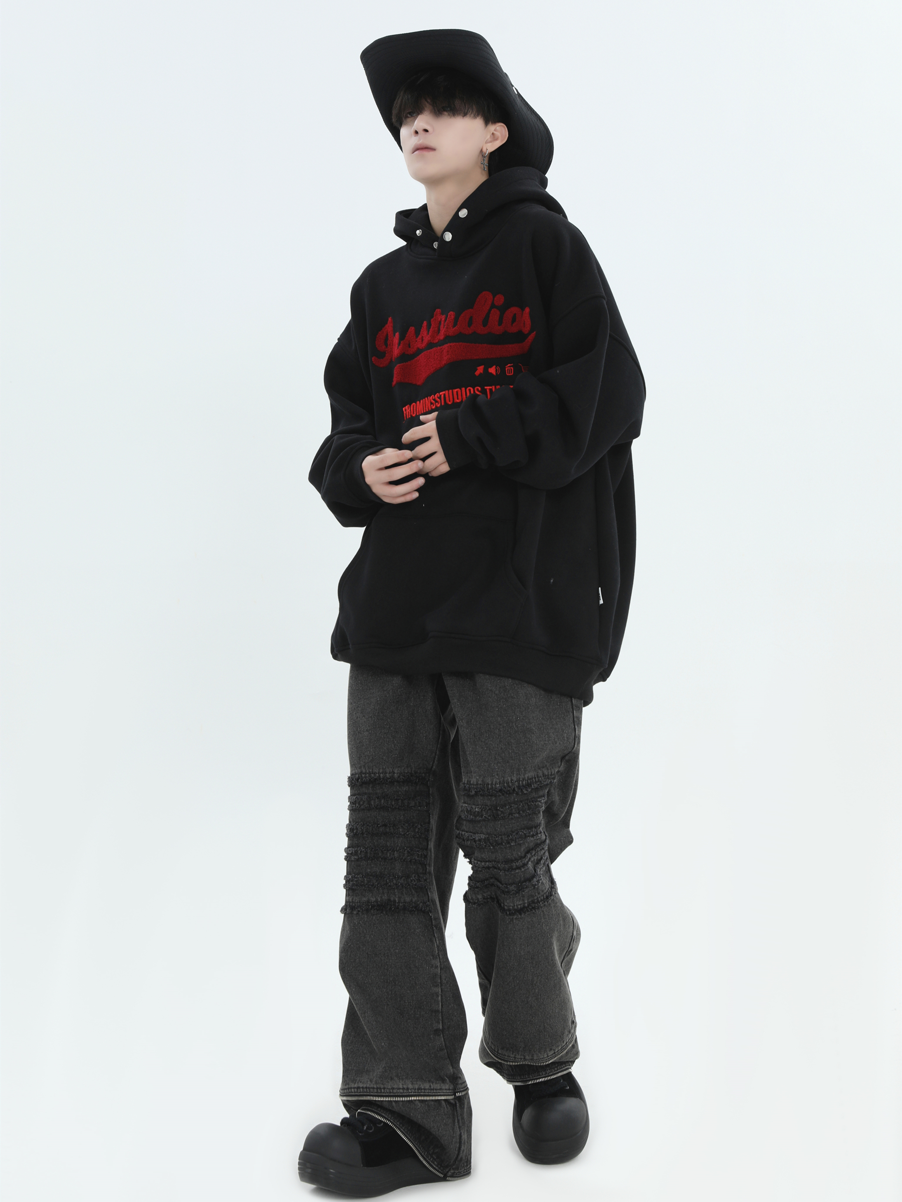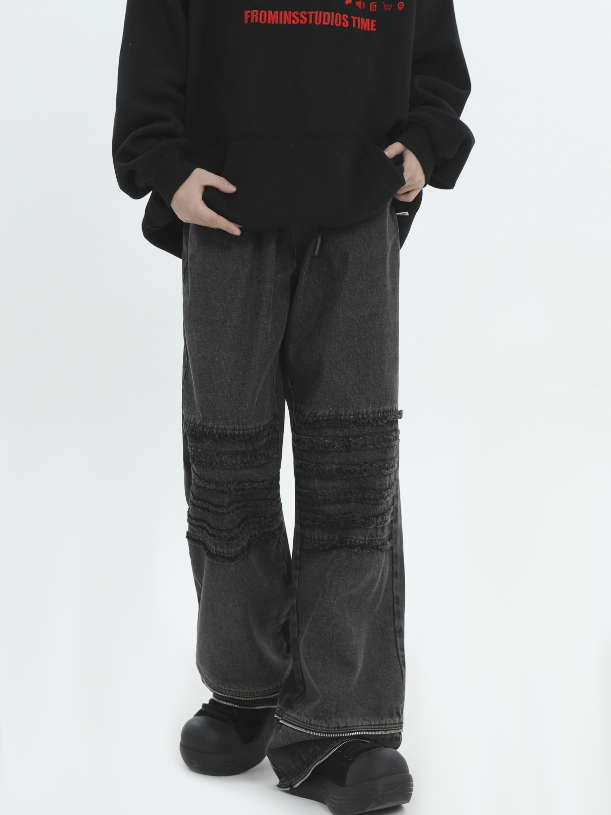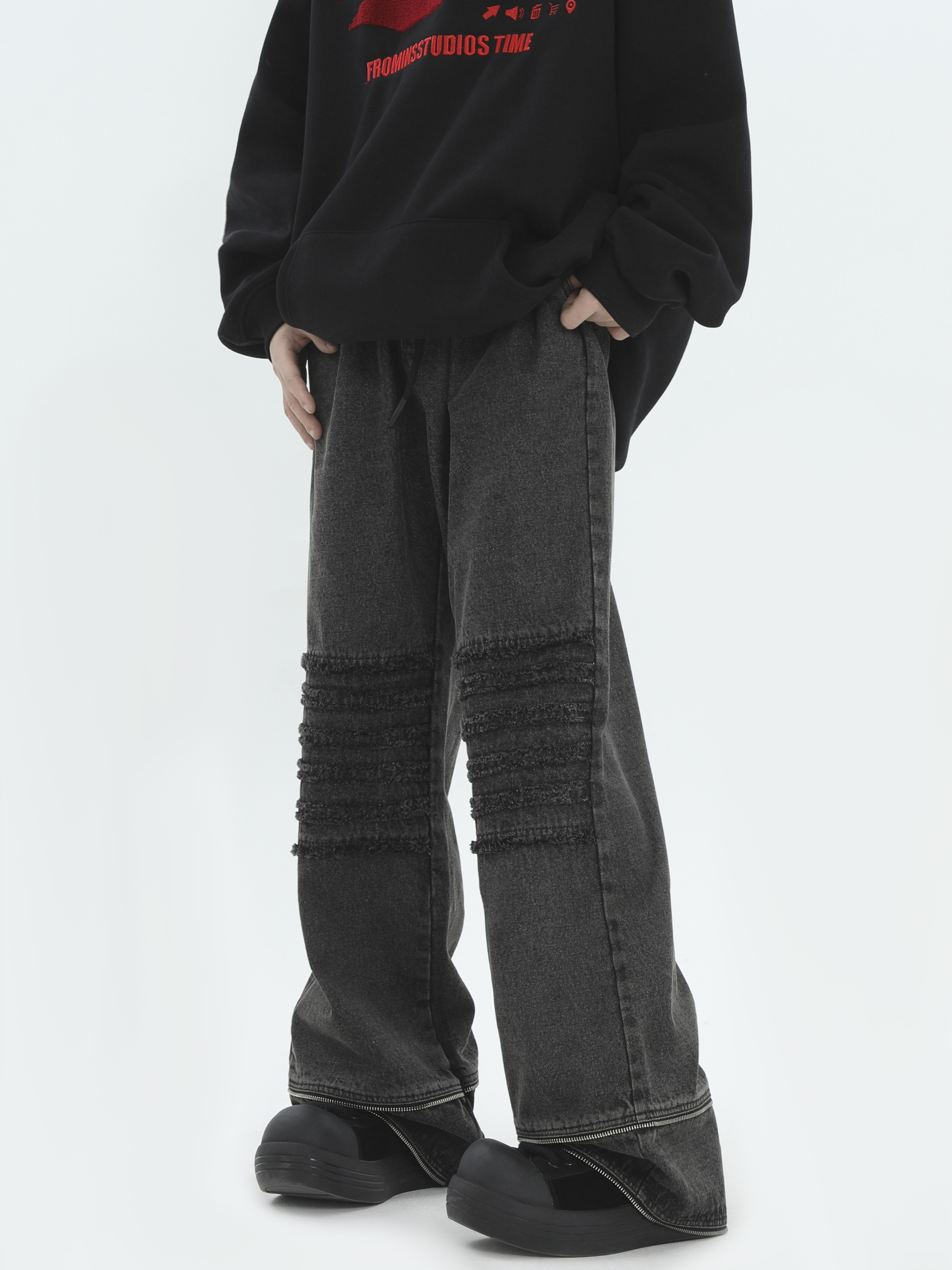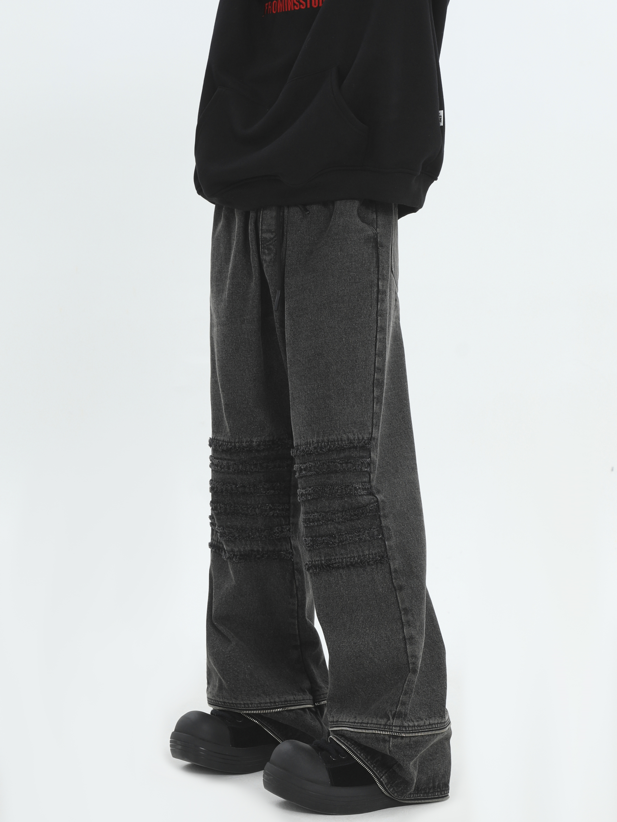 Raw Edge Washed Wide-Leg Straight Denim Jeans WN7172