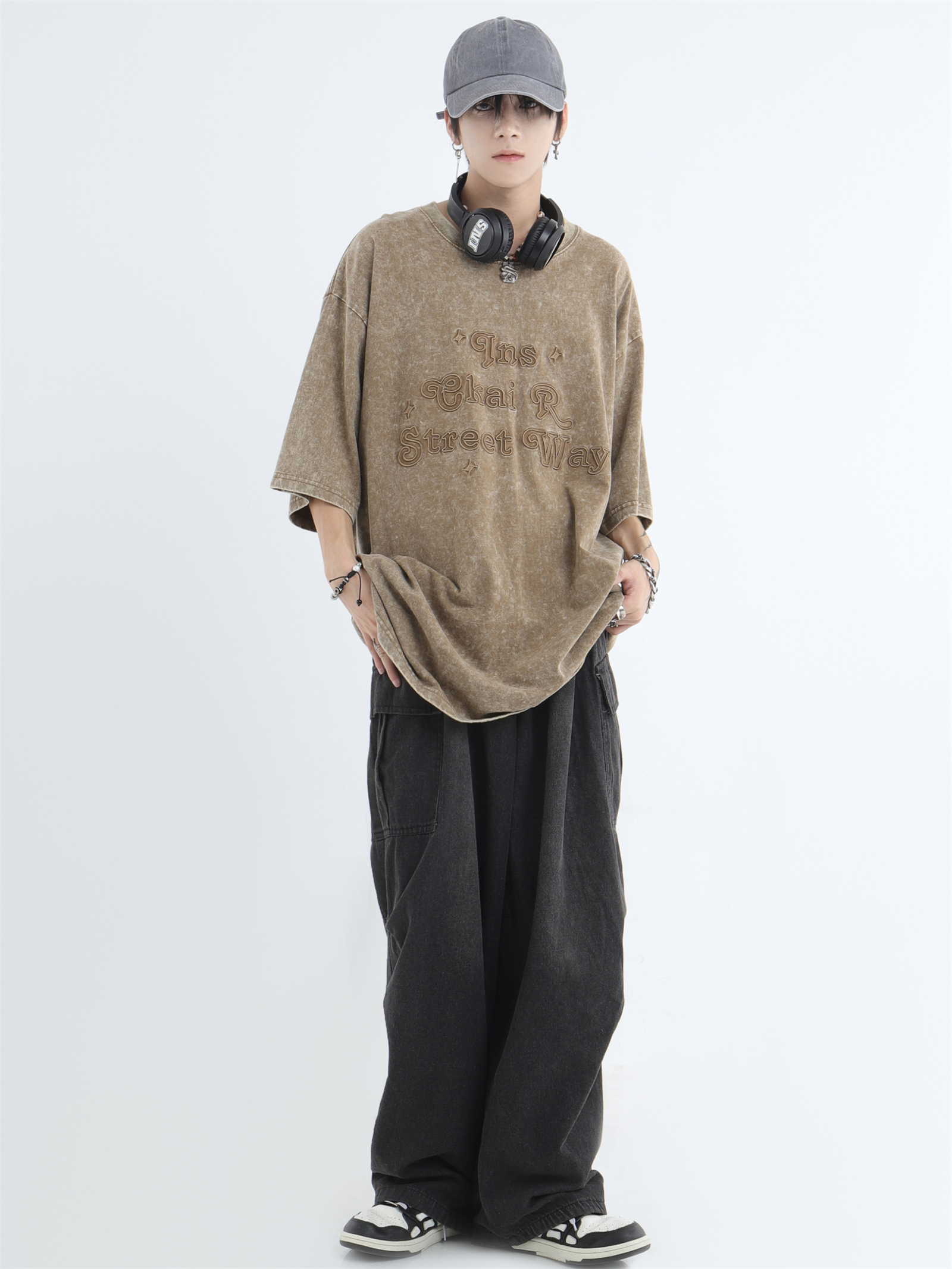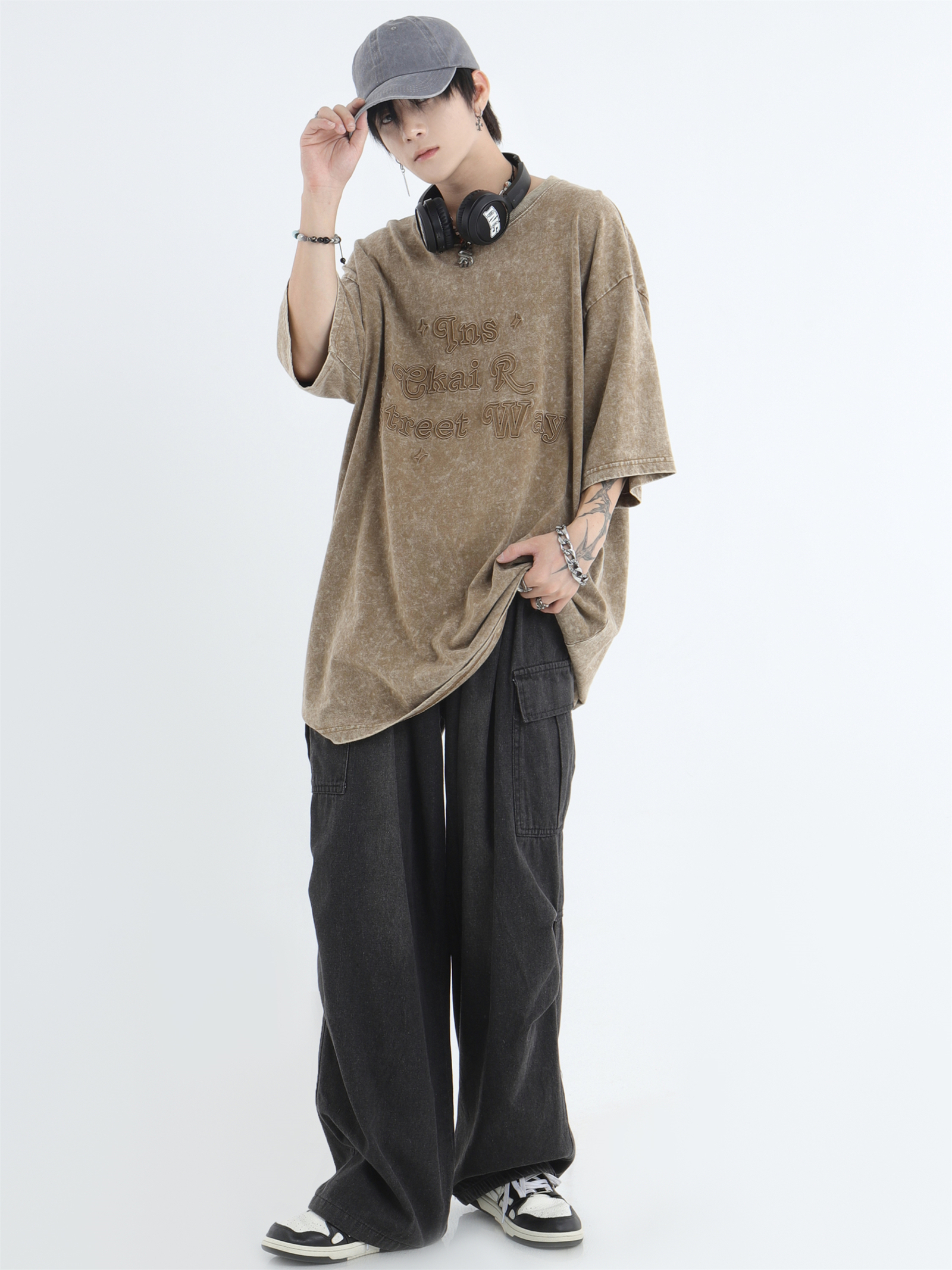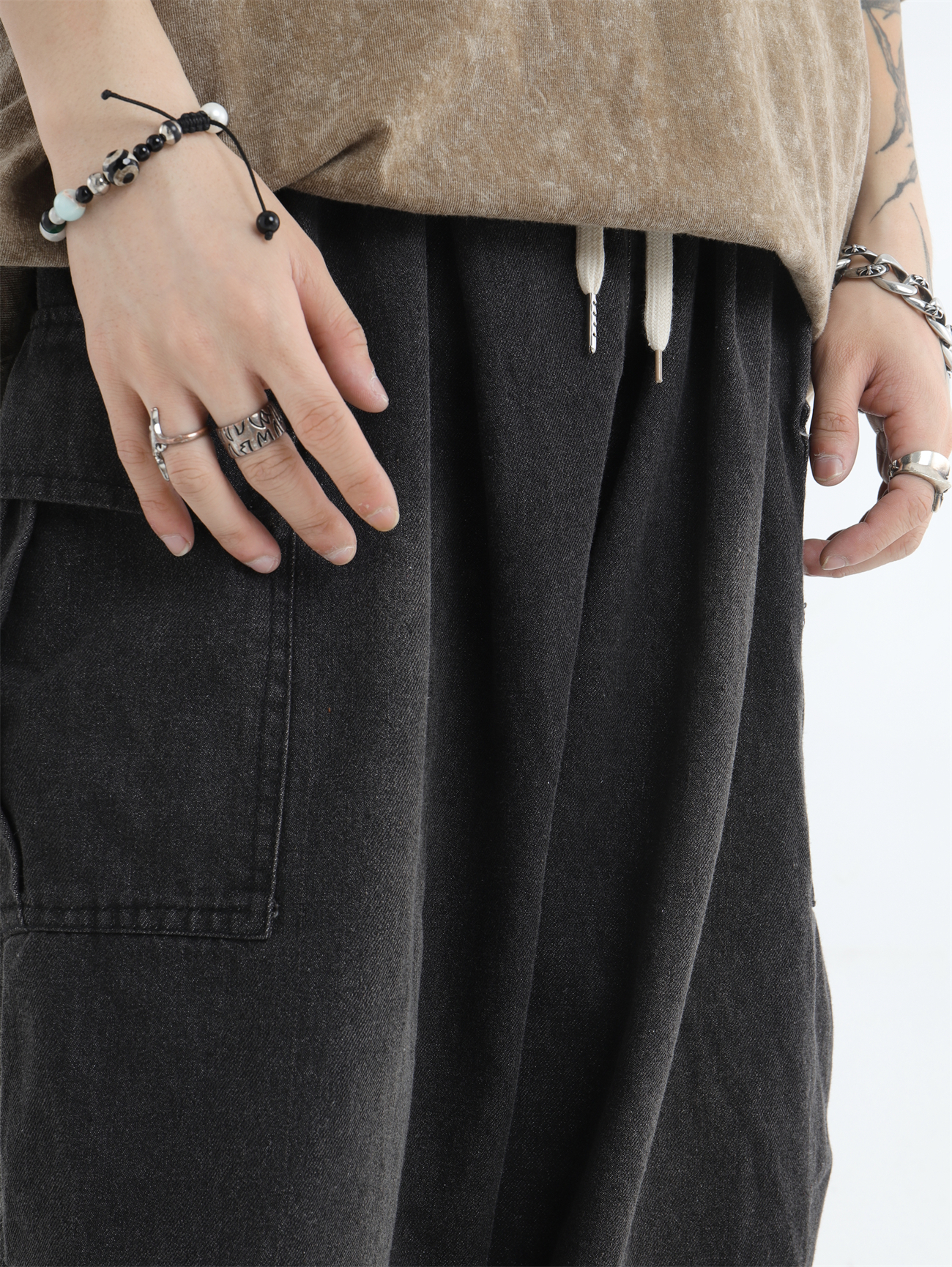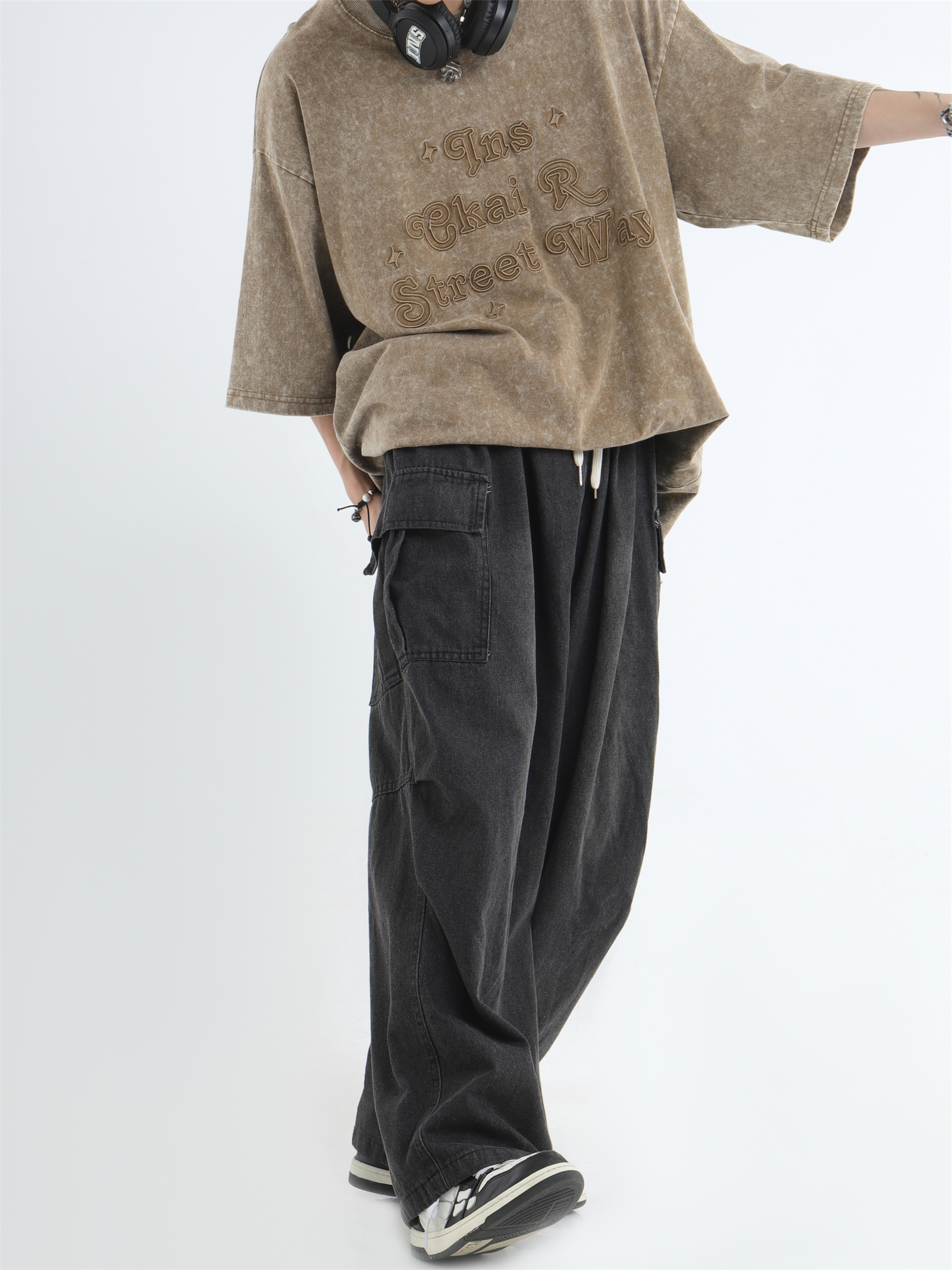 Draw Cord Wide-Leg Straight Cargo Denim Jeans WN7181