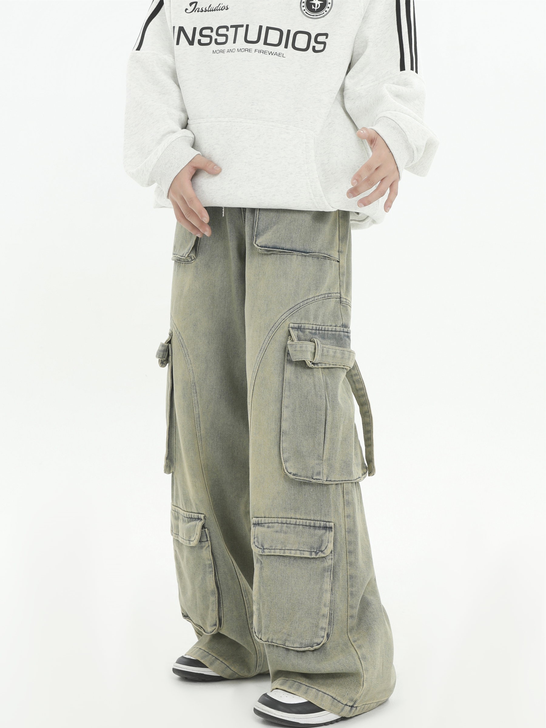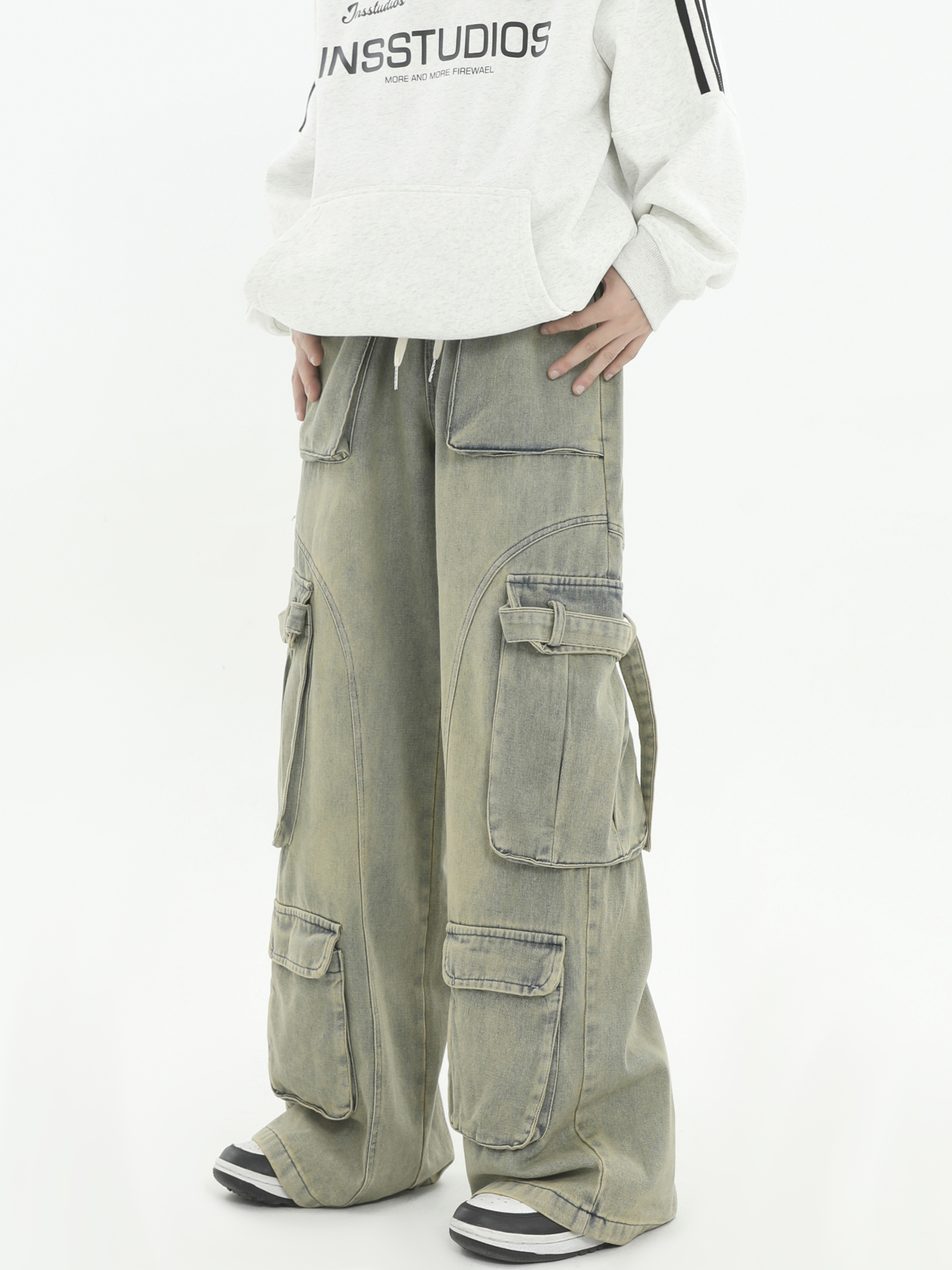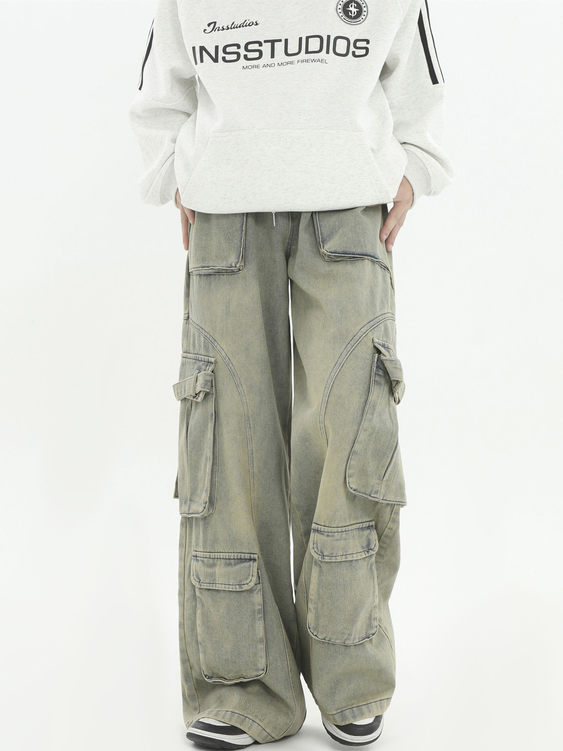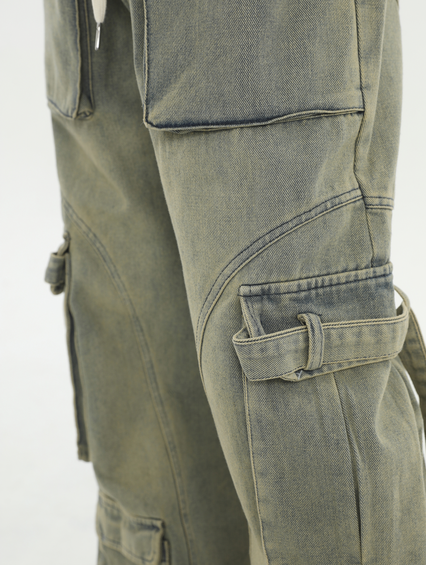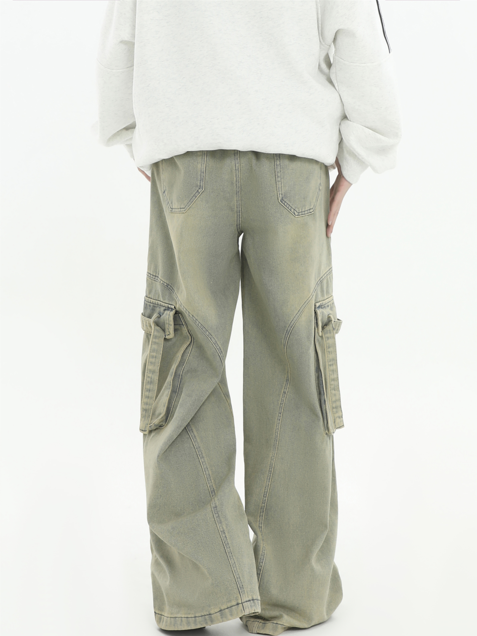 Elastic Waist Wide Leg Cargo Denim Jeans WN7197