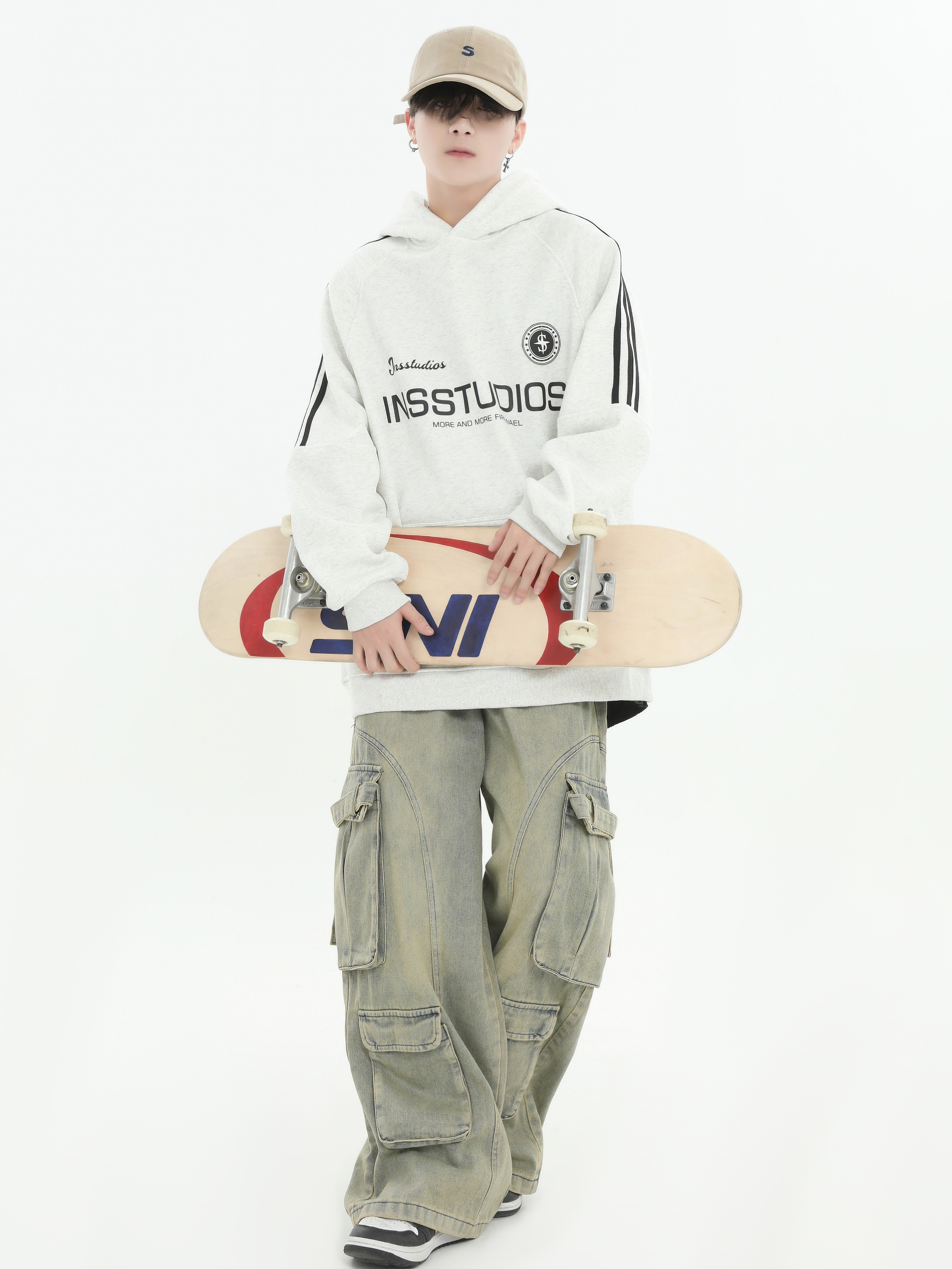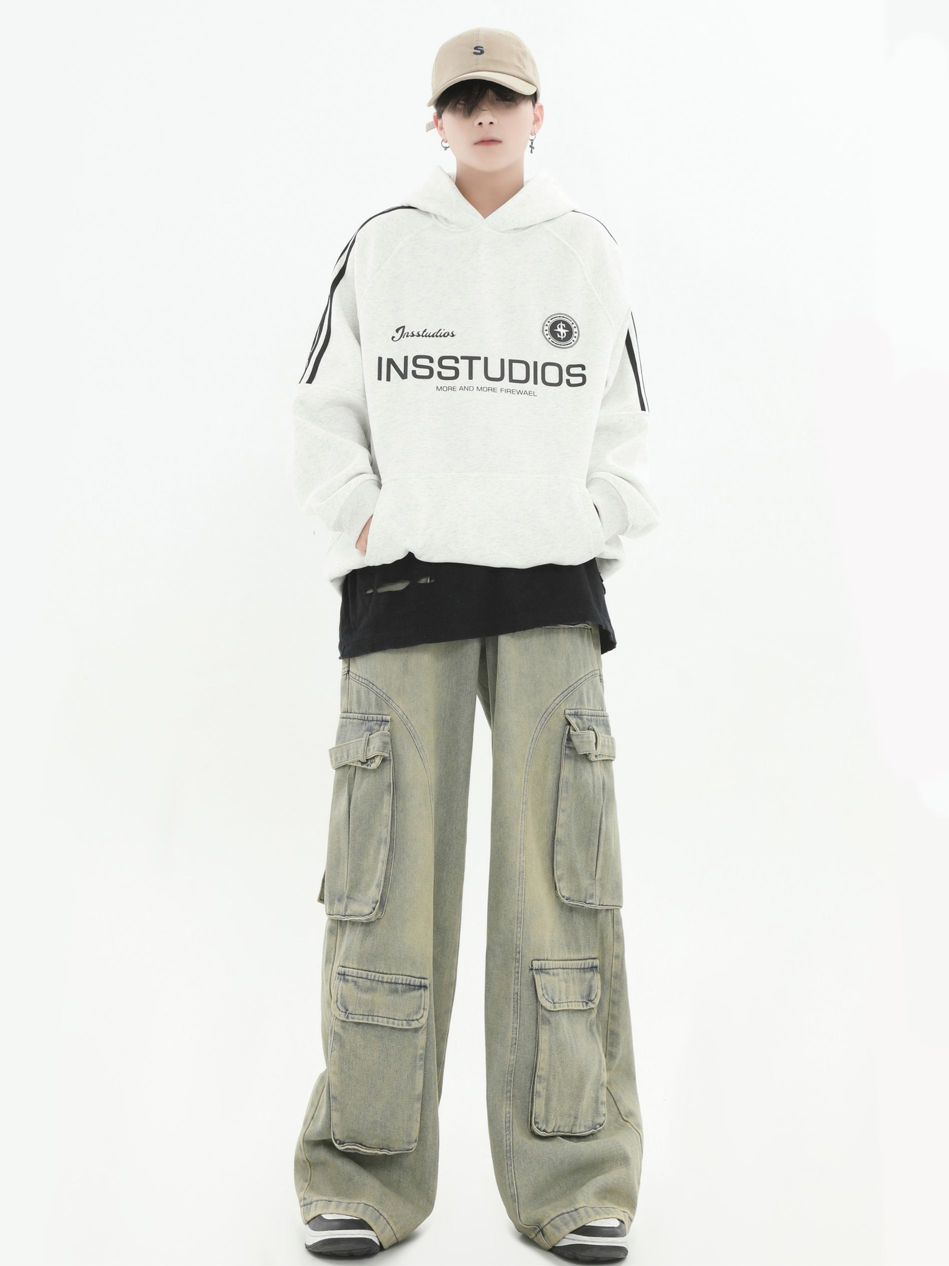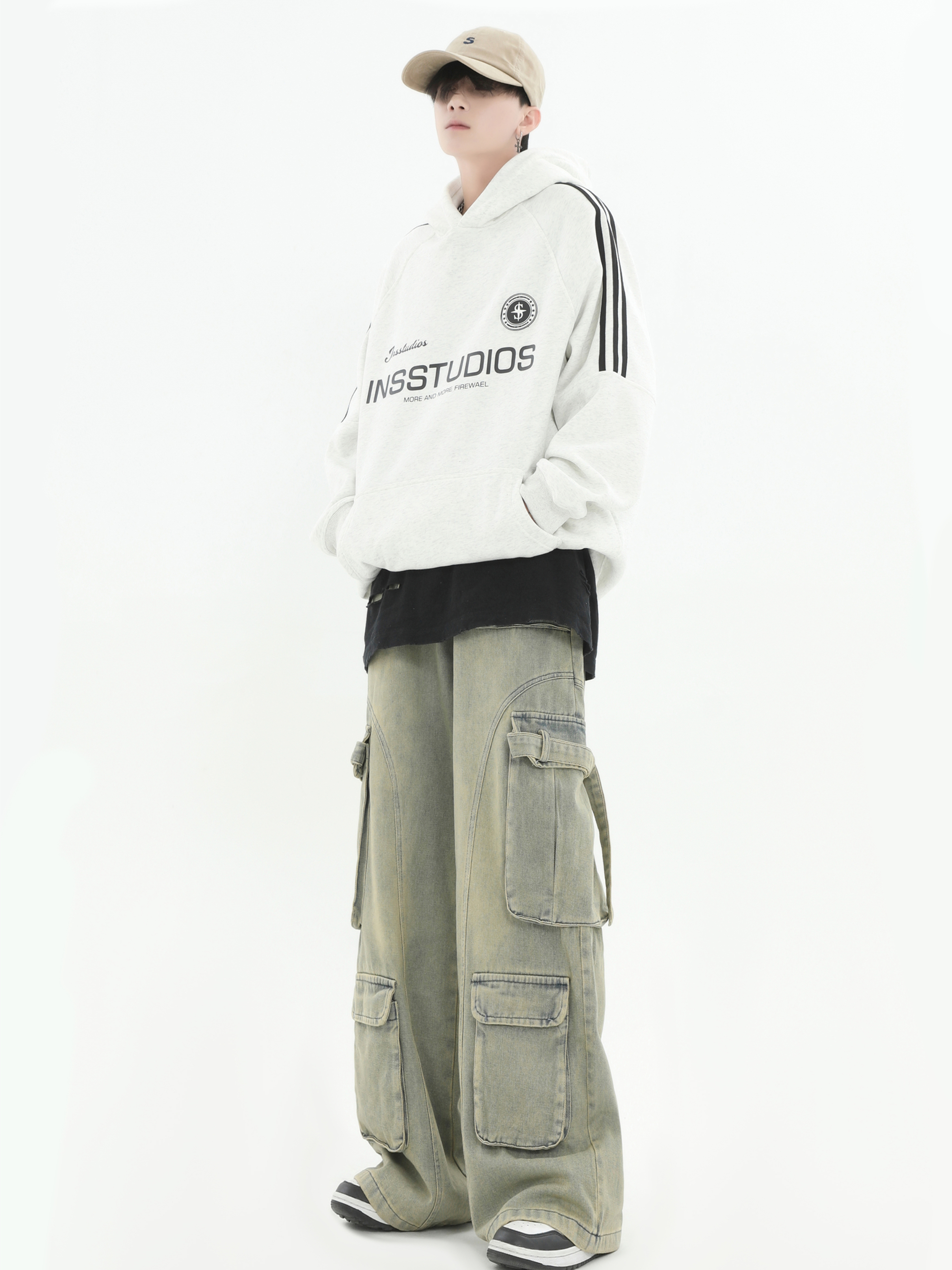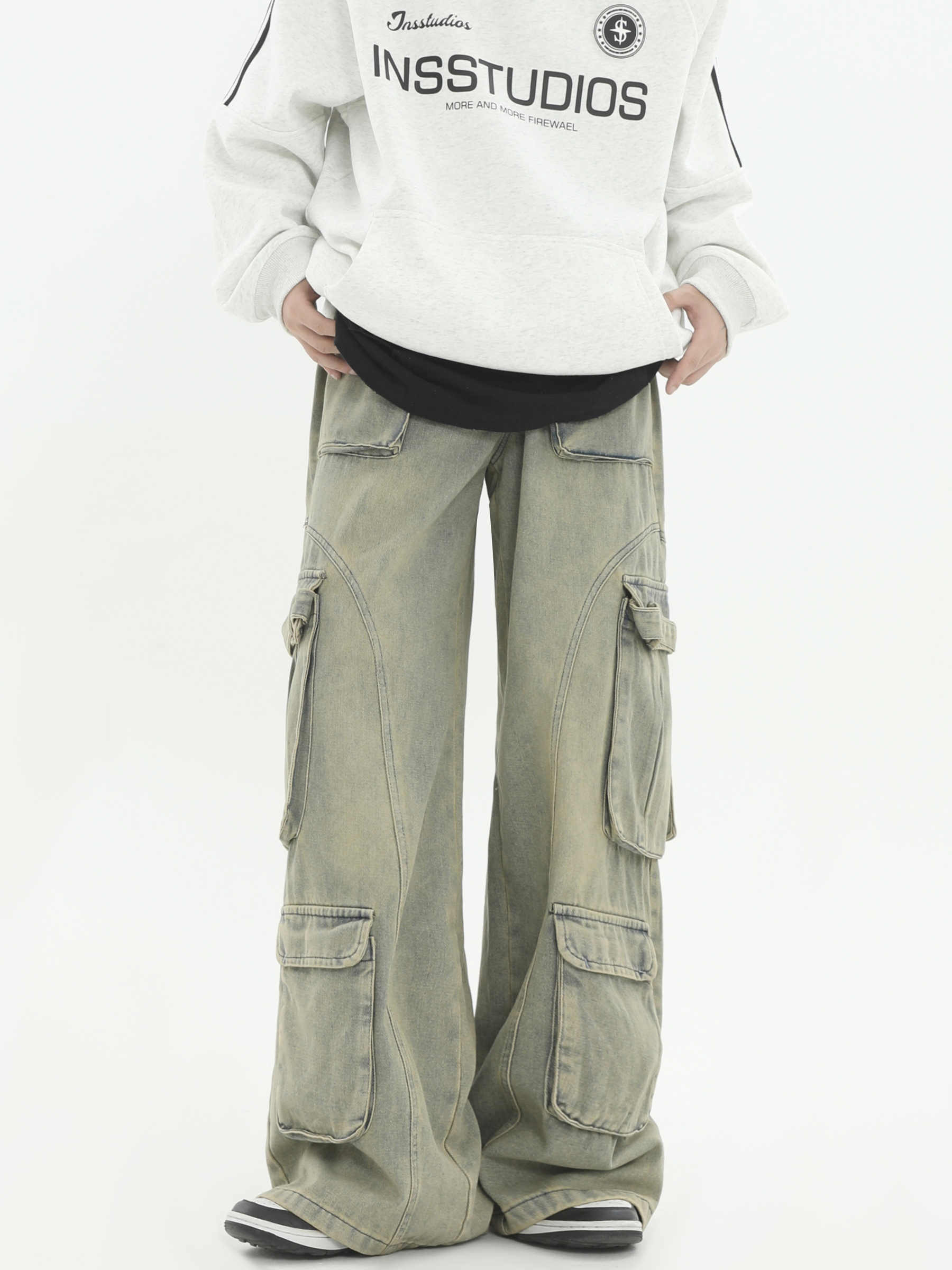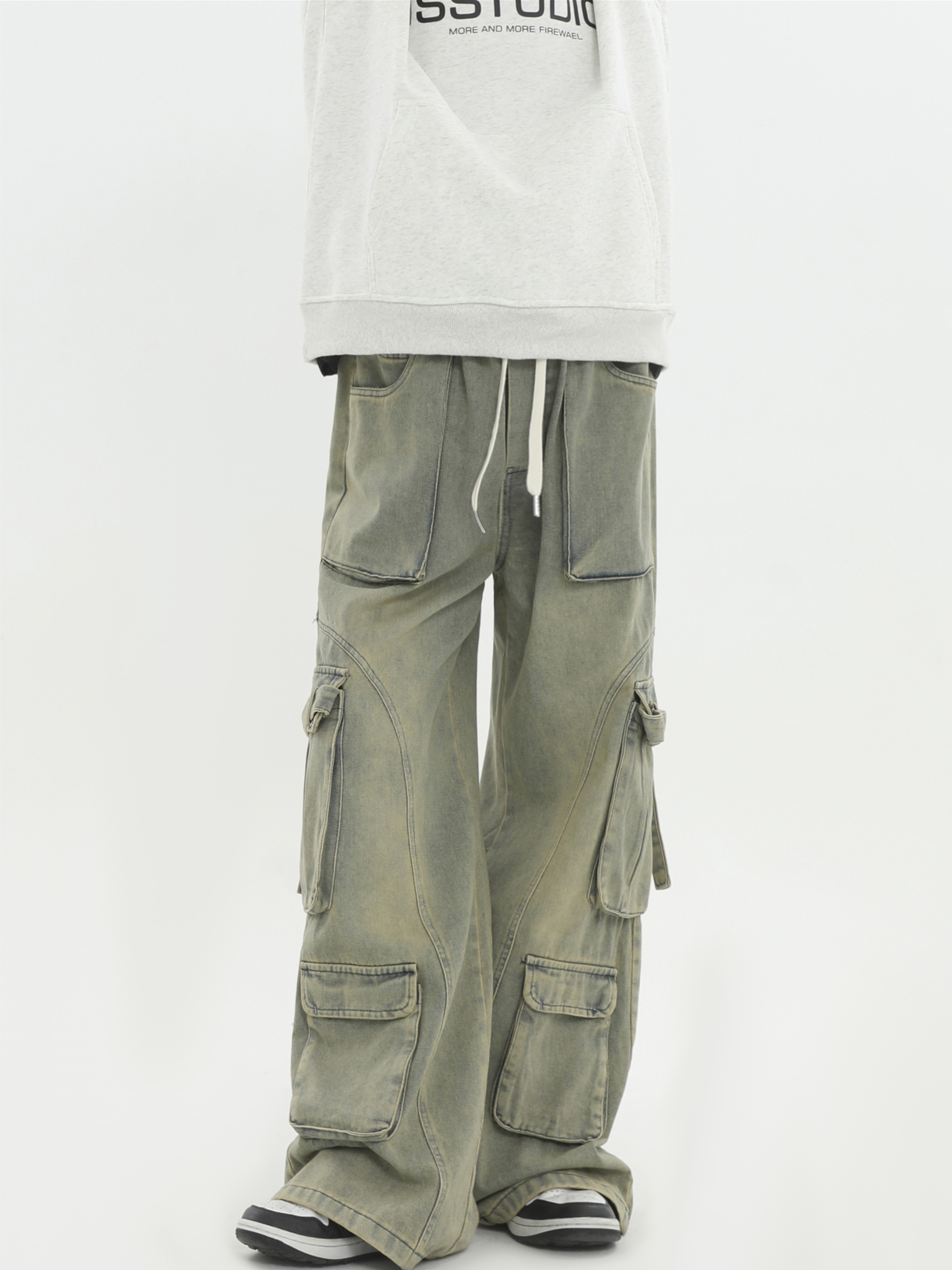 Elastic Waist Wide Leg Cargo Denim Jeans WN7197