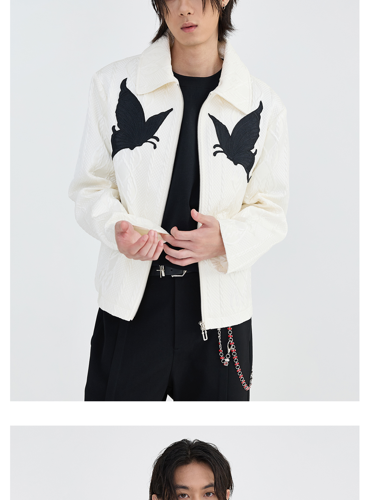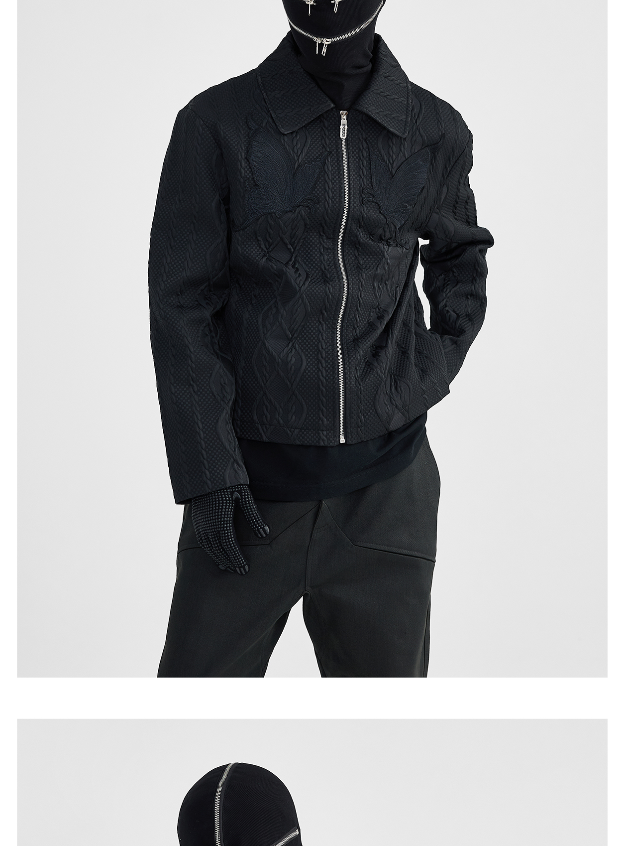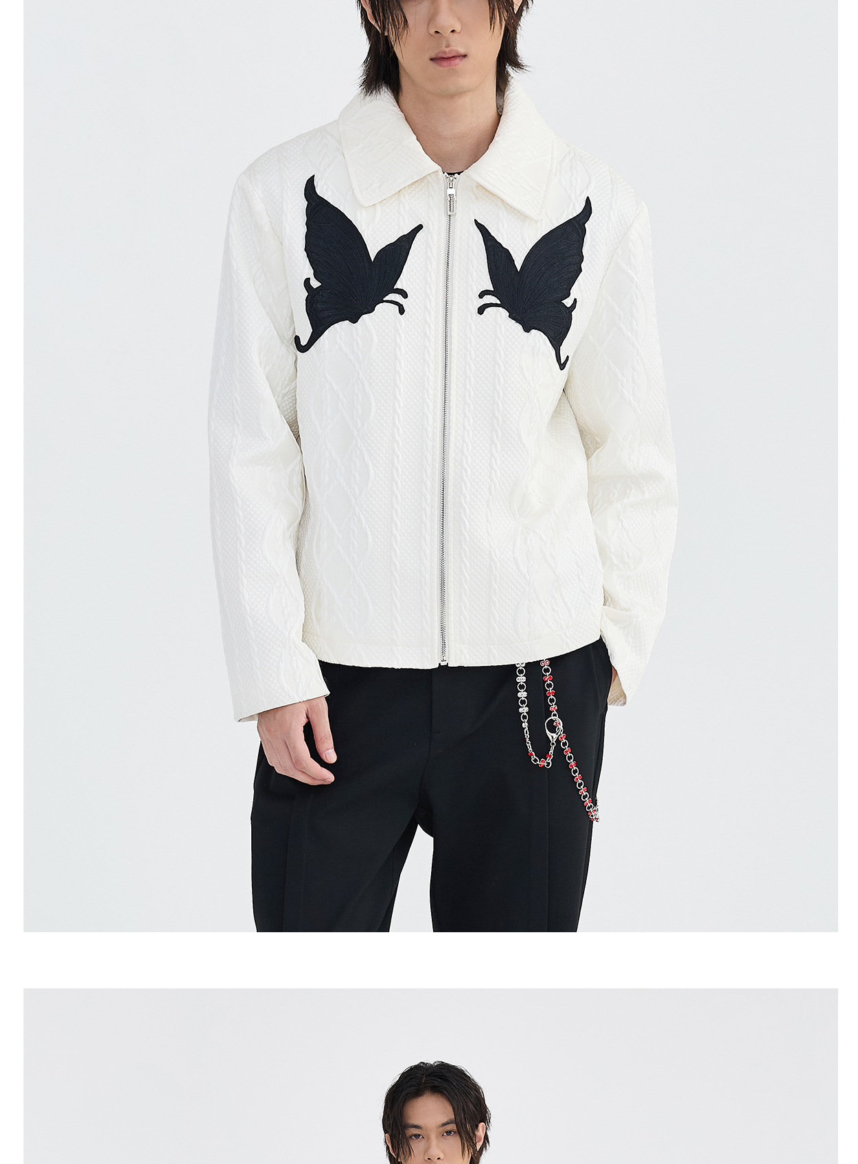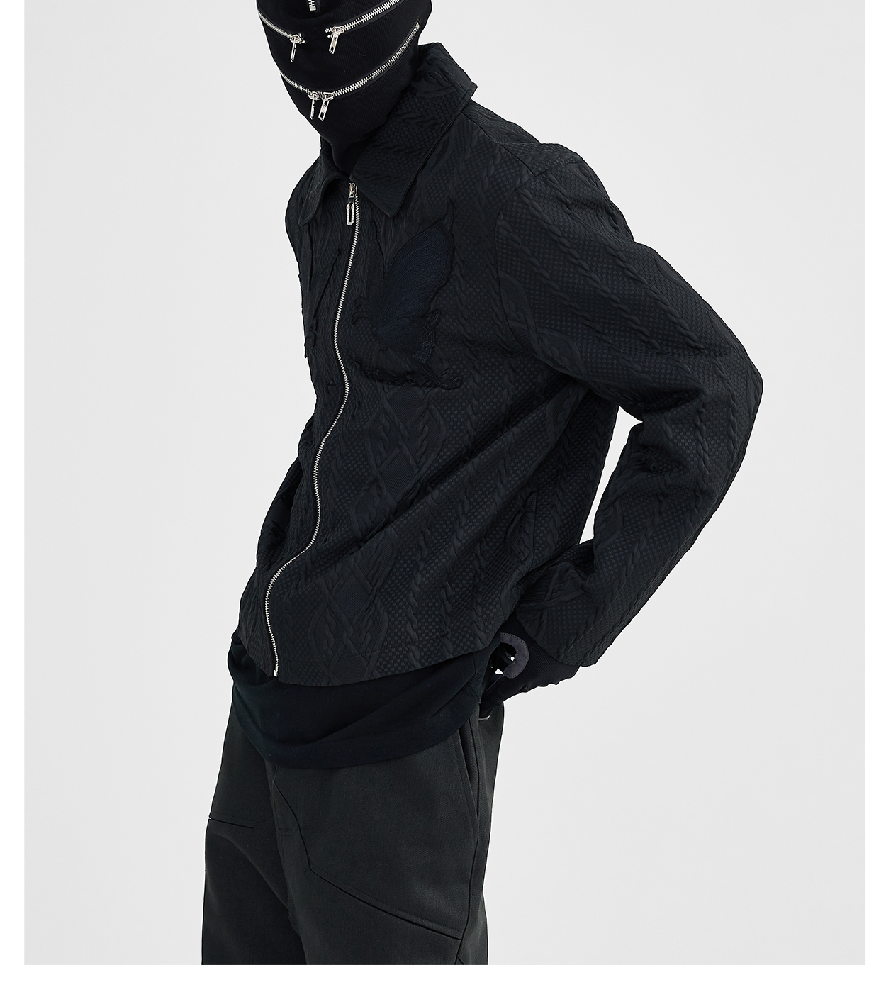 Butterfly Embroidery Jacquard Zipper Jacket WN8631