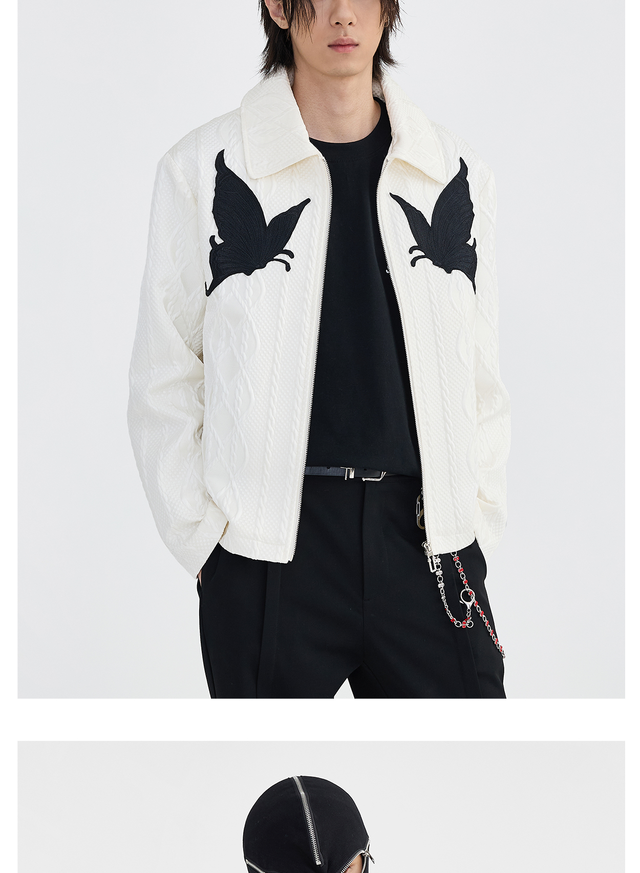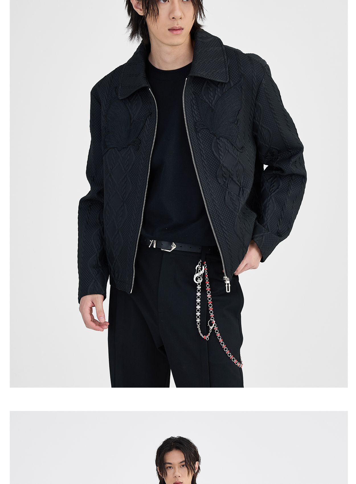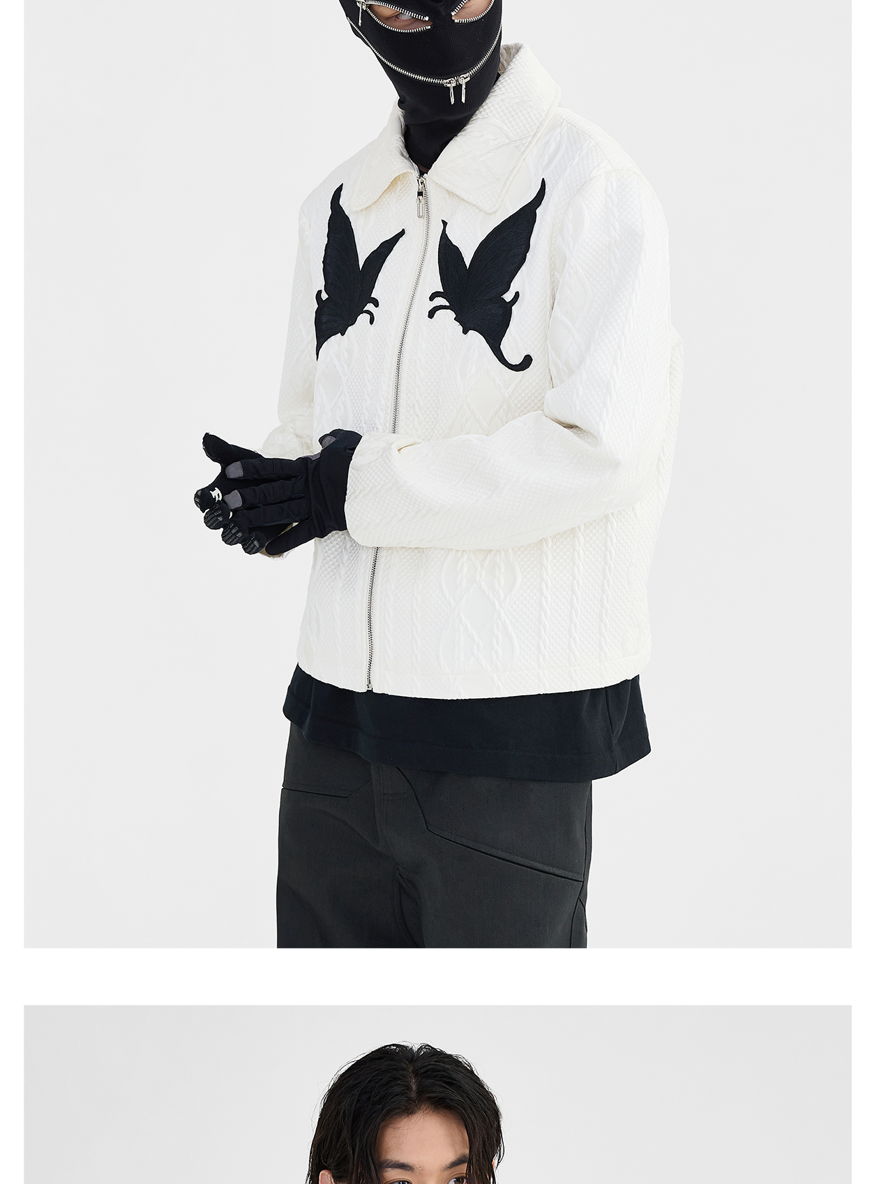 Butterfly Embroidery Jacquard Zipper Jacket WN8631