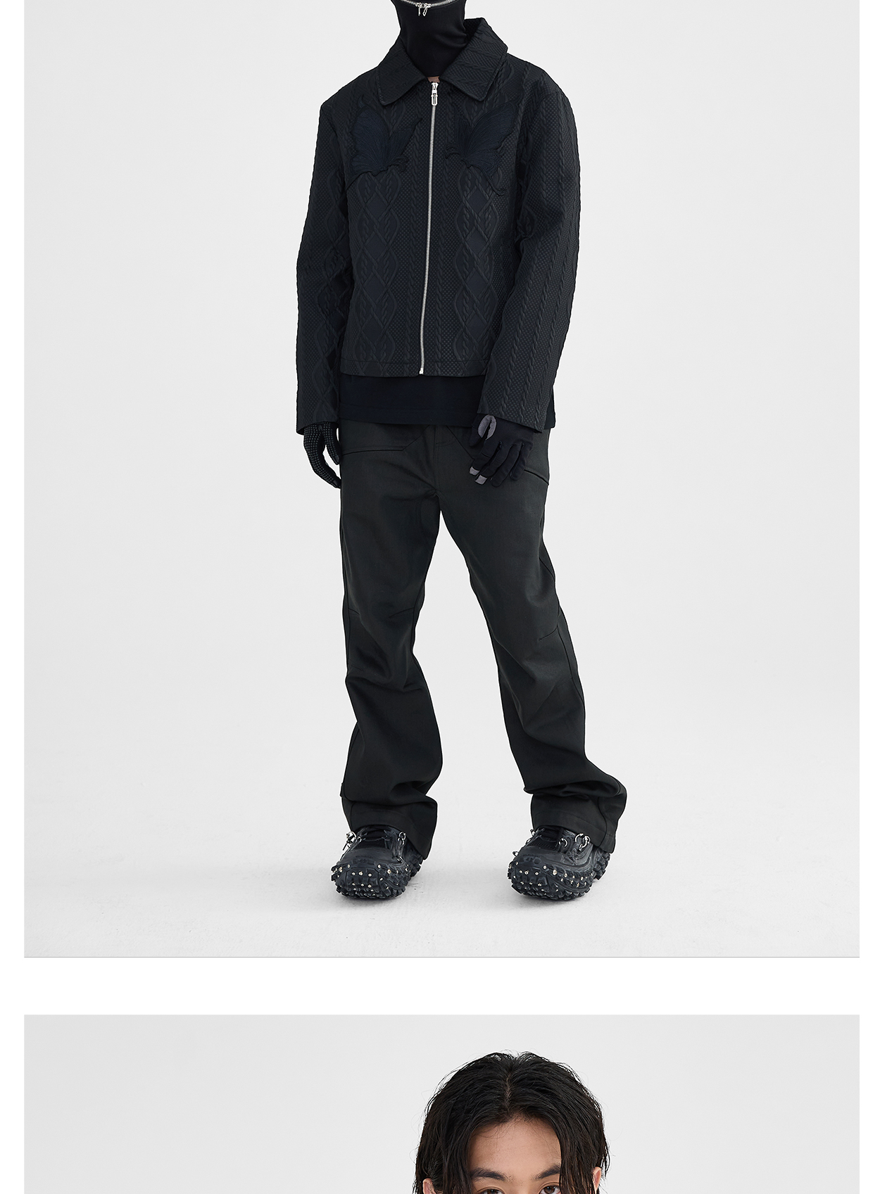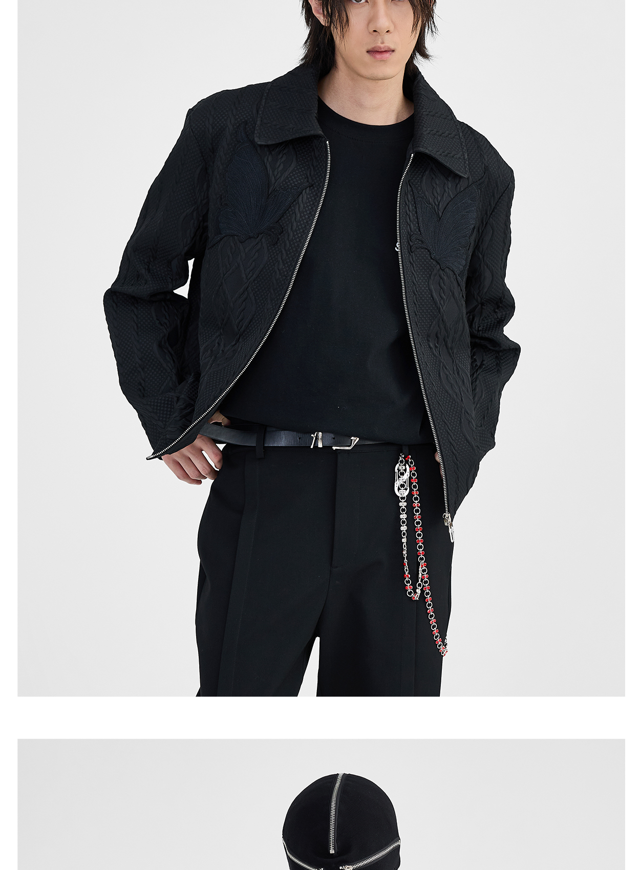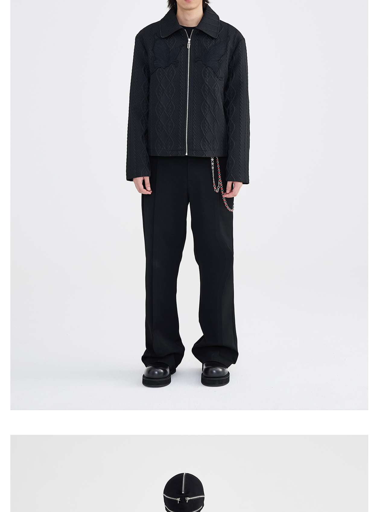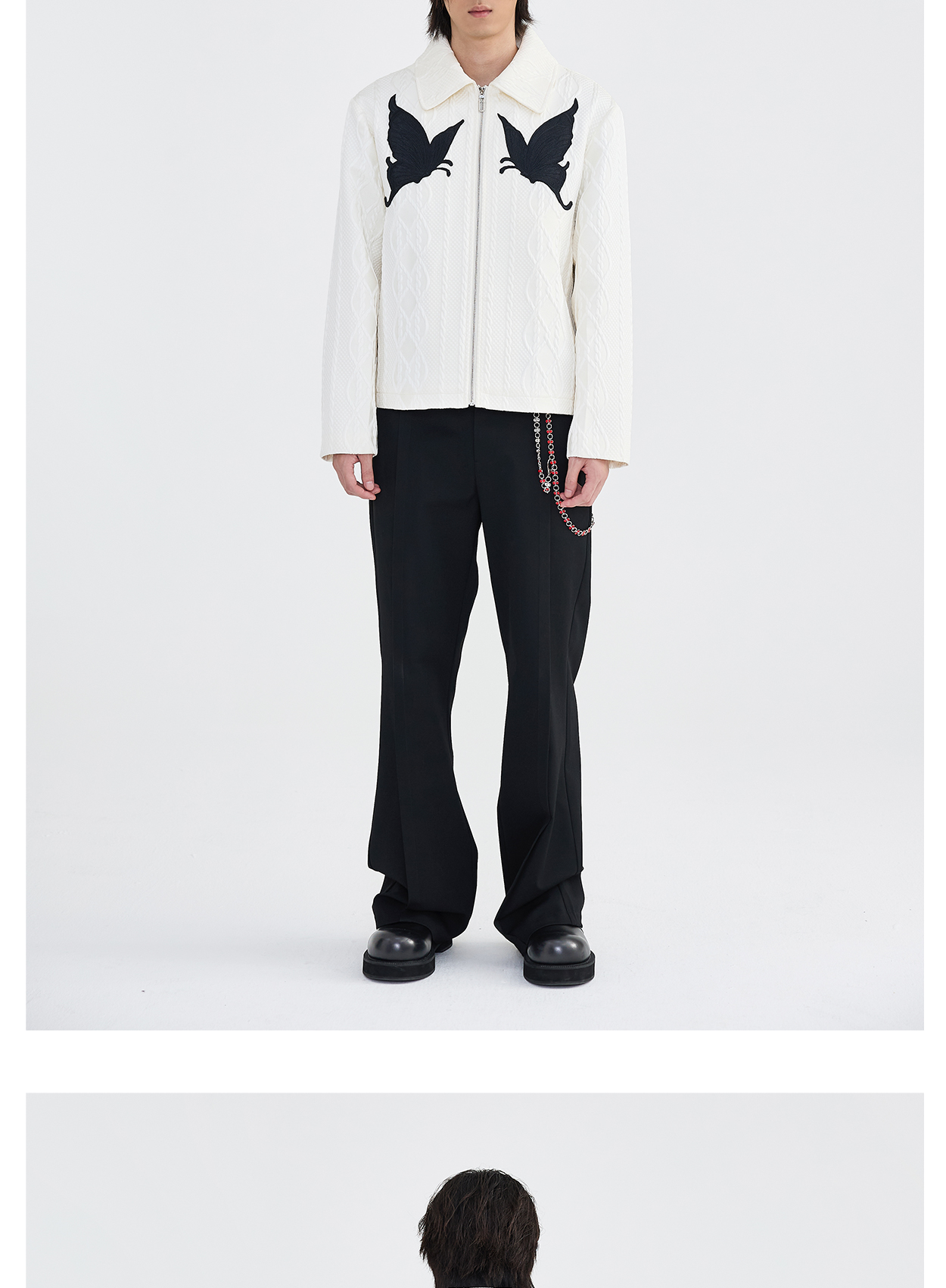 Butterfly Embroidery Jacquard Zipper Jacket WN8631