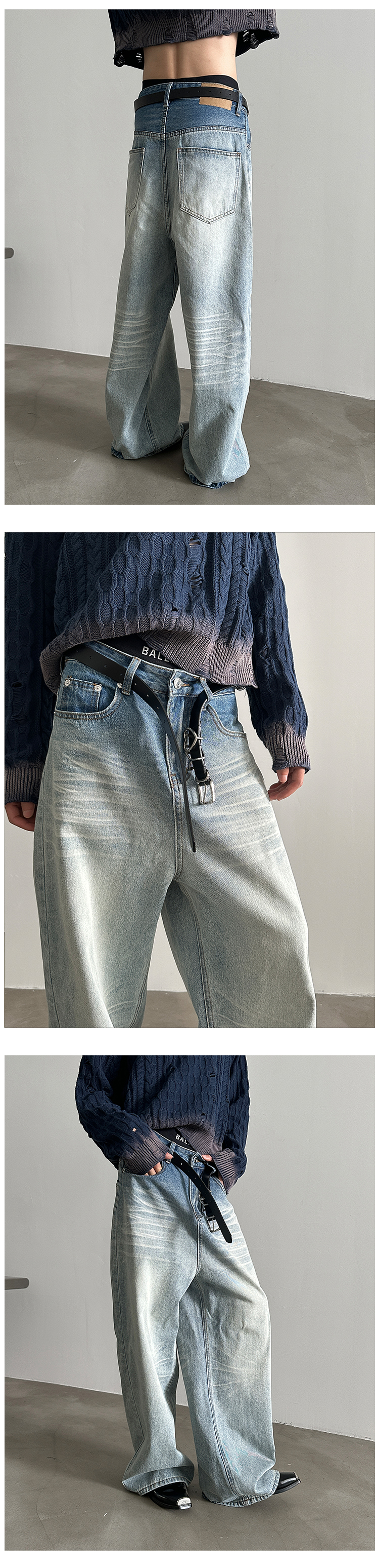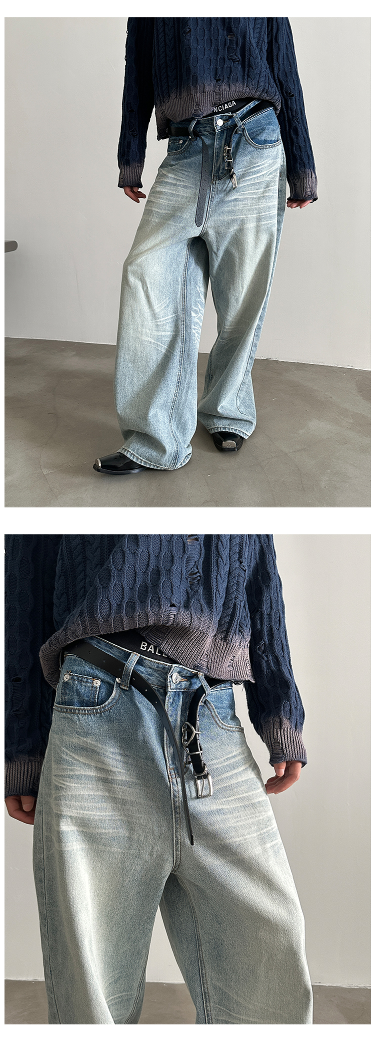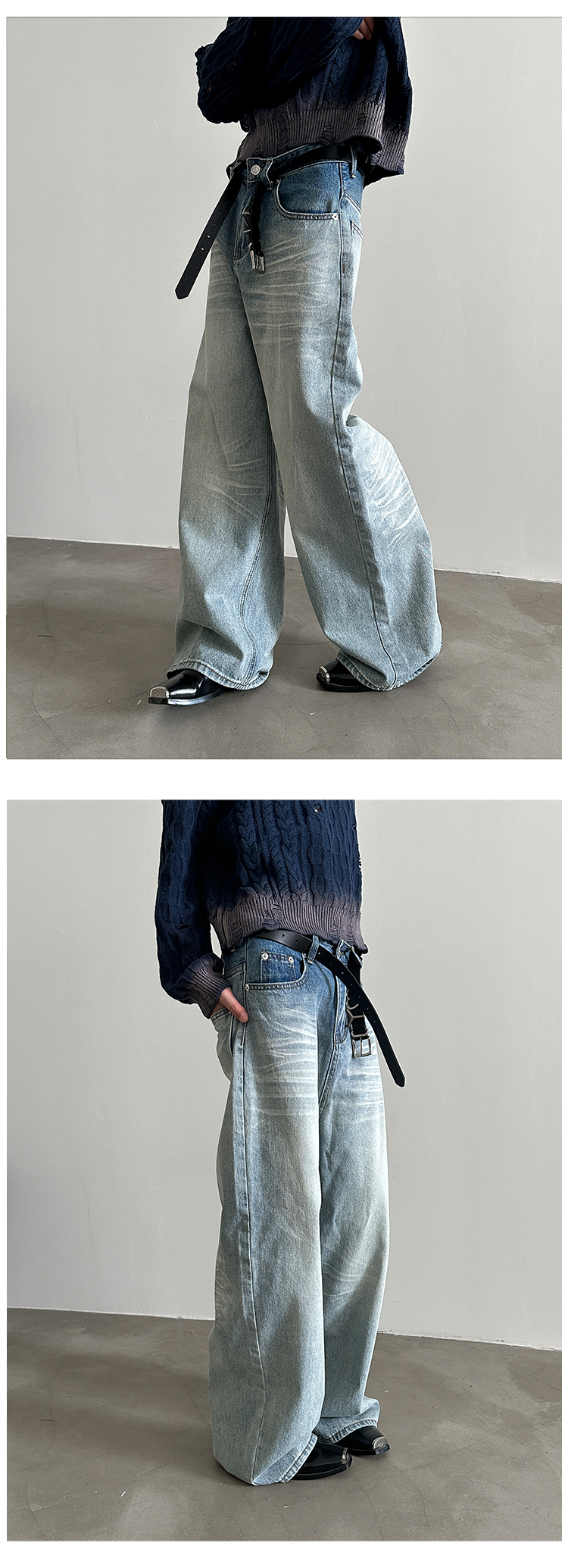 Gradient Washed Wide-Leg Straight Denim Jeans WN8928