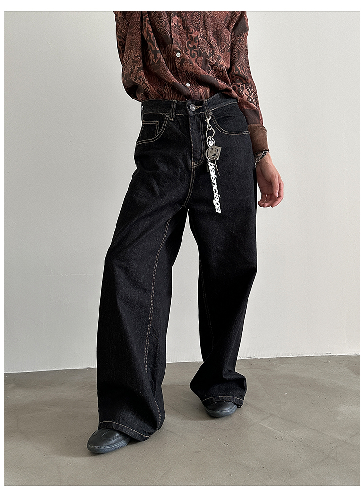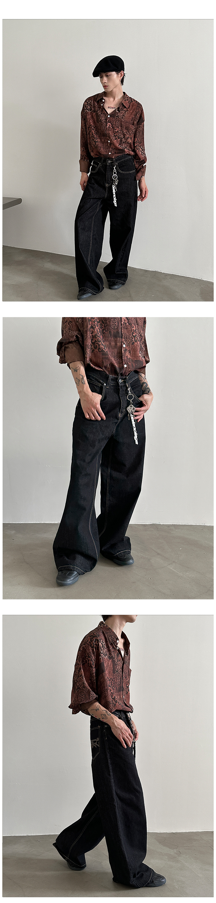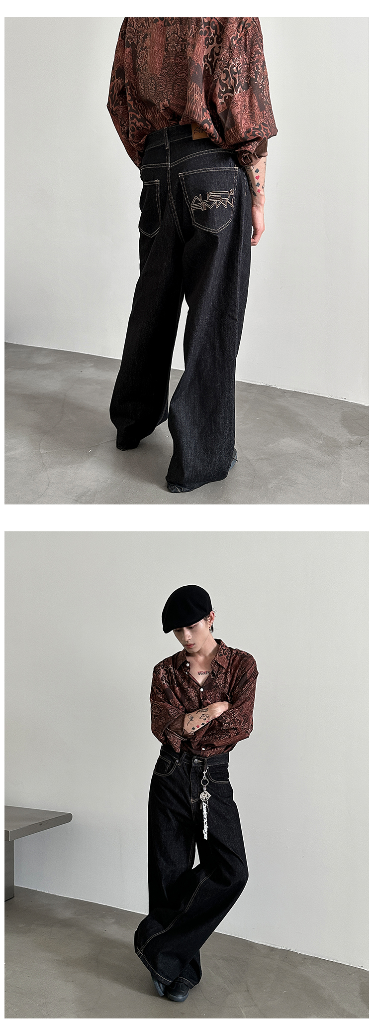 Mid Low Waist Washed Wide-Leg Straight Denim Jeans WN8929