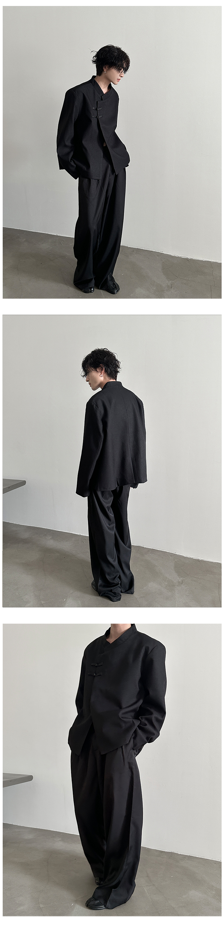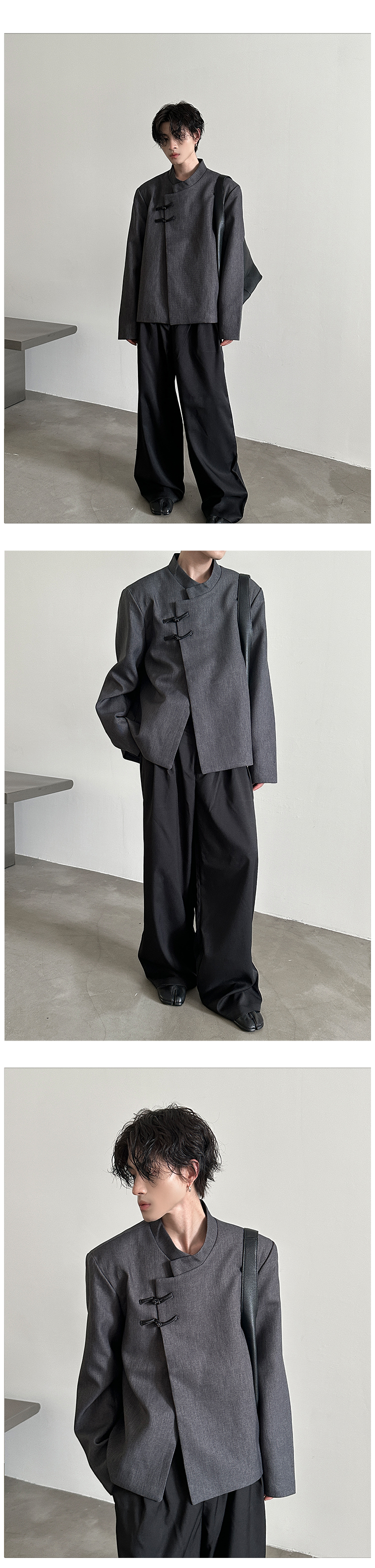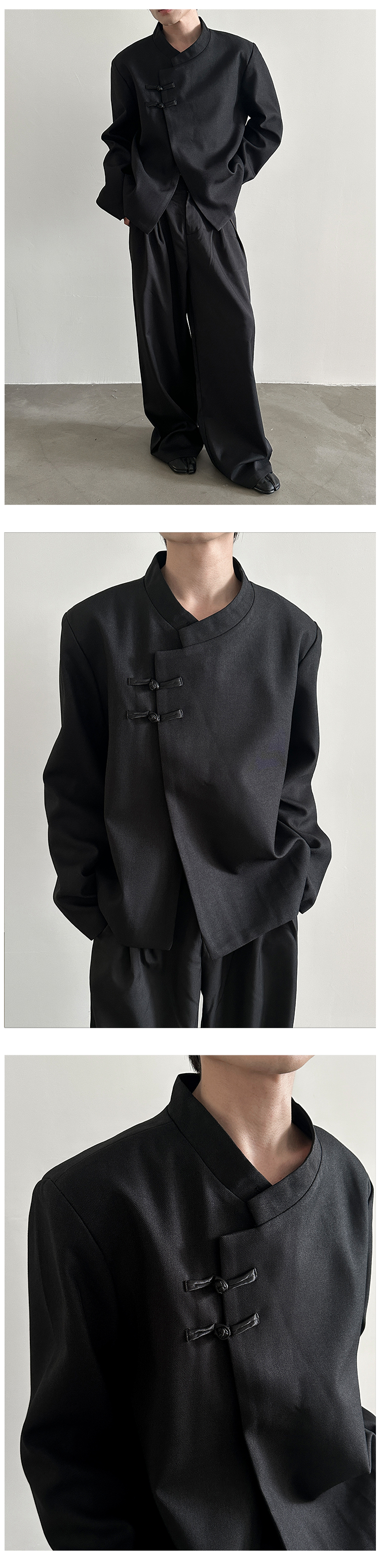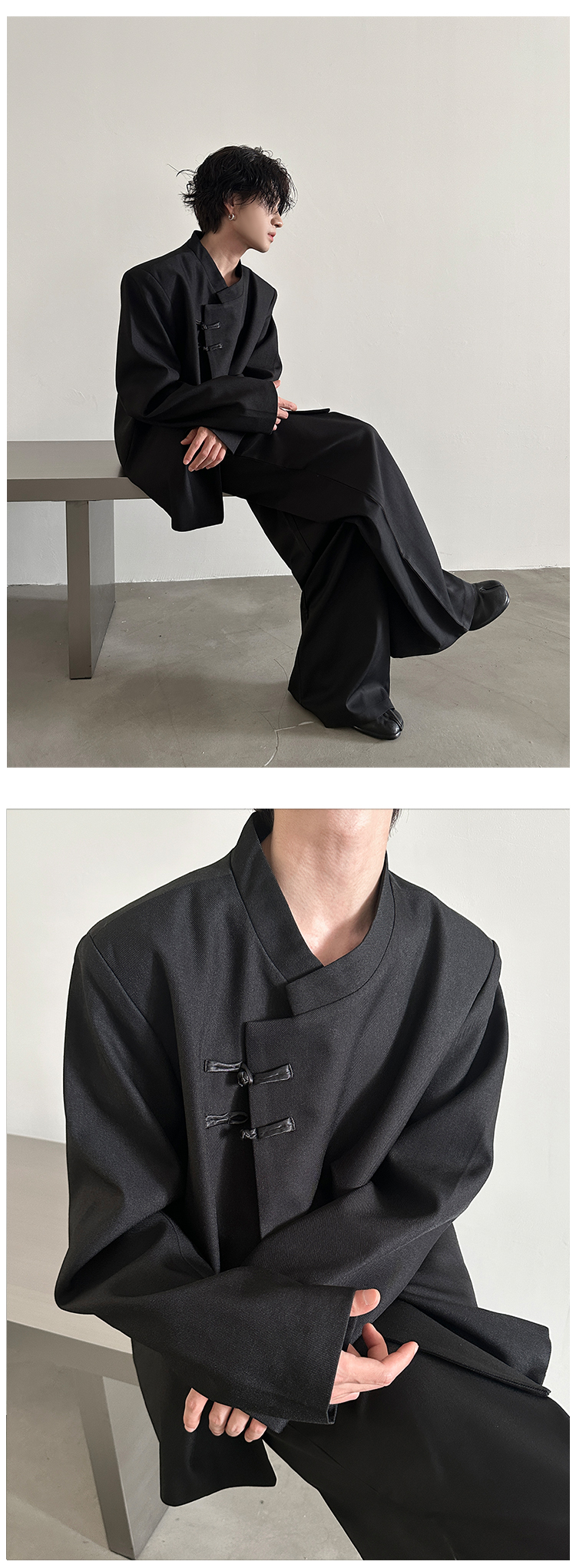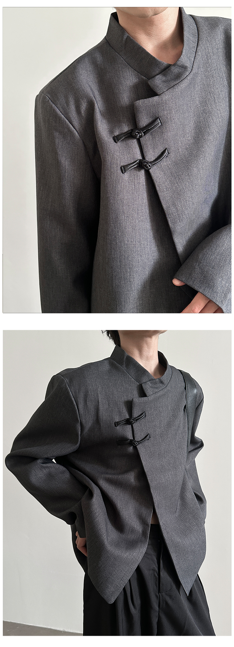 Stand Neck Shoulder Pad Double Plate Buckle Jacket WN8934