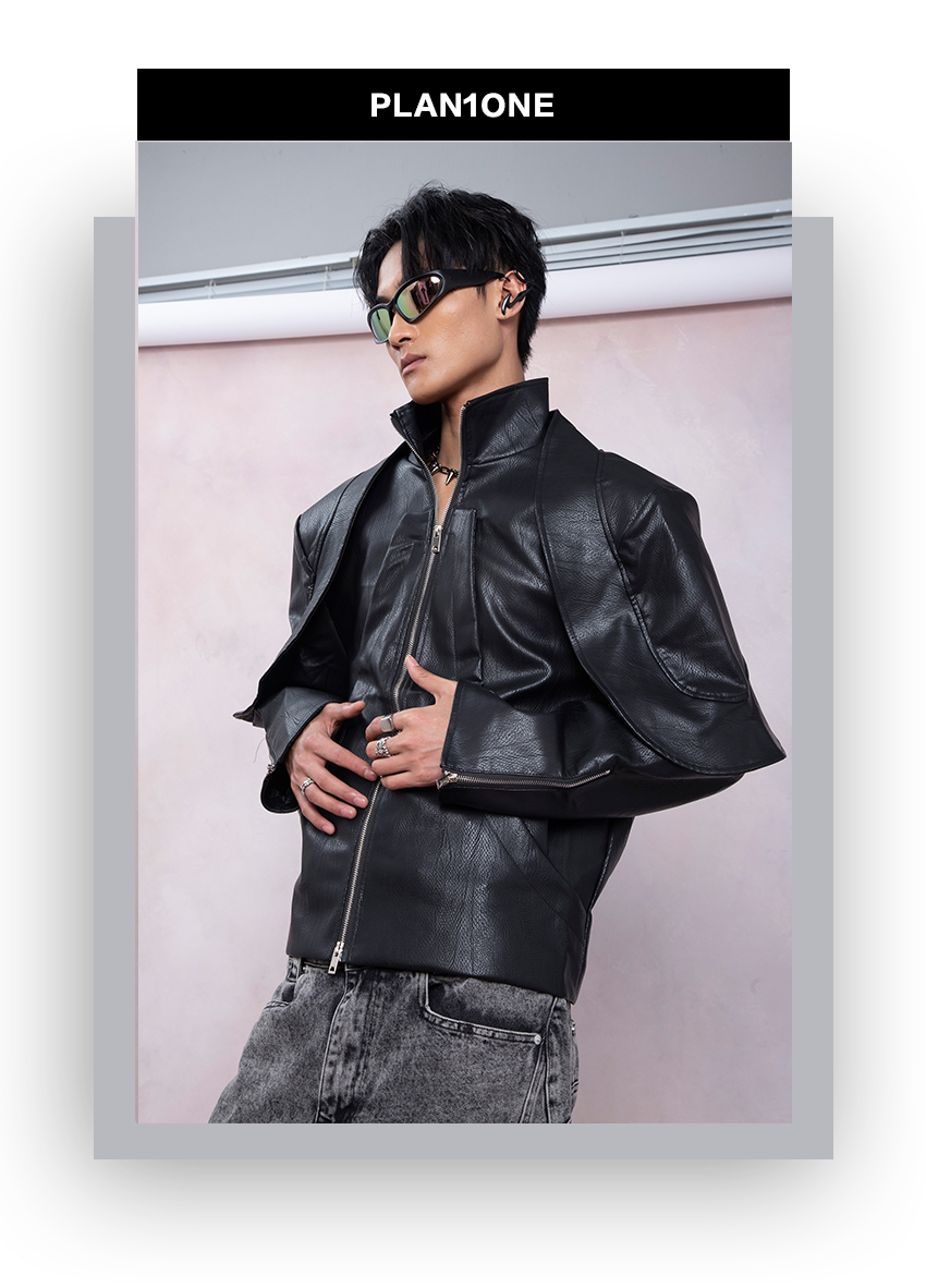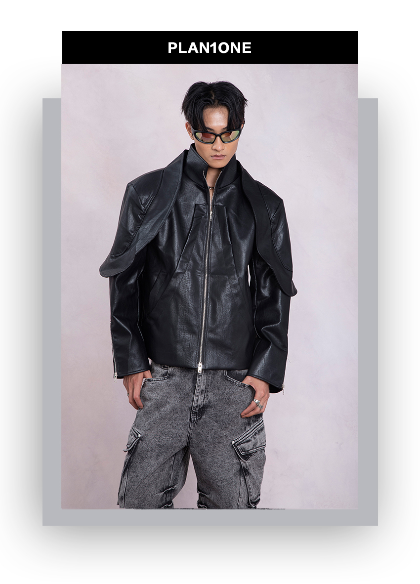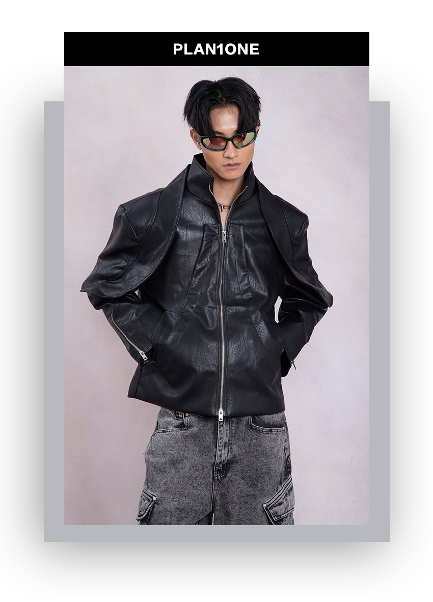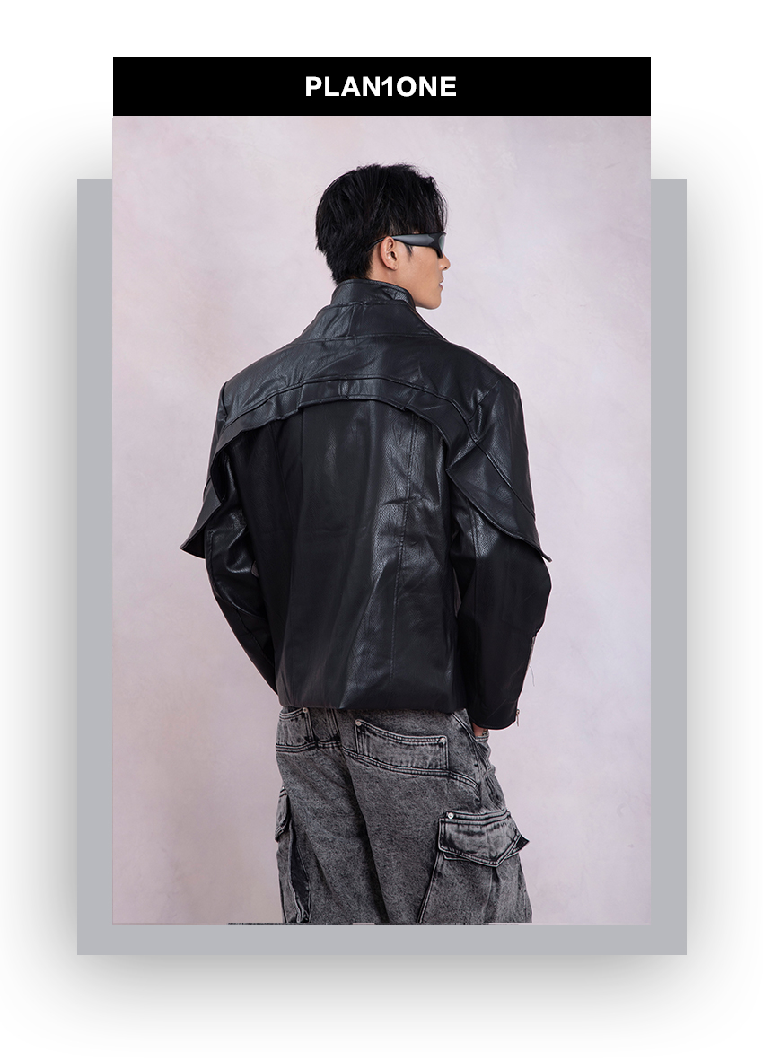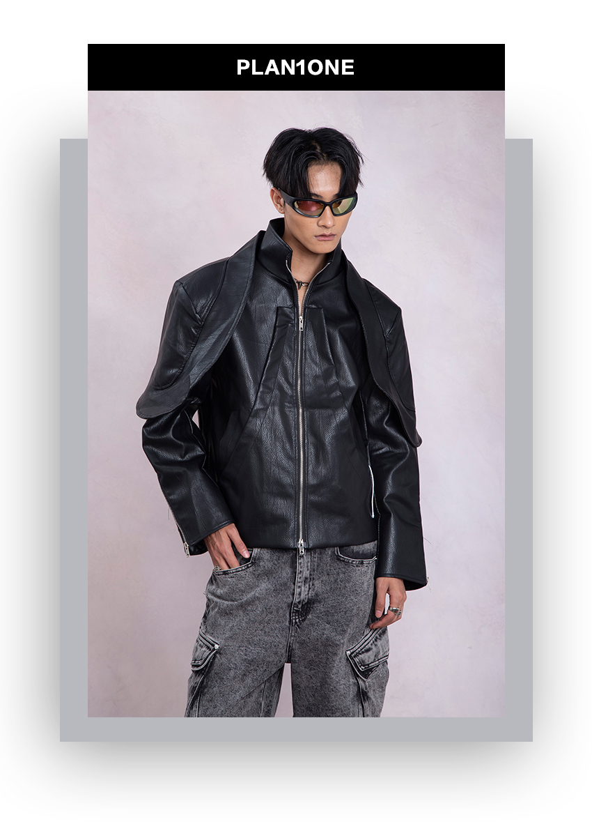 PU Leather Patchwork Fake Layered Short Jacket WN9326