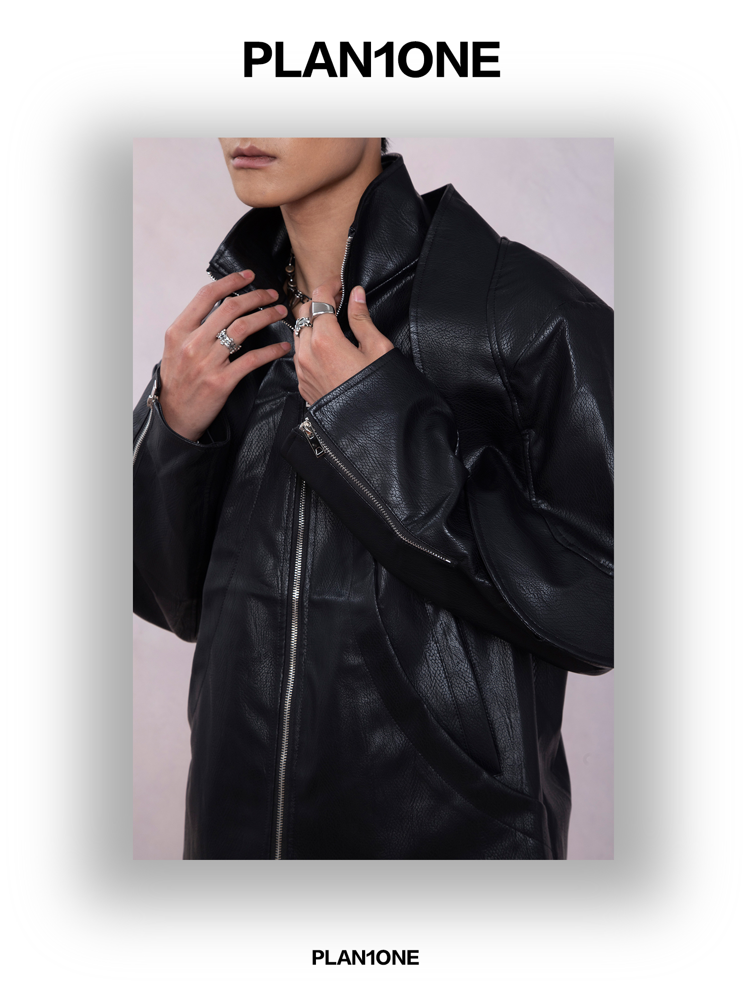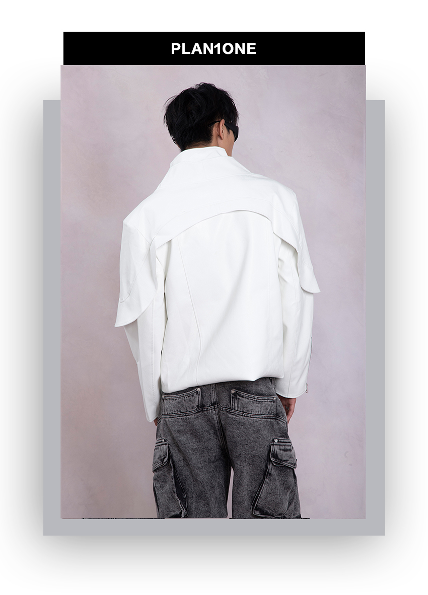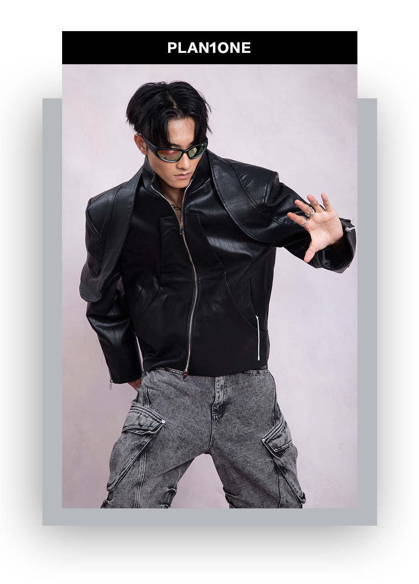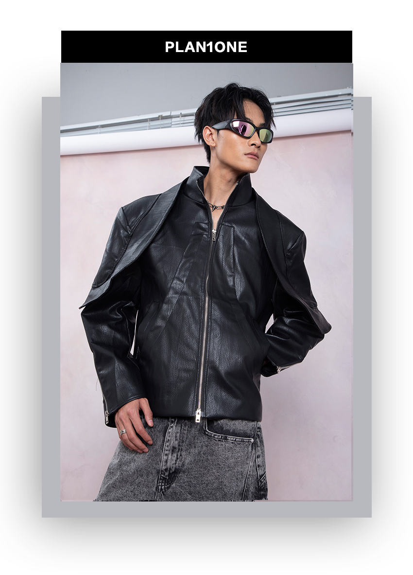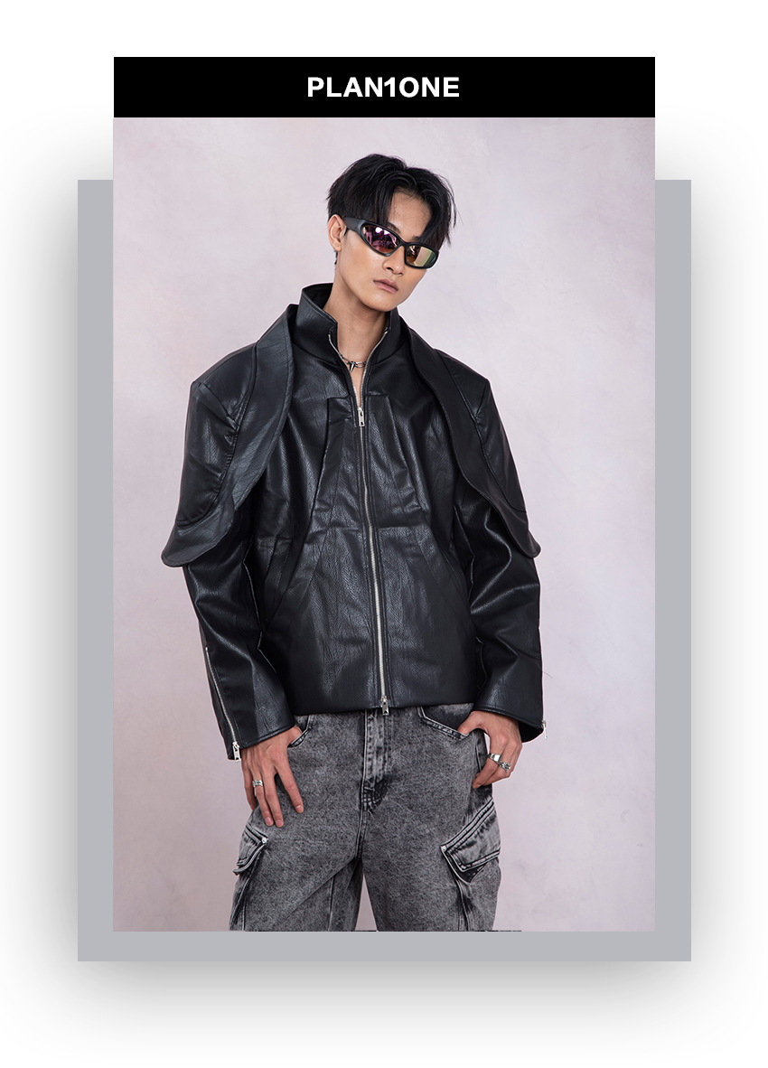 PU Leather Patchwork Fake Layered Short Jacket WN9326