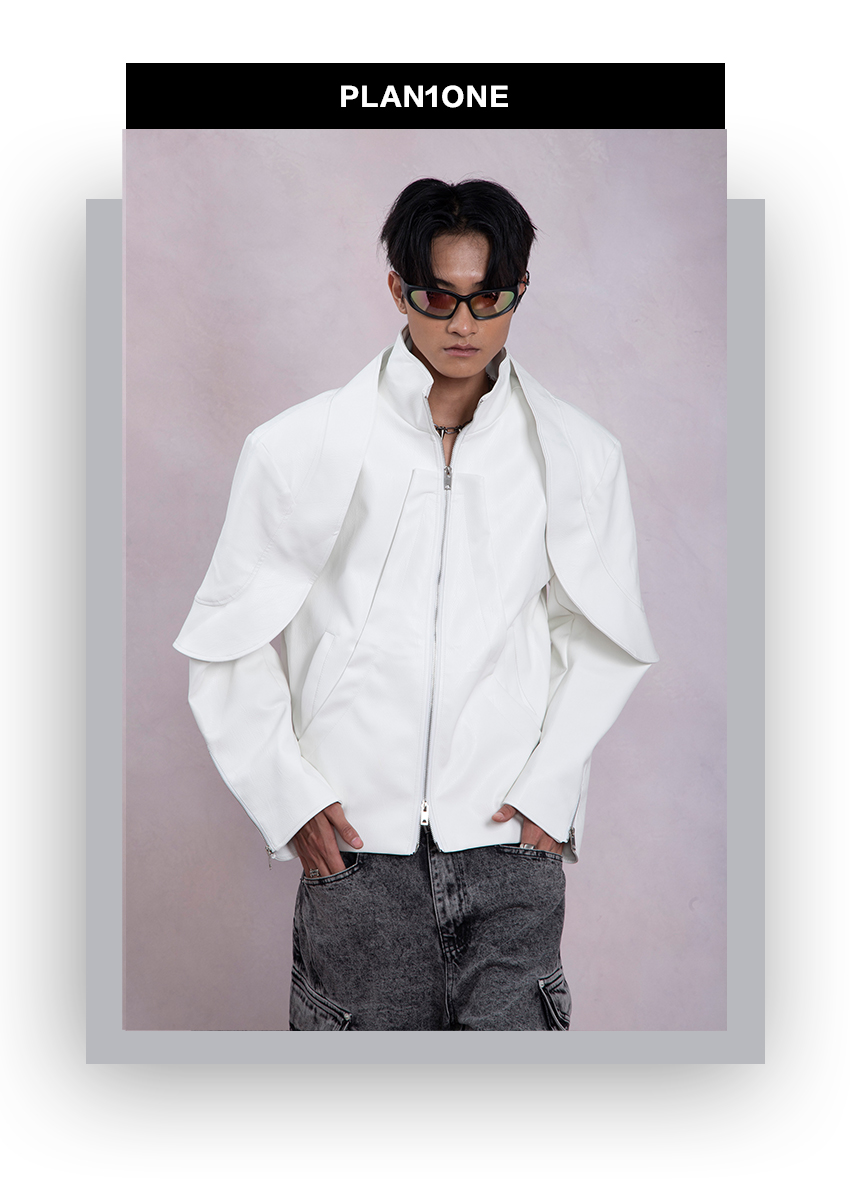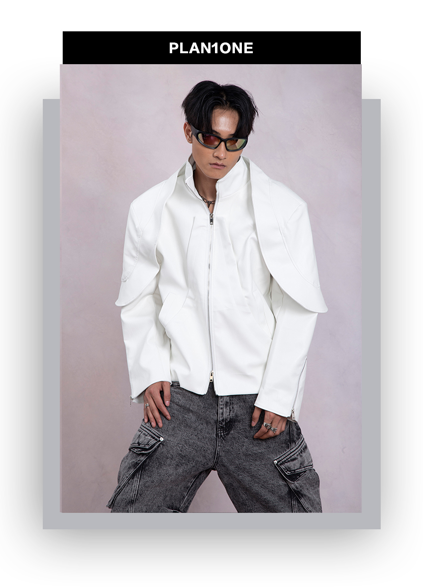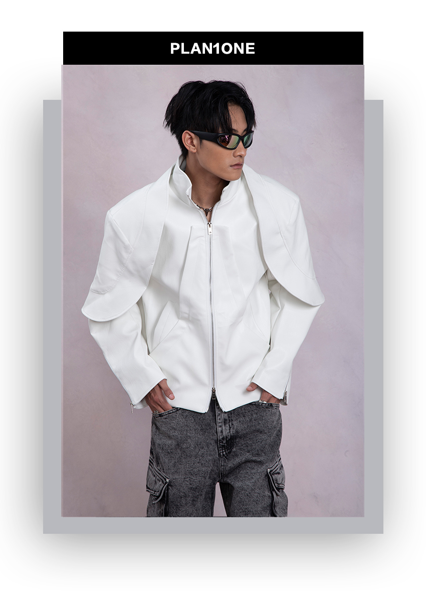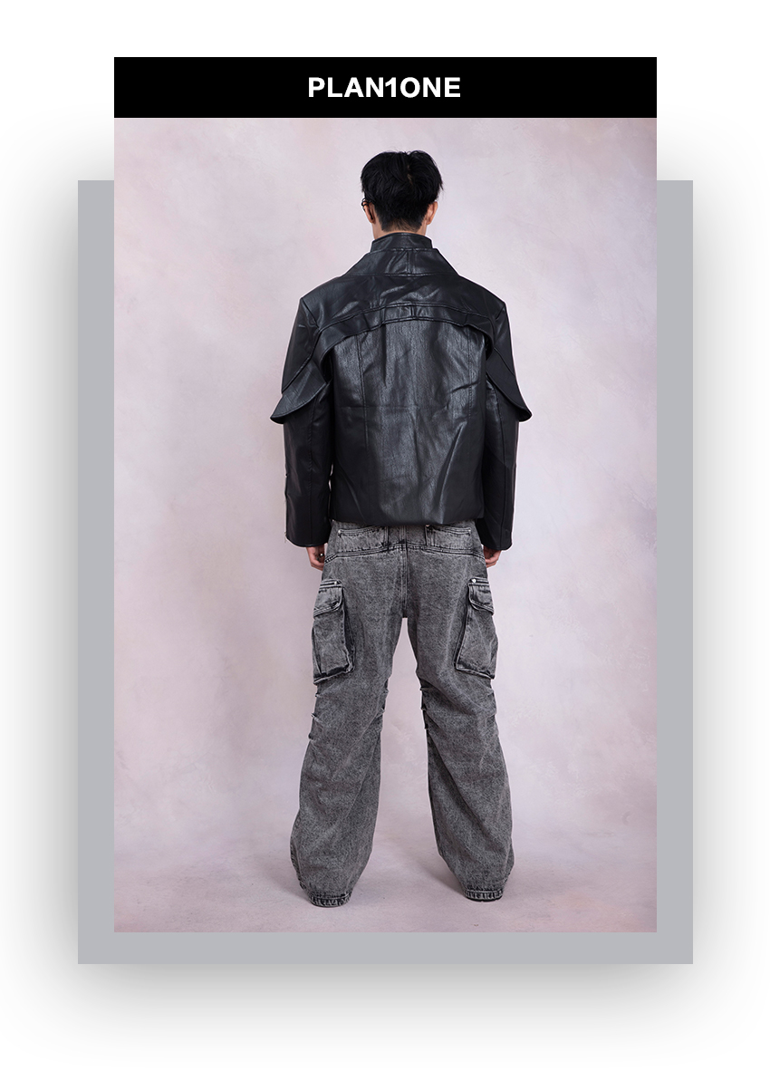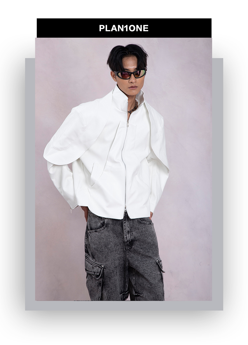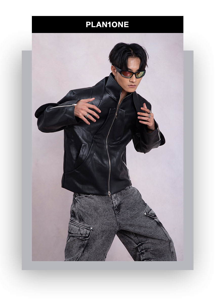 PU Leather Patchwork Fake Layered Short Jacket WN9326