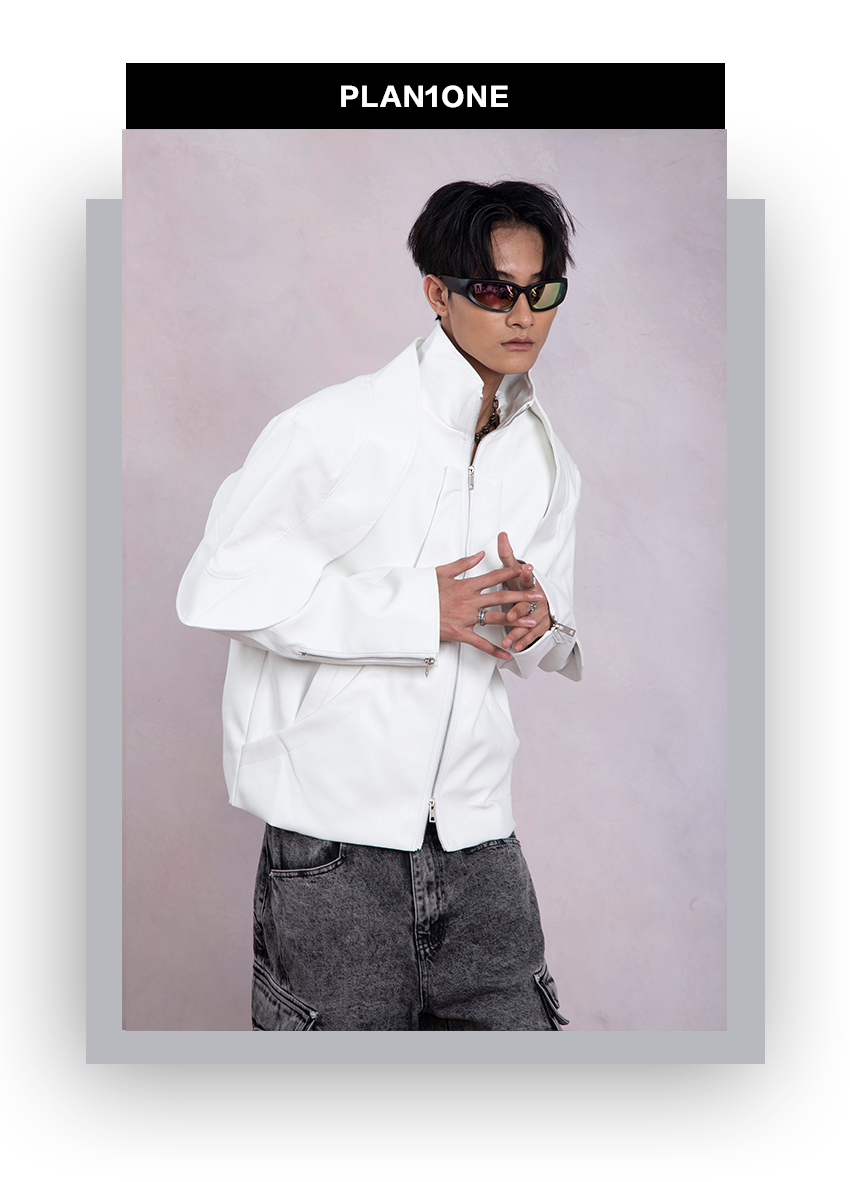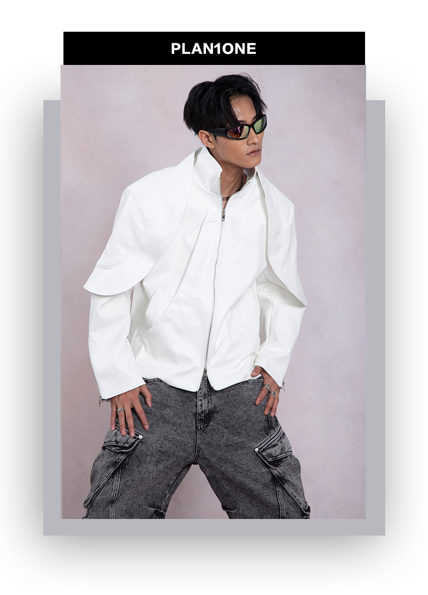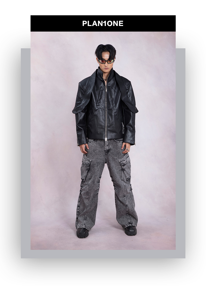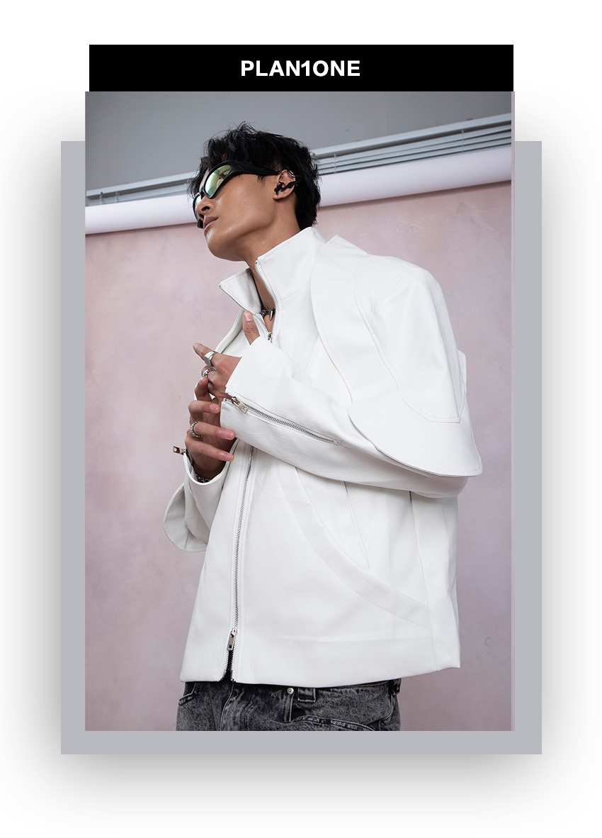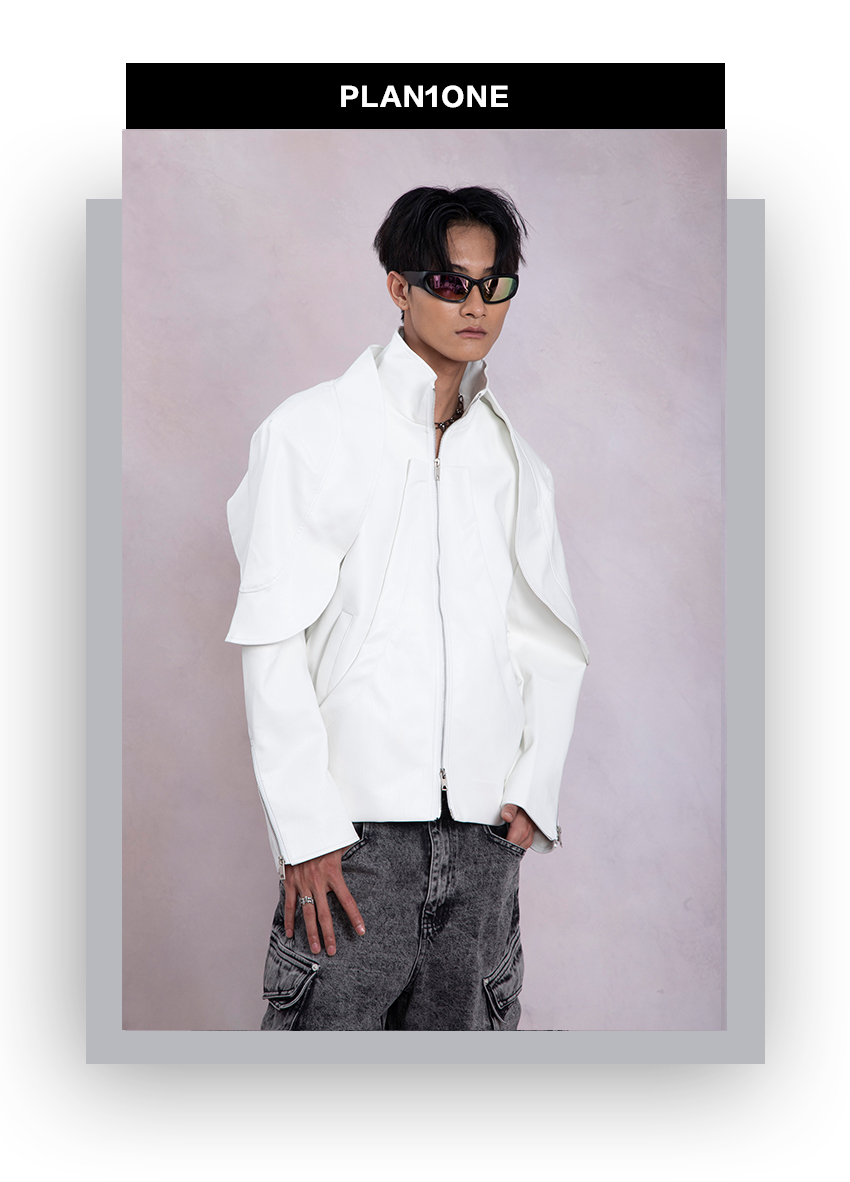PU Leather Patchwork Fake Layered Short Jacket WN9326