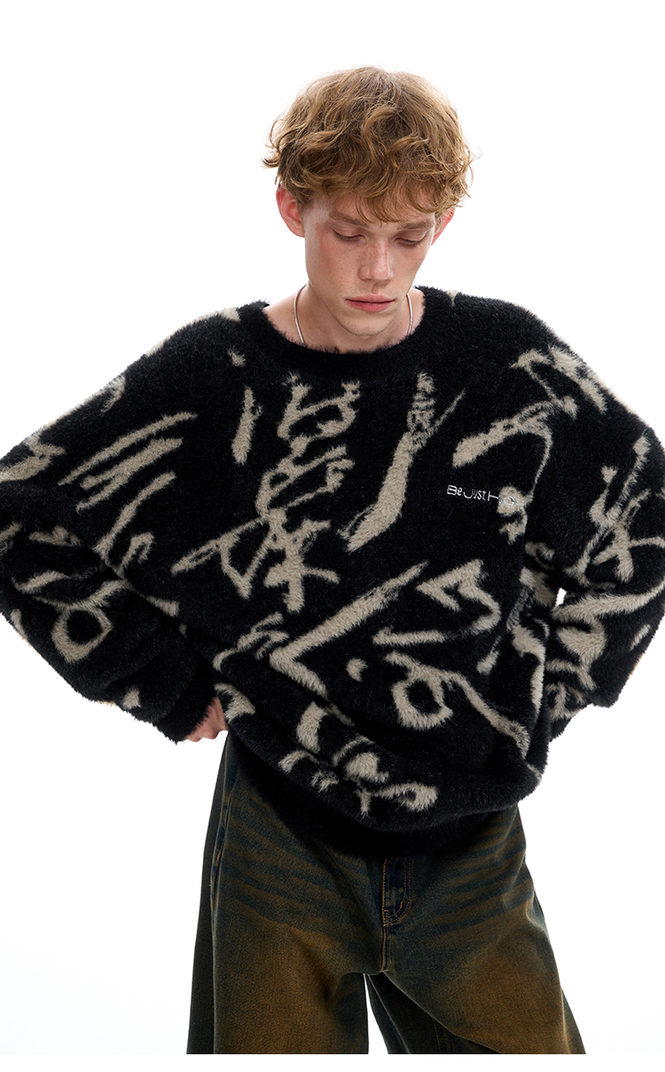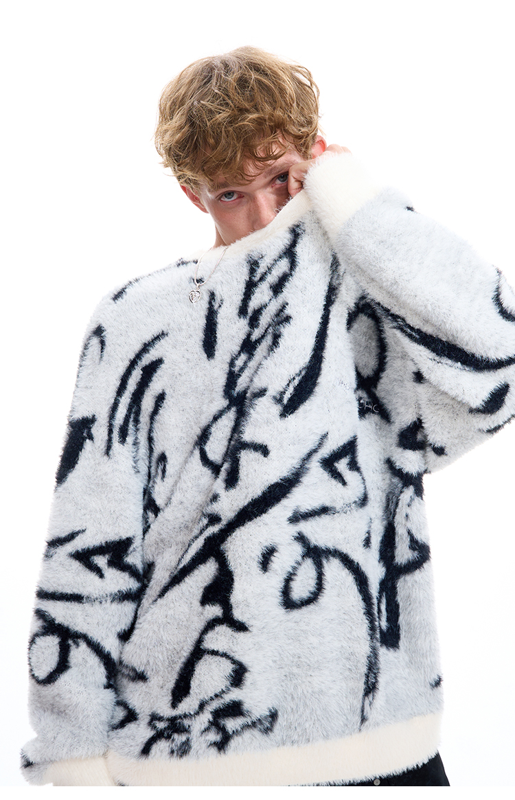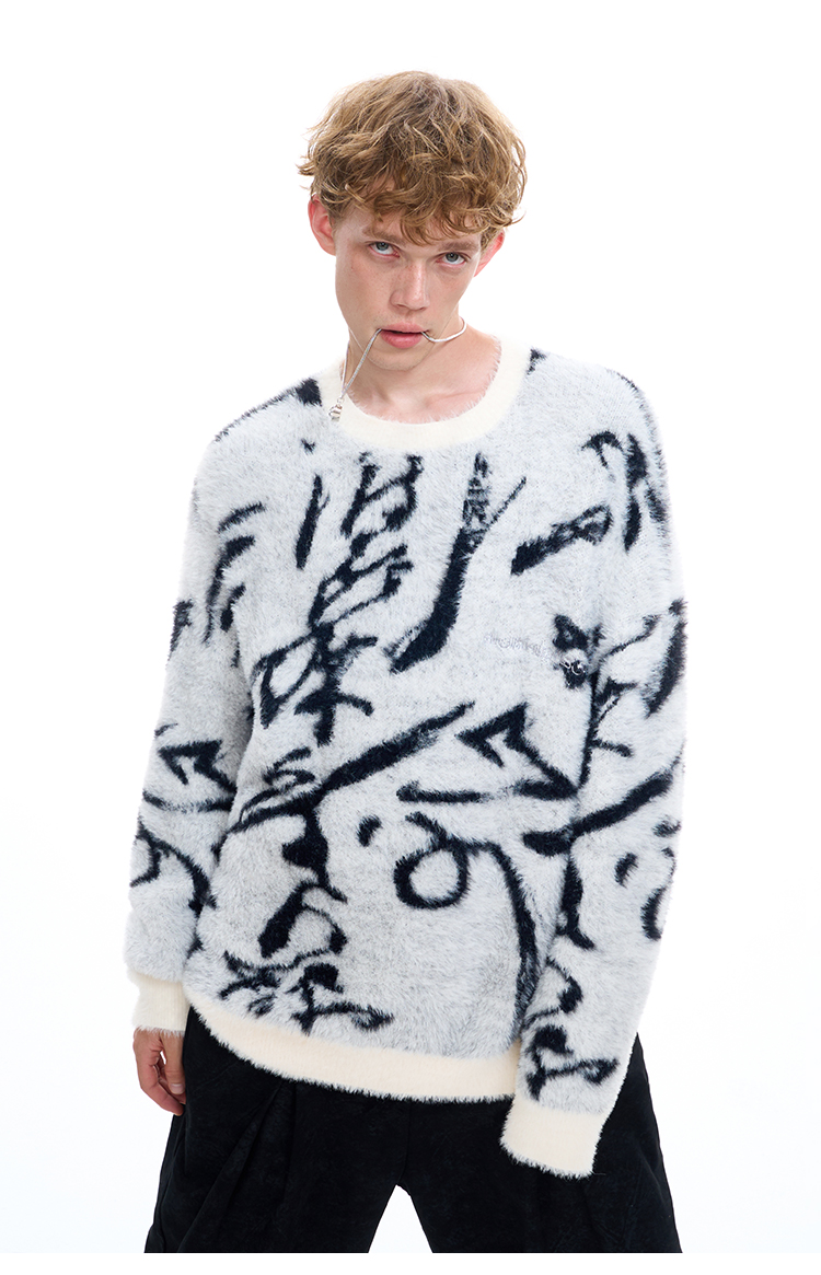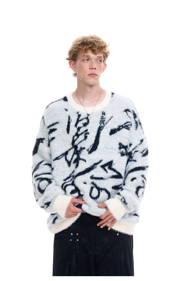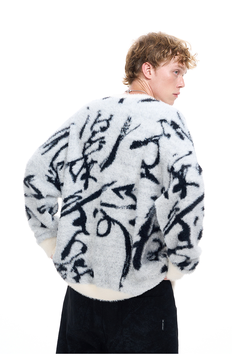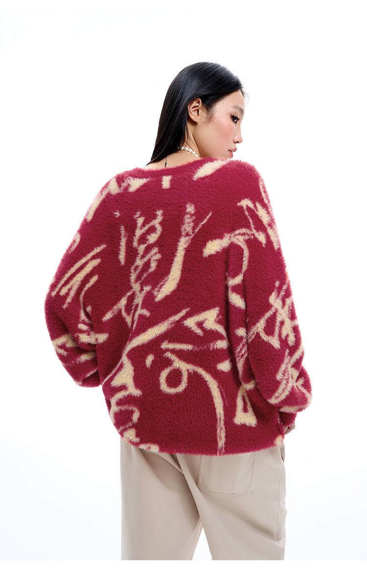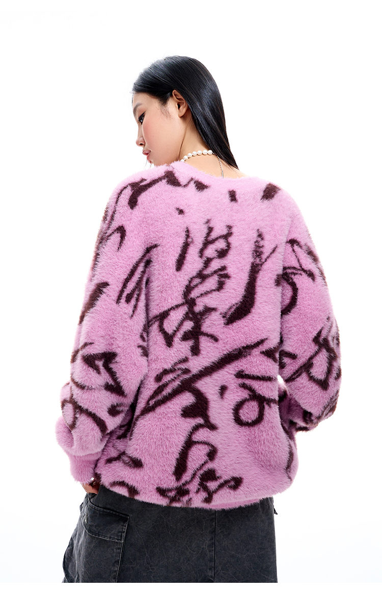 Fake Fur Jacquard Round Neck Knit Sweater WN9850