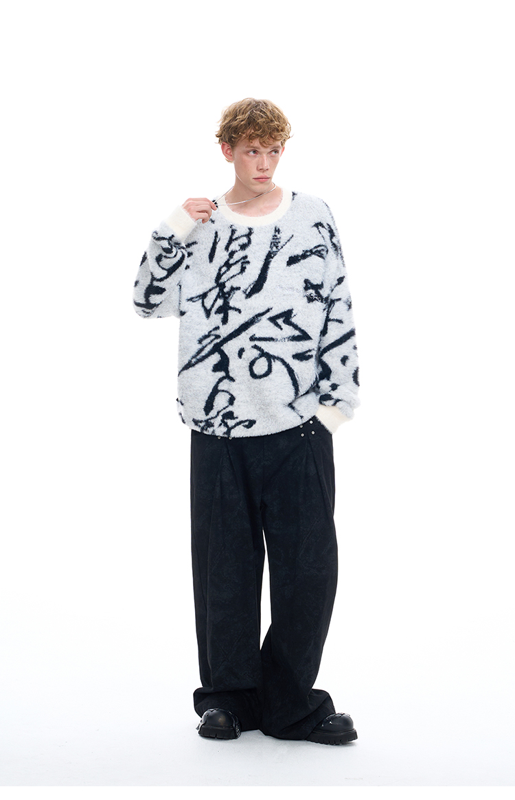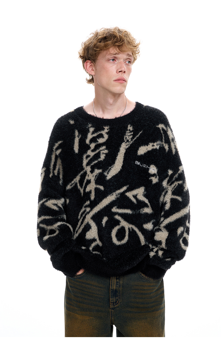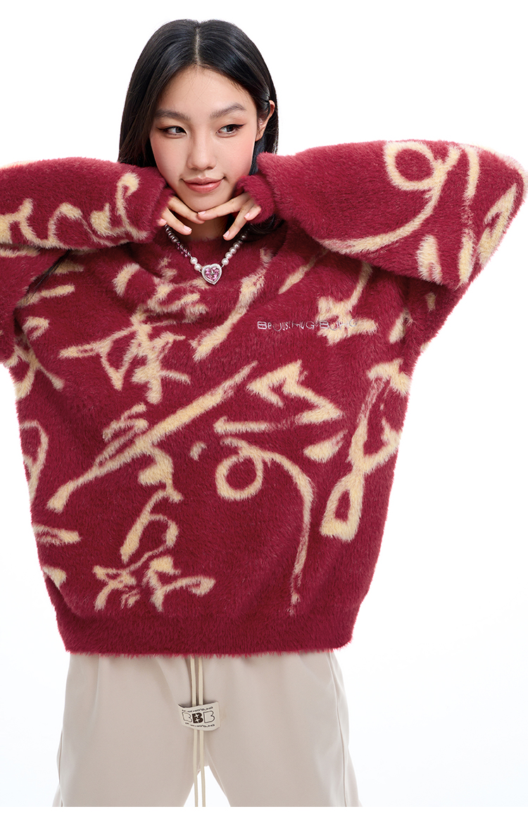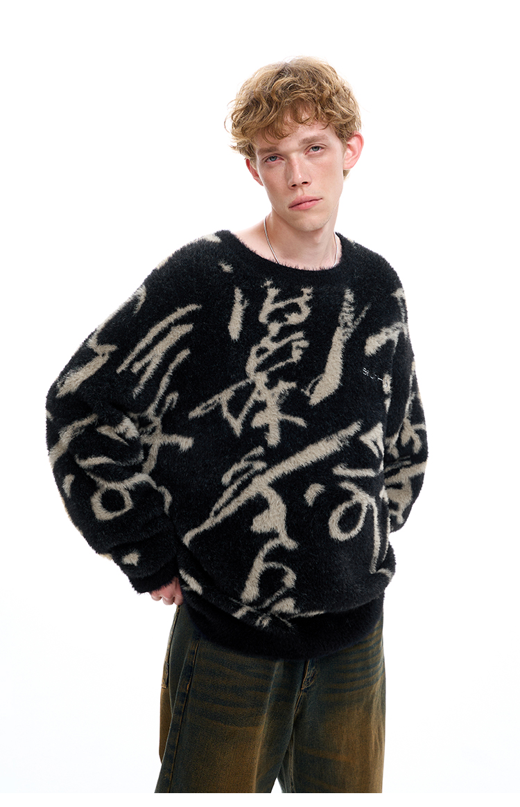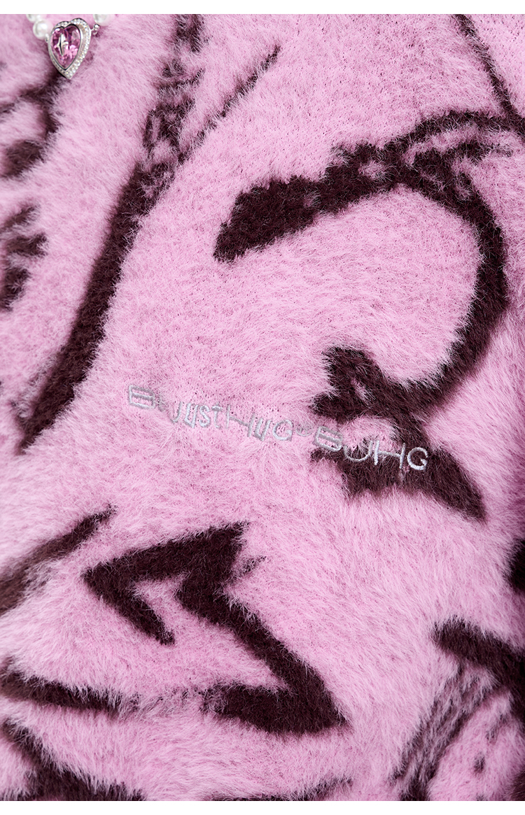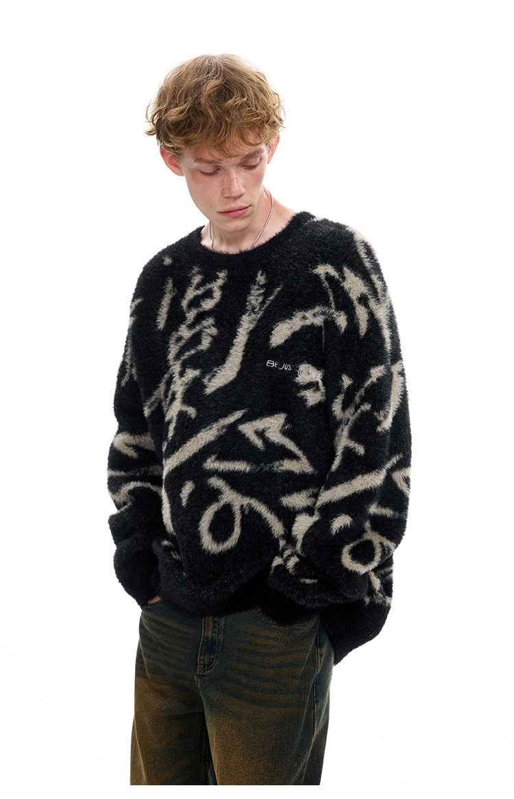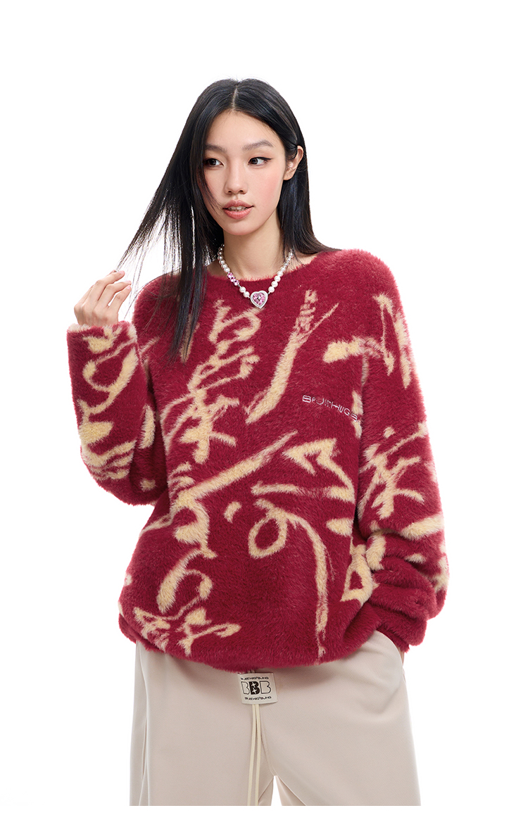 Fake Fur Jacquard Round Neck Knit Sweater WN9850
