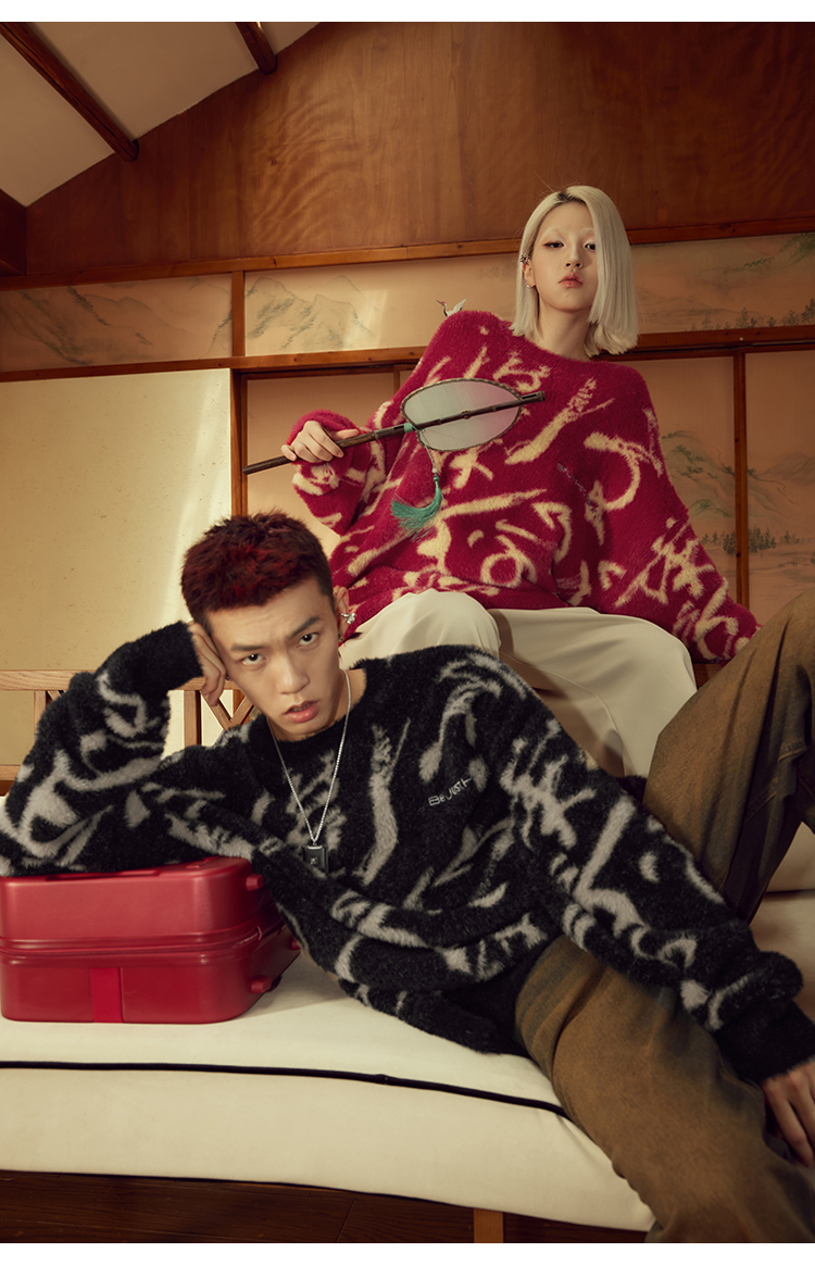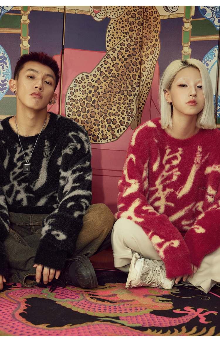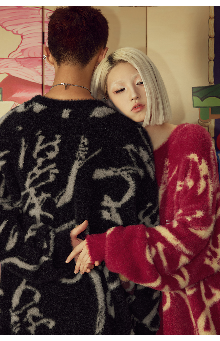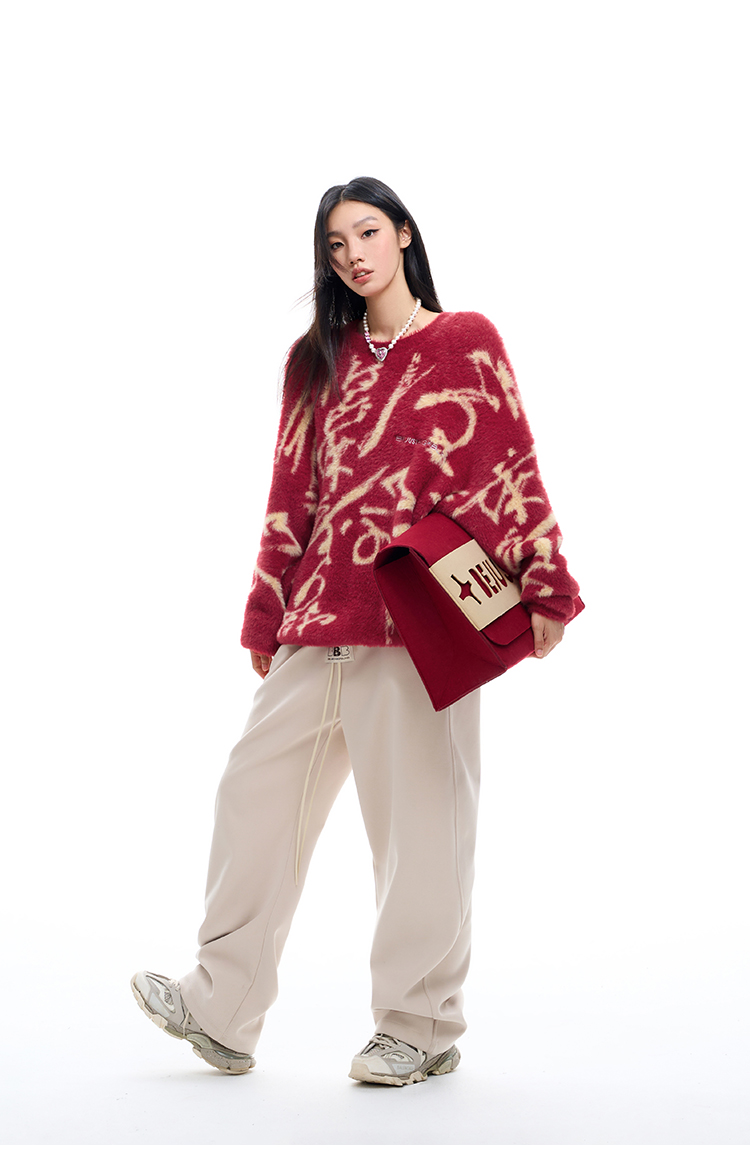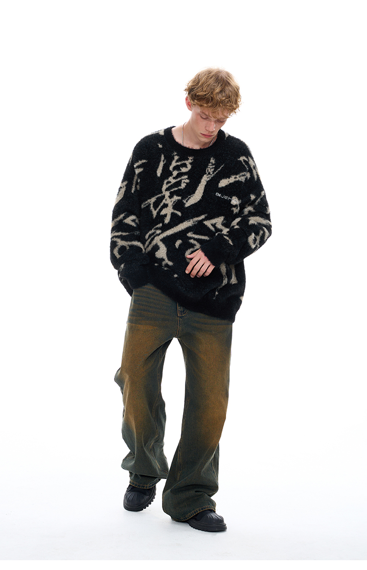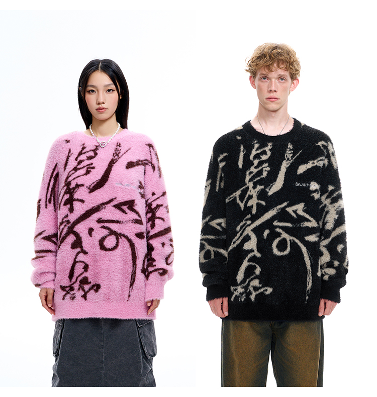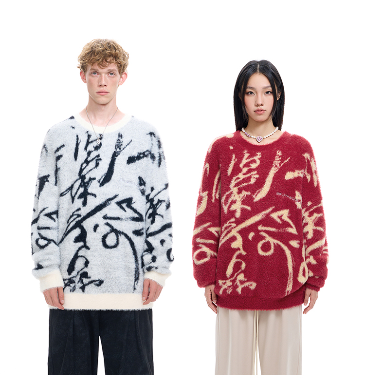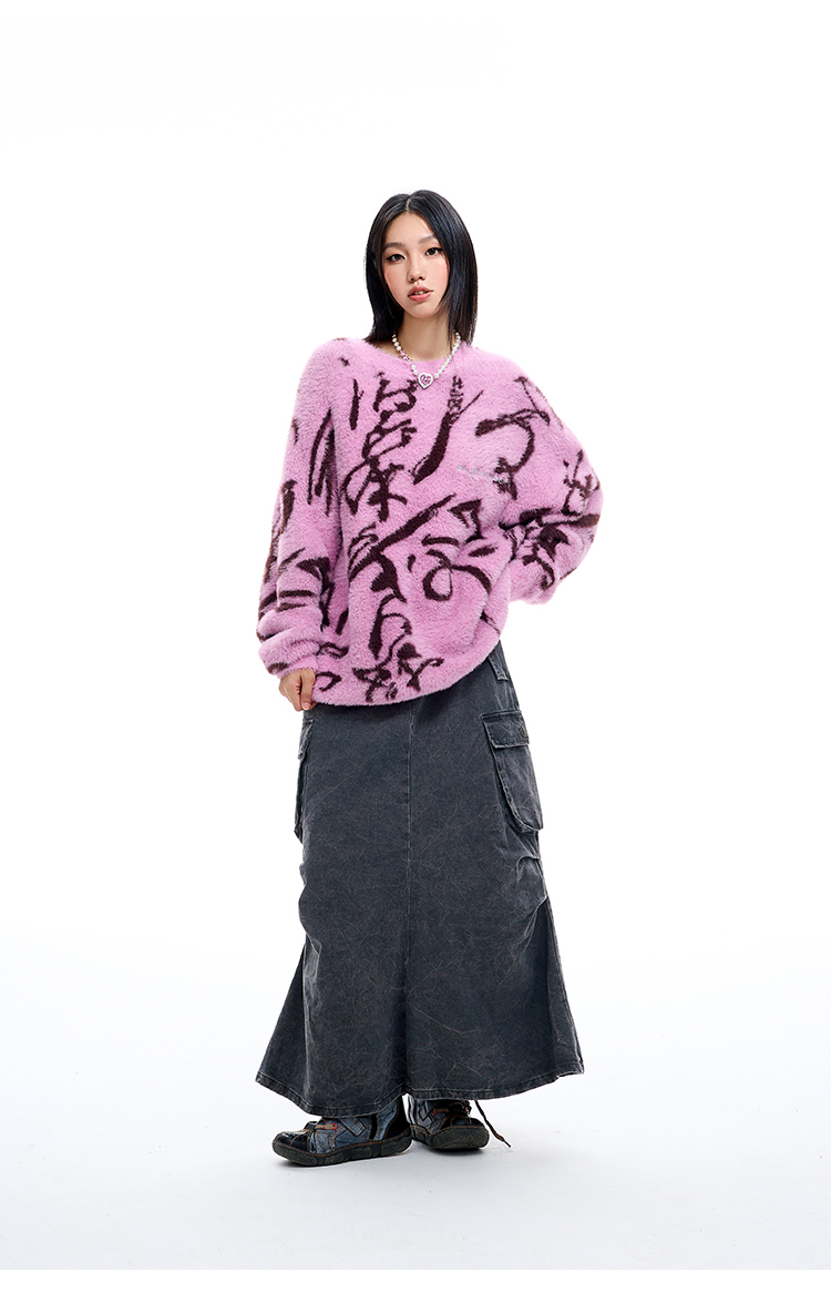 Fake Fur Jacquard Round Neck Knit Sweater WN9850