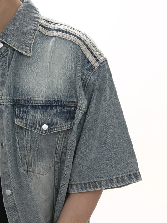 Wash Oversize Short Sleeve Denim Shirt WN5653
