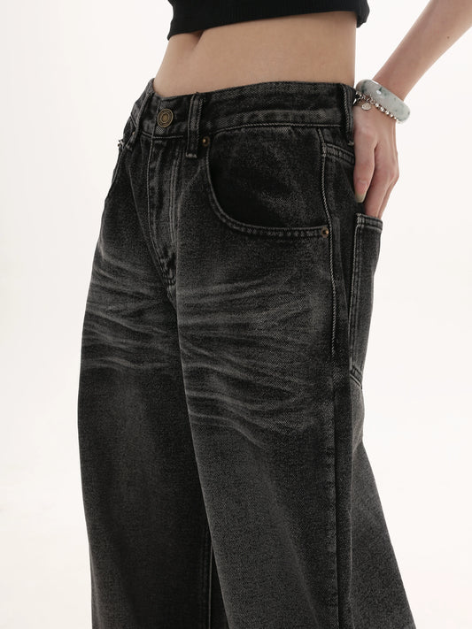 Wash Wide Leg Easy-waist Baggy Denim Jeans WN5638
