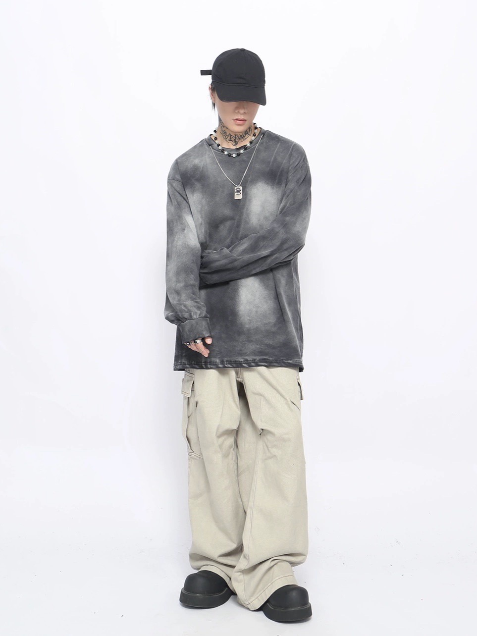 Paint-Splattered Washed Long Sleeve T-Shirt WN10888