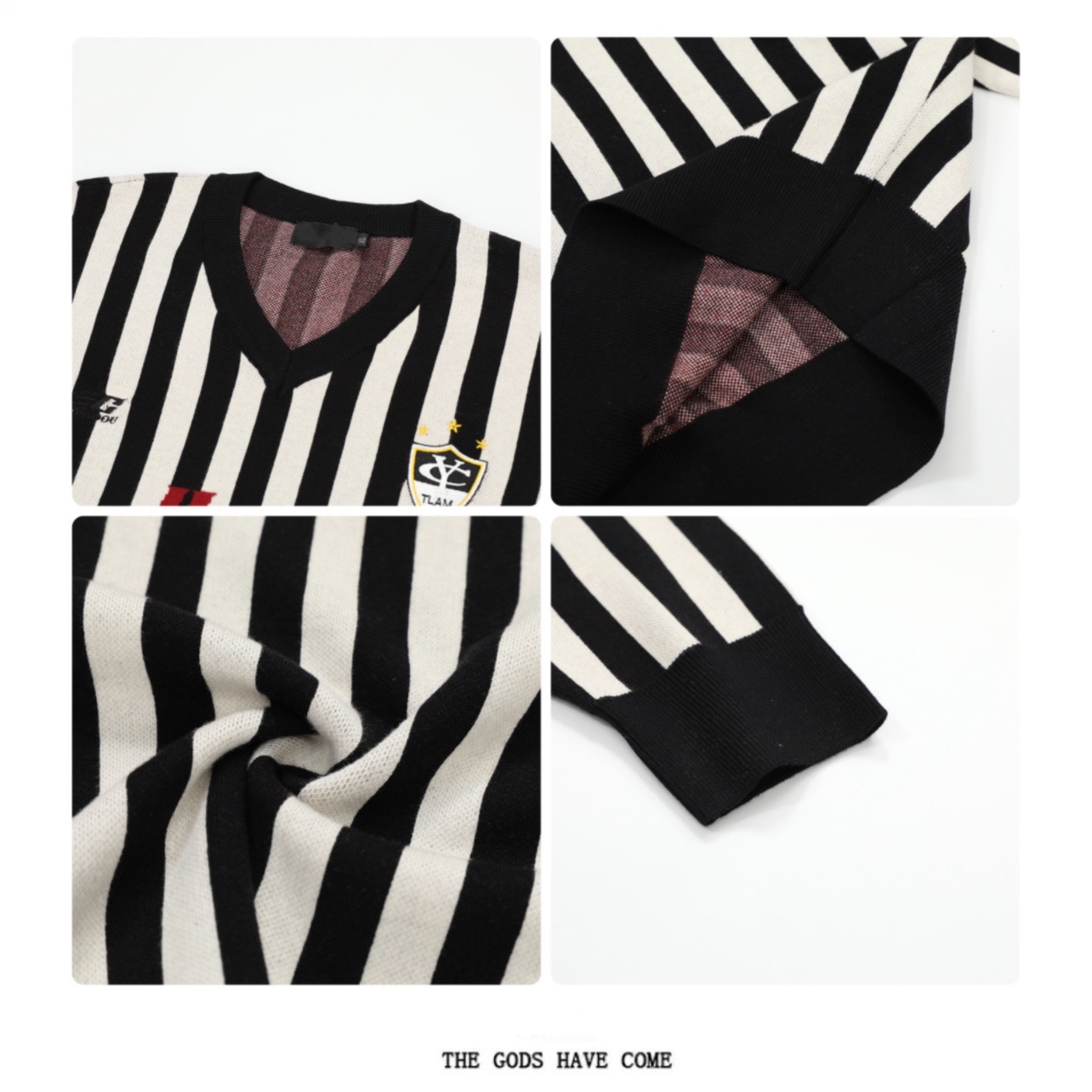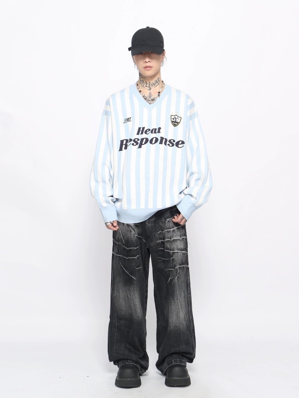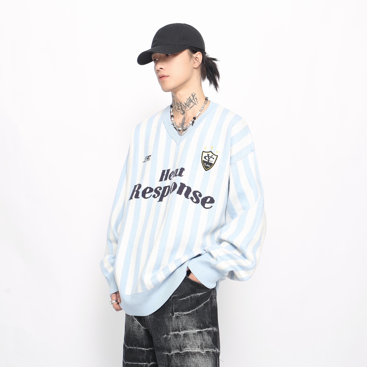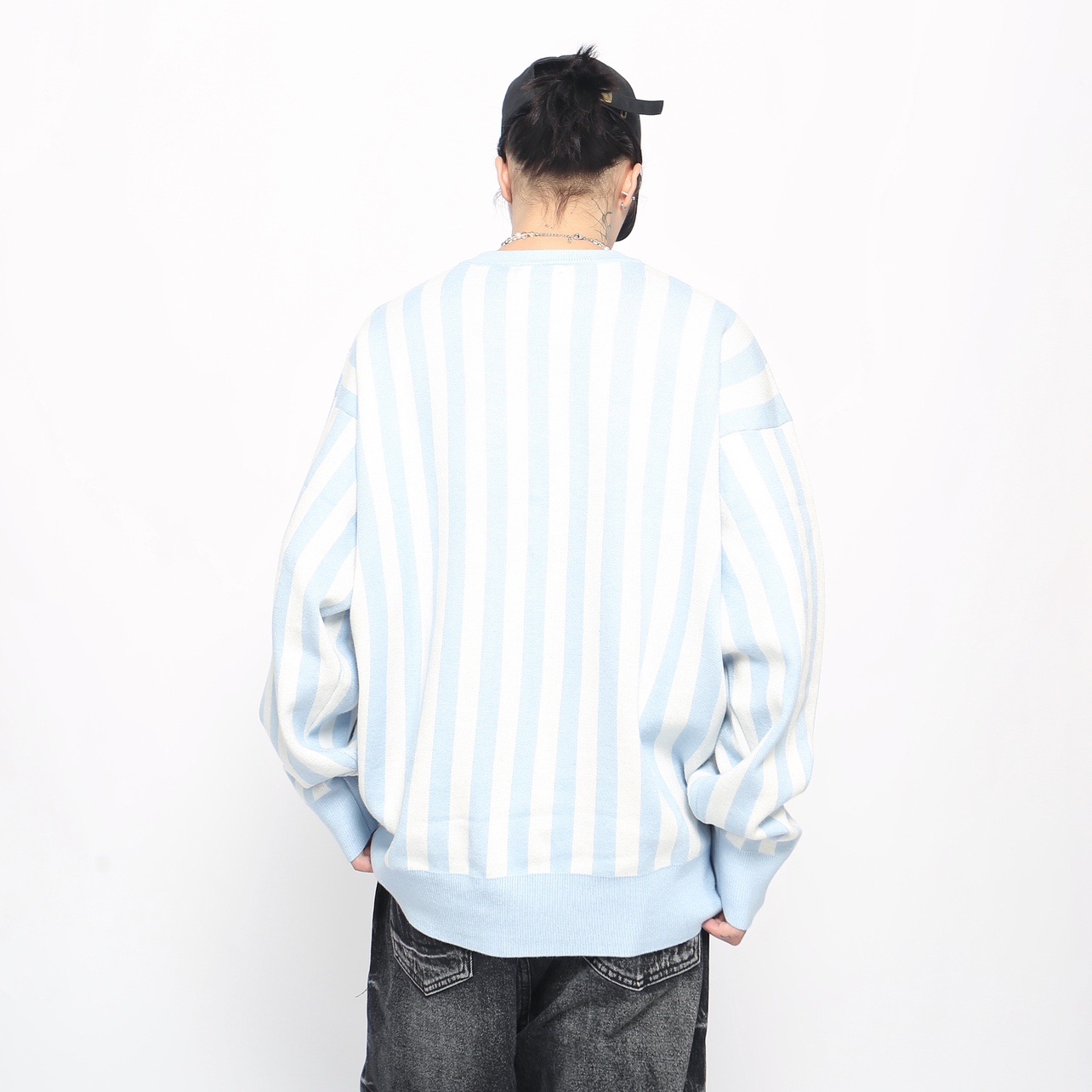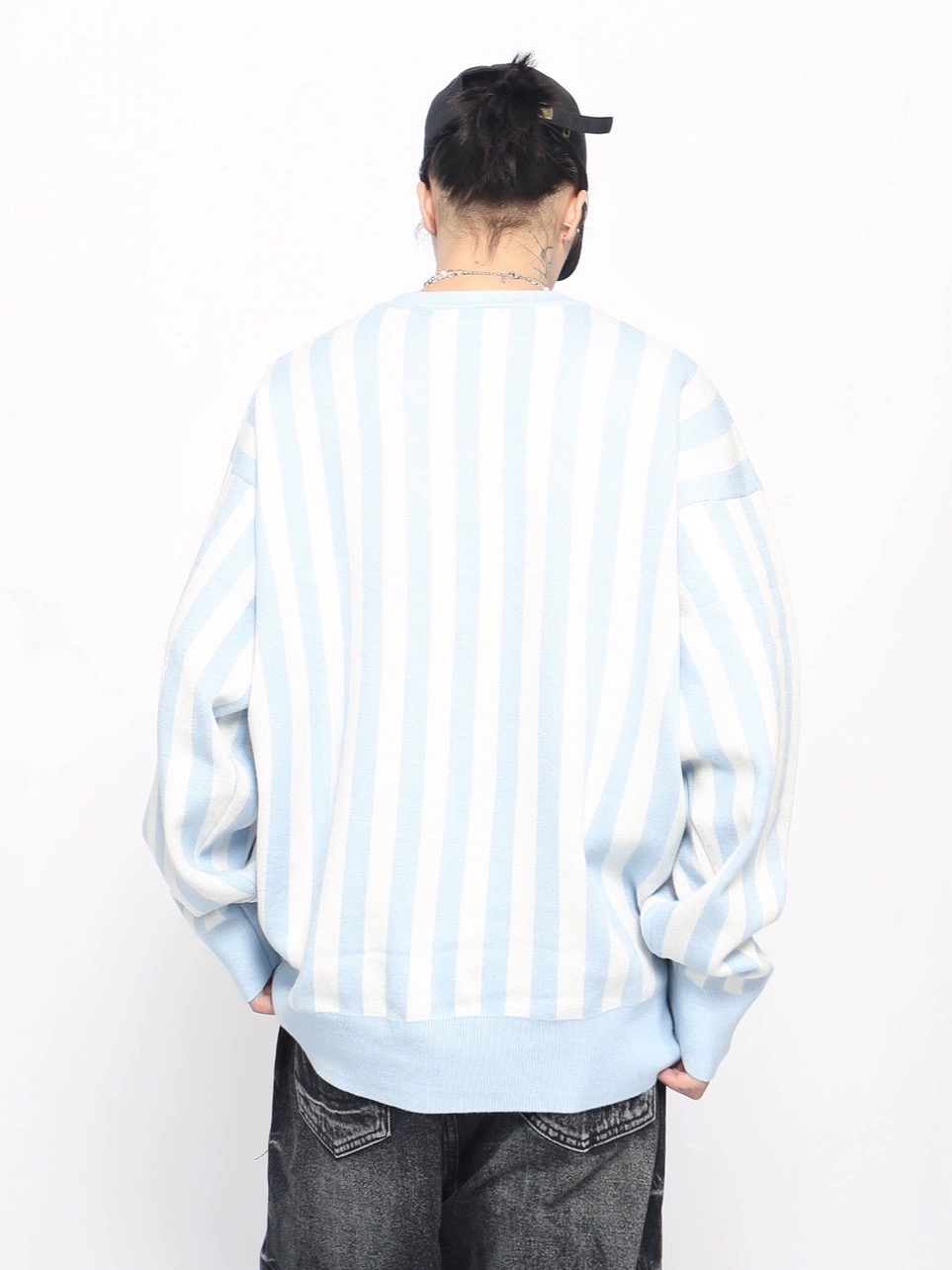 Badge Print Stripe V-Neck Knit Sweater WN10889