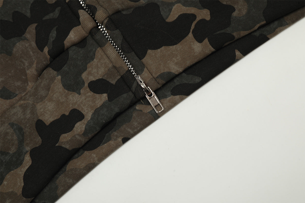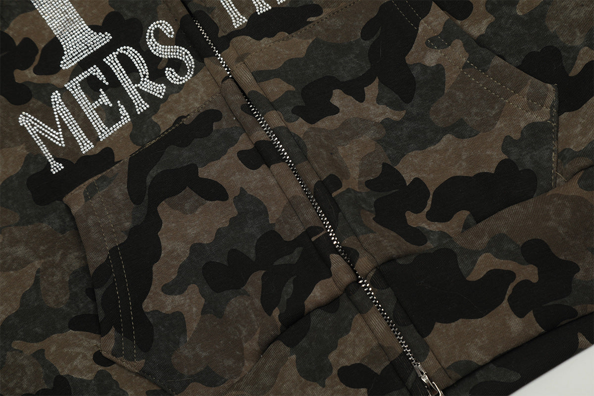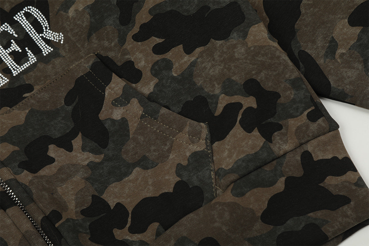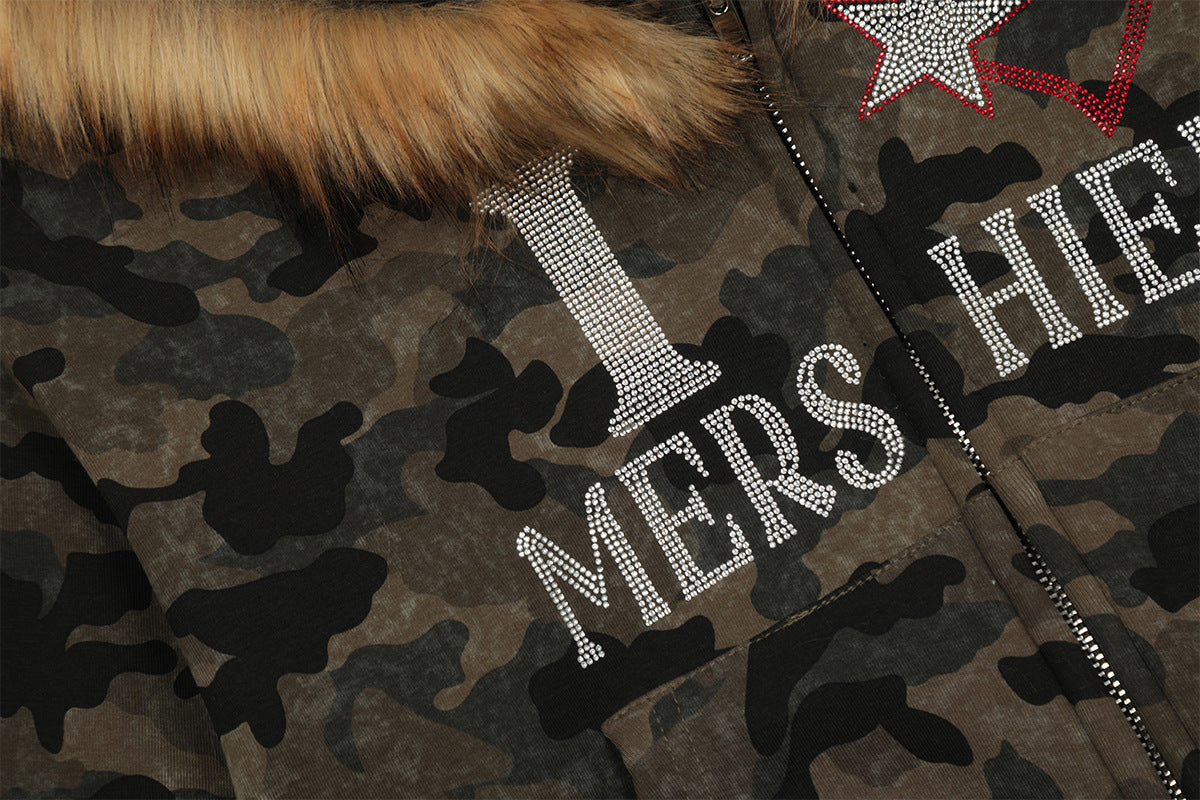 Camouflage Rhinestone Fur Collar Sherpa-Lining Zipper Hoodie WN11368