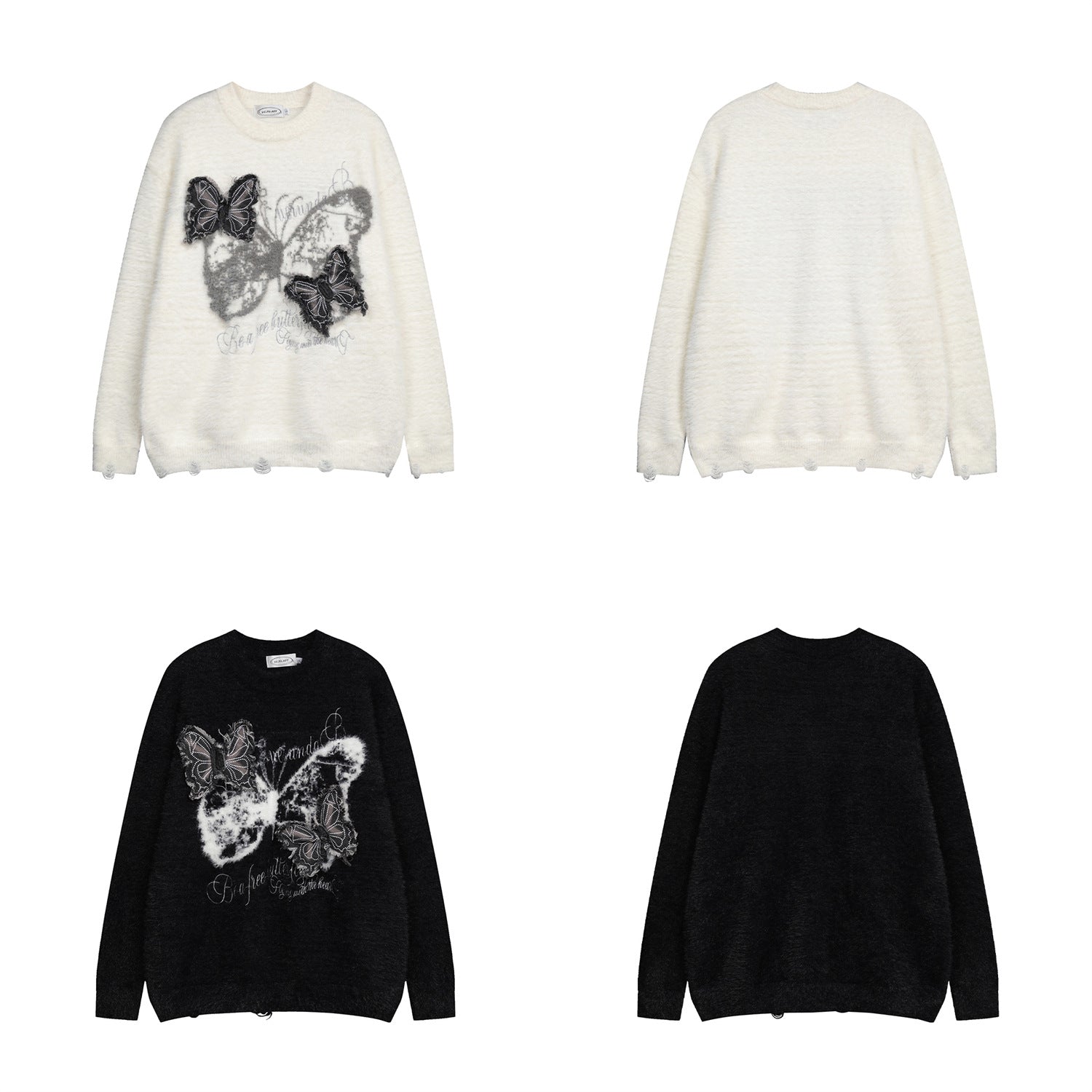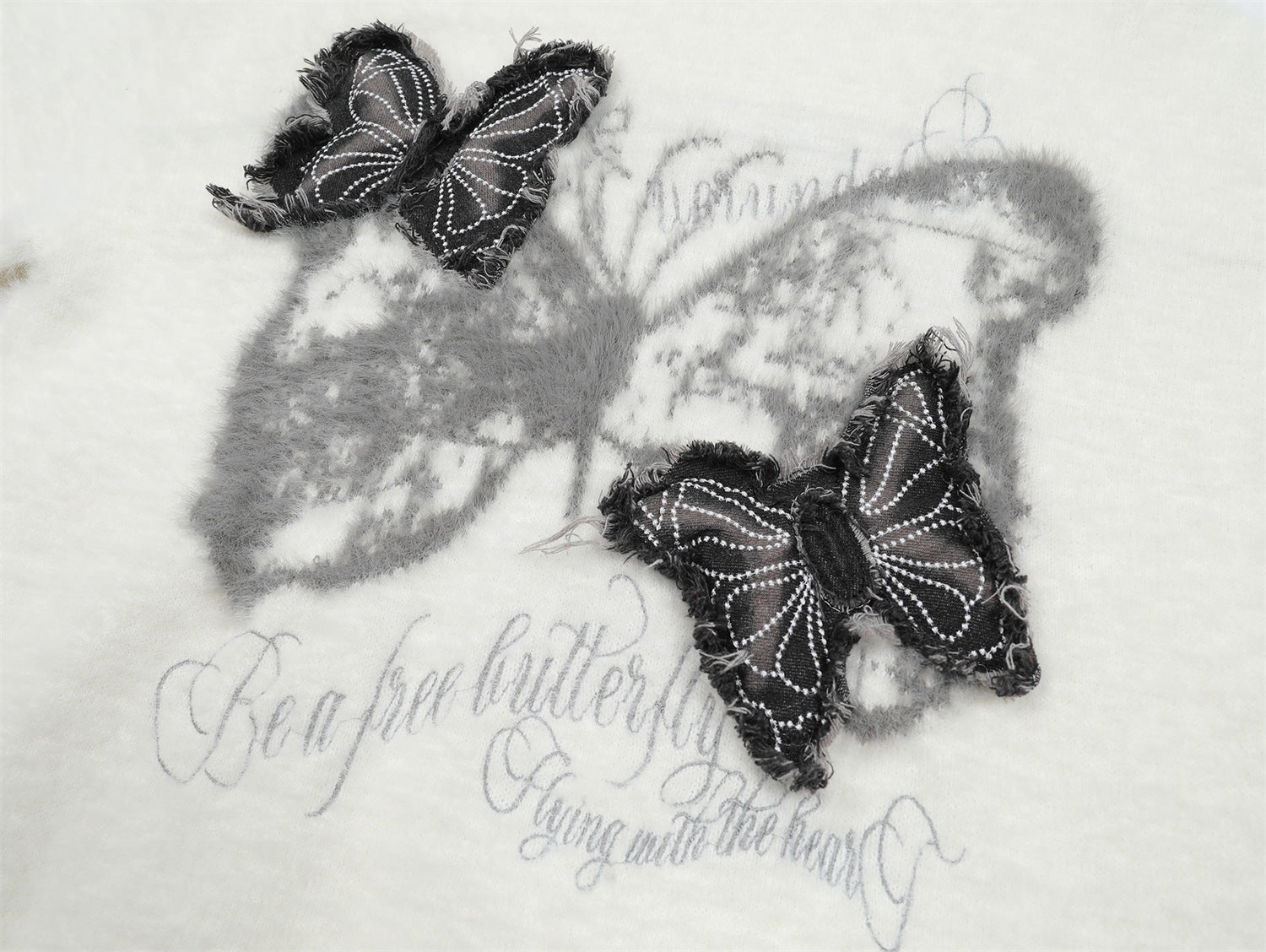 Butterfly Patchwork Embroidery Knit Sweater WN11539