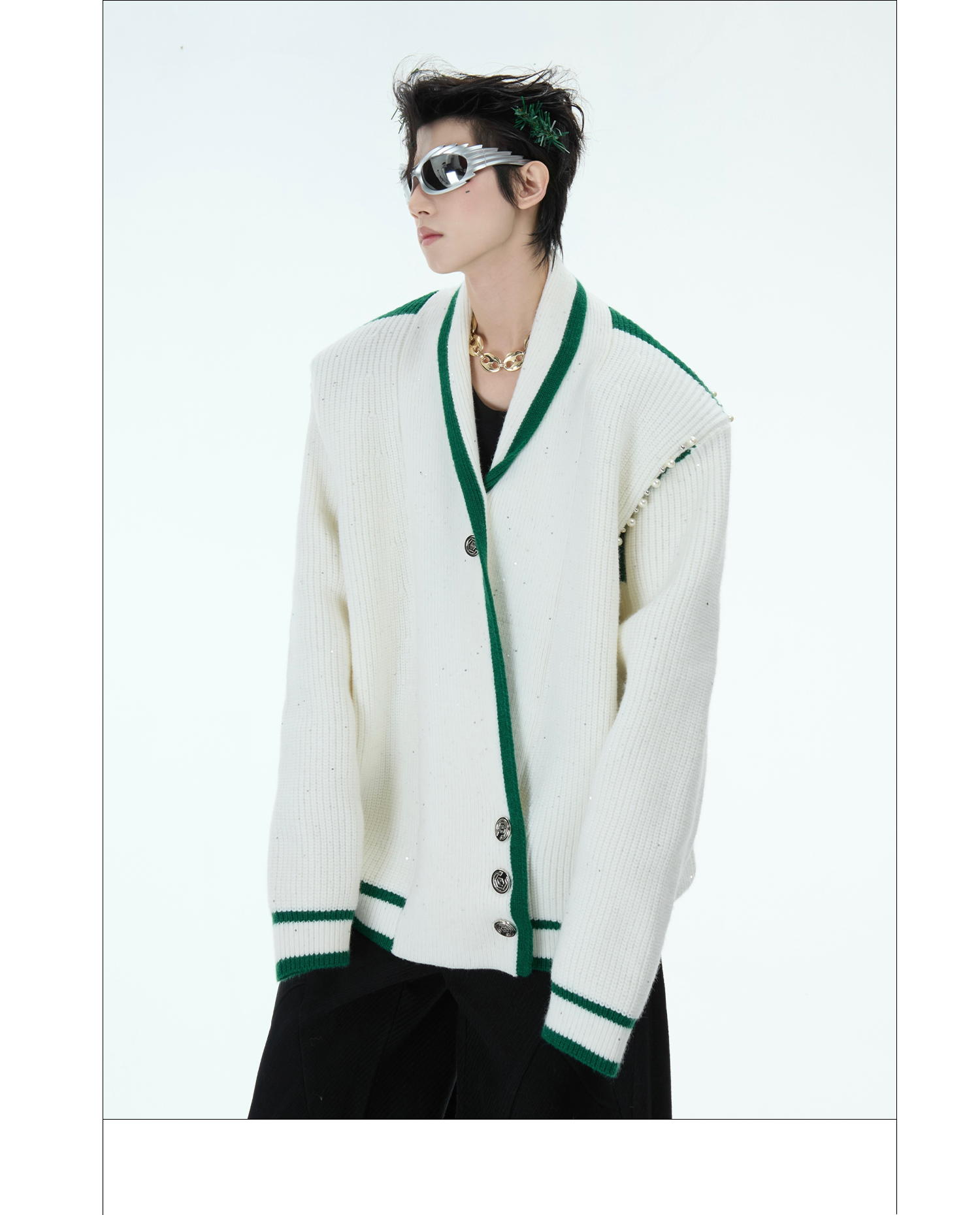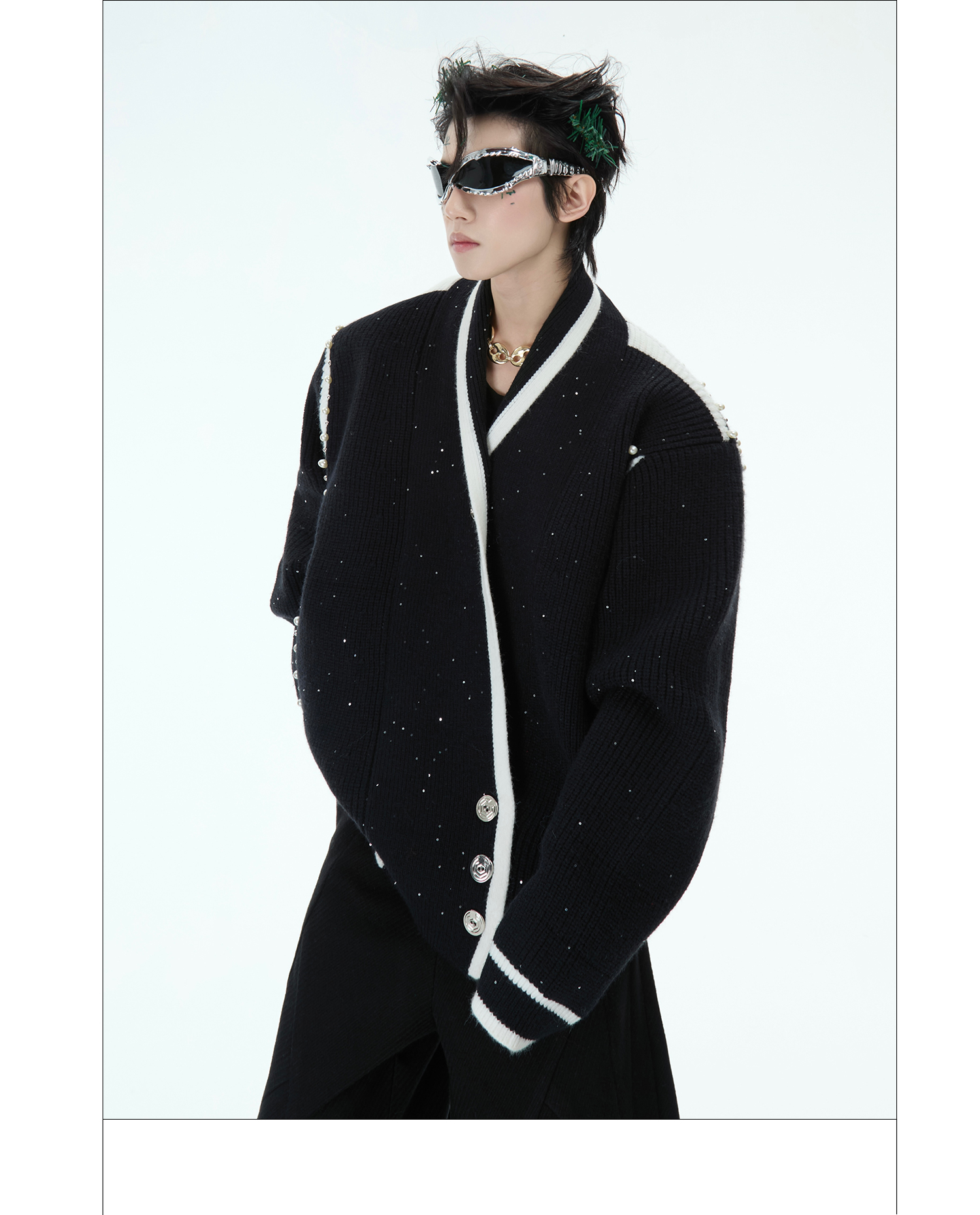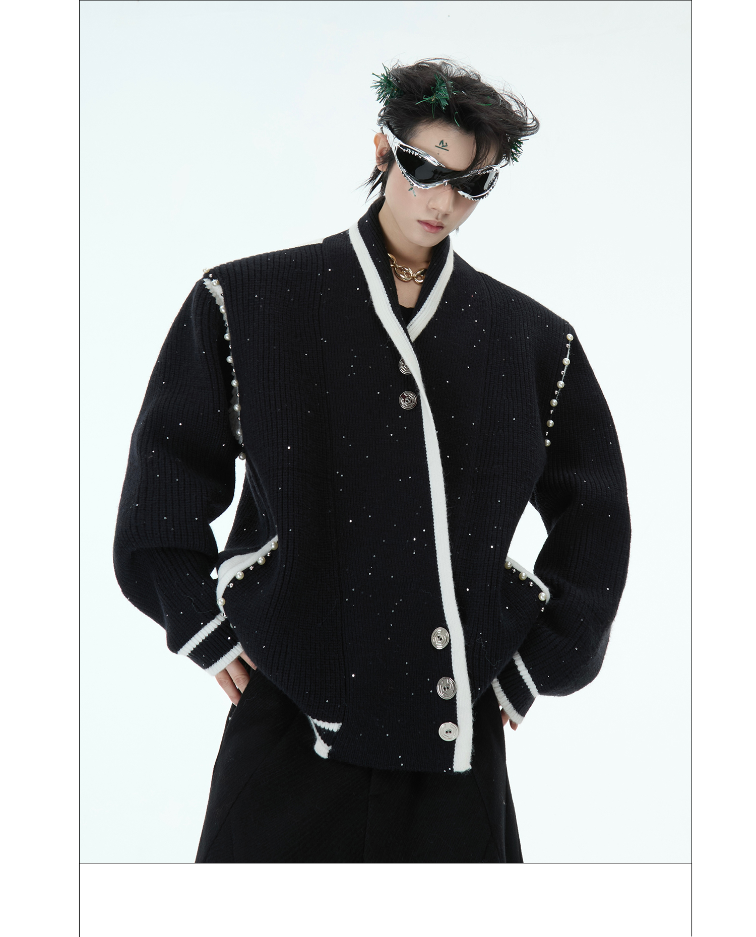 Asymmetric Glitter Deconstructed Knit Cardigan WN11615