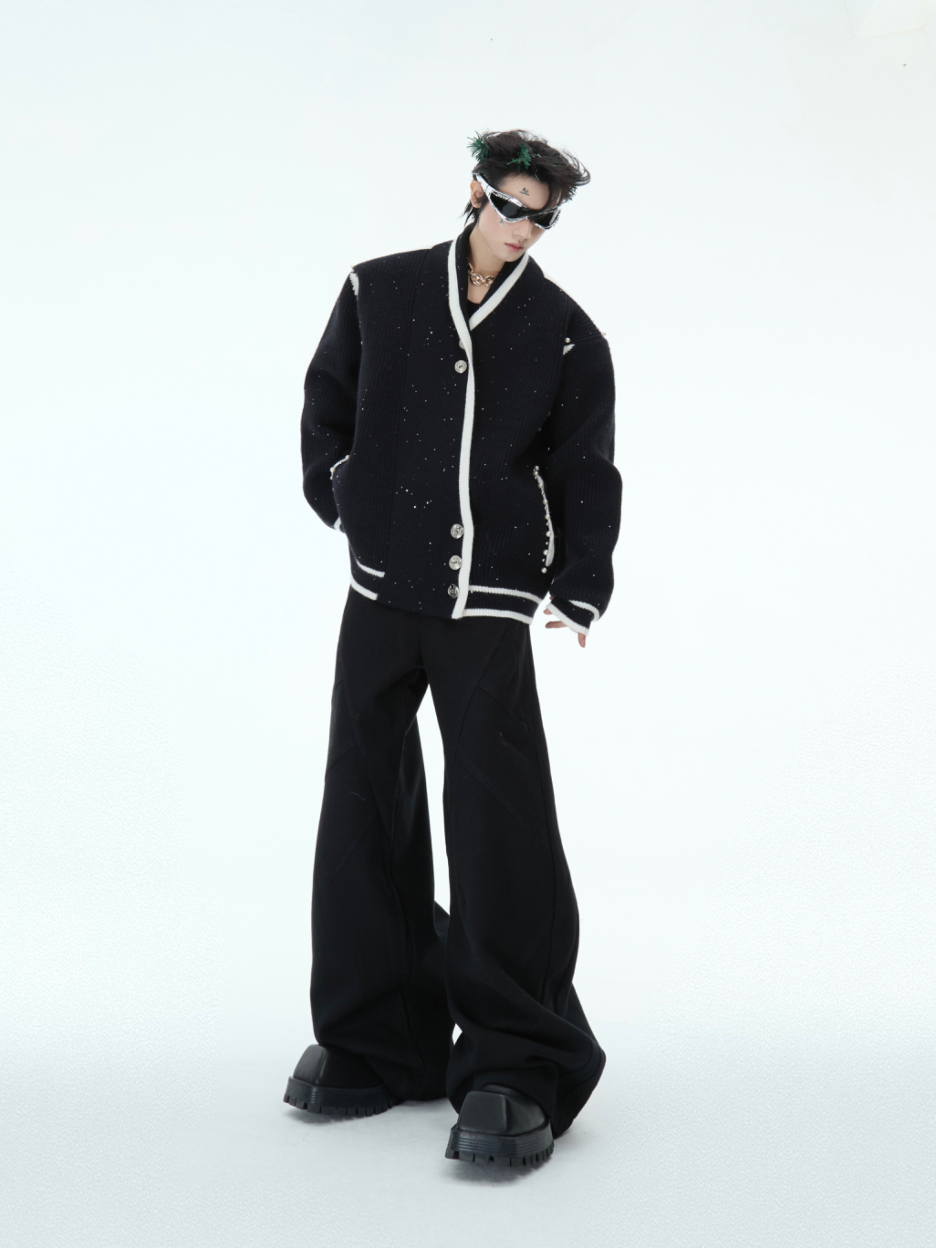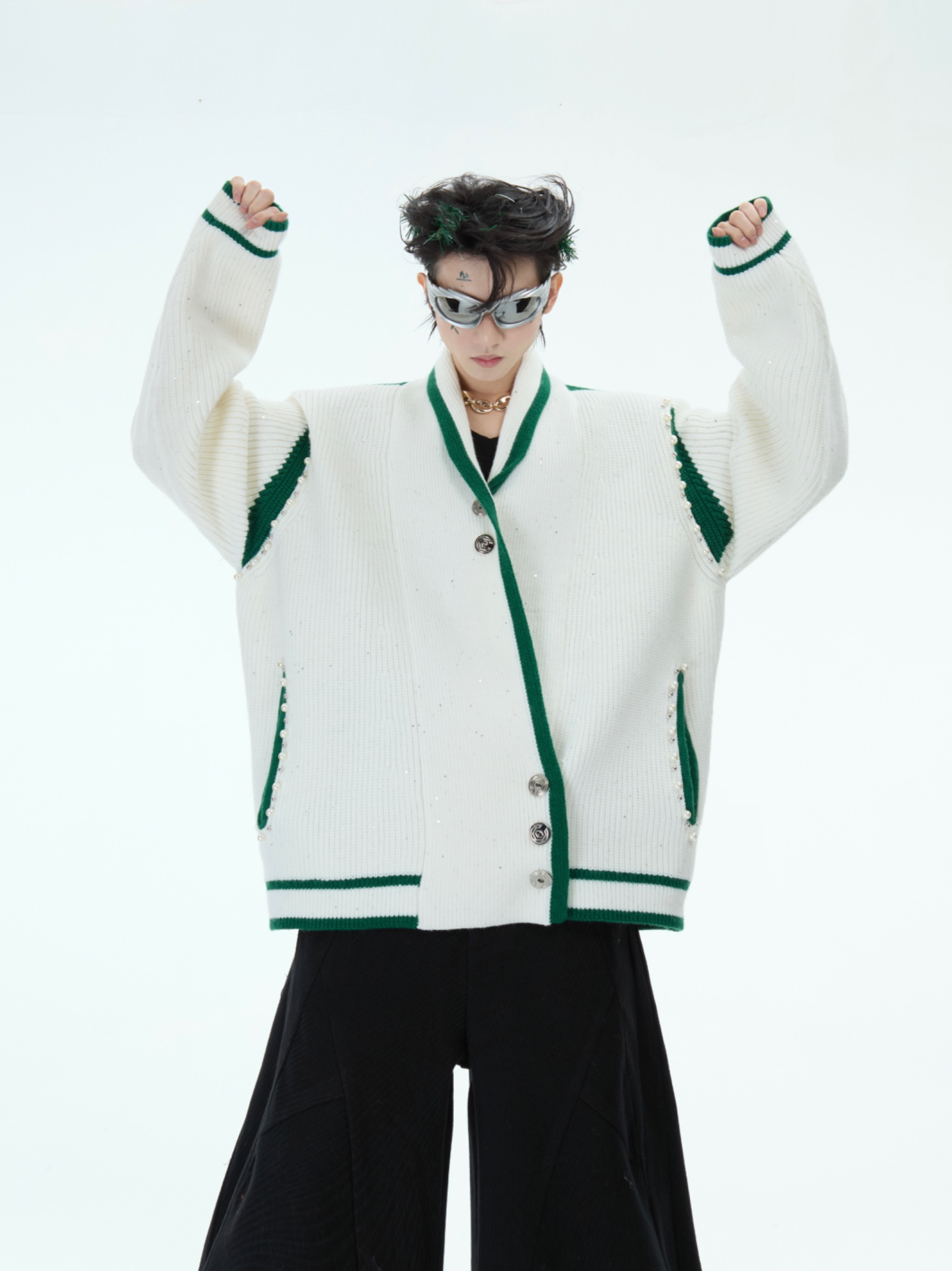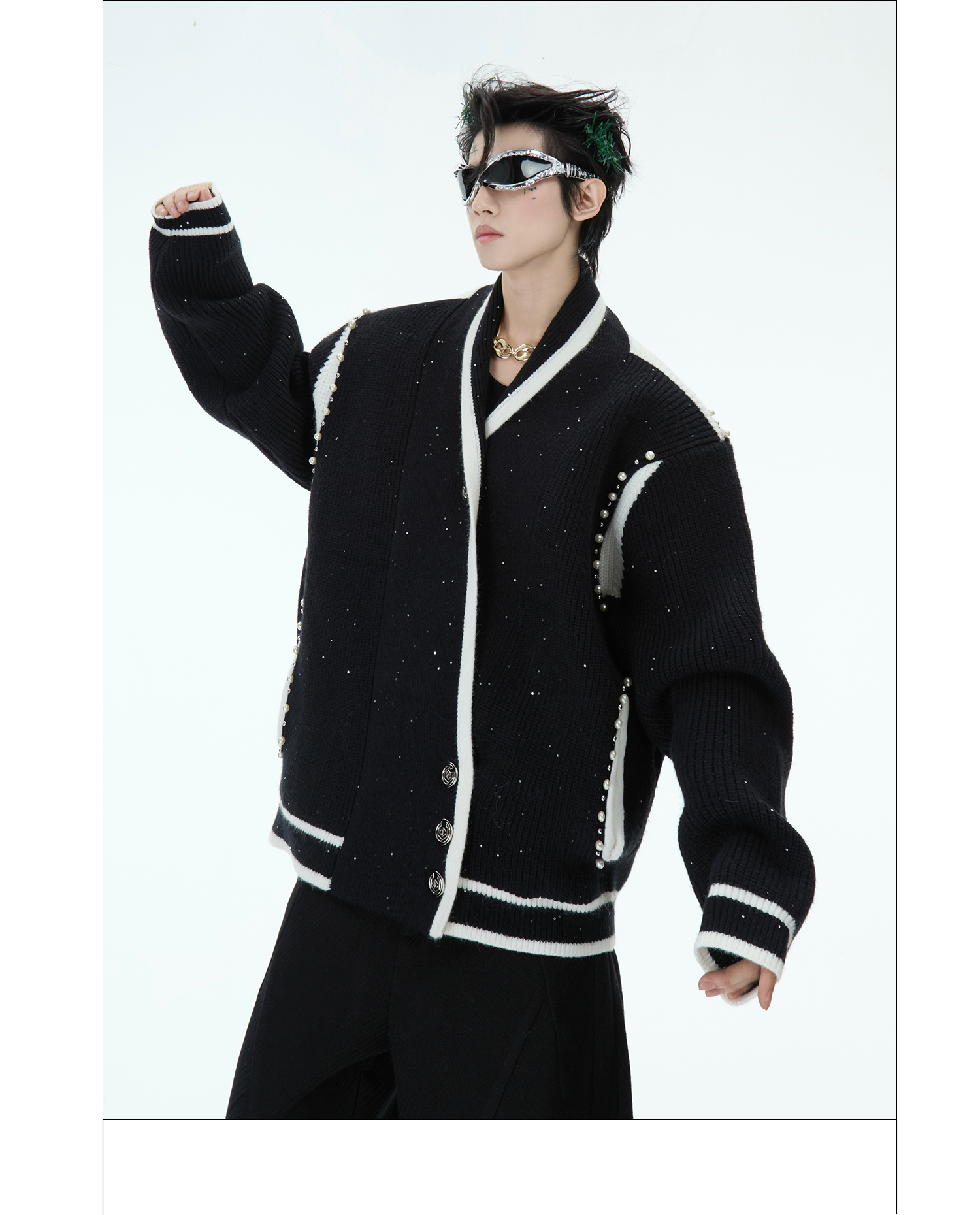 Asymmetric Glitter Deconstructed Knit Cardigan WN11615