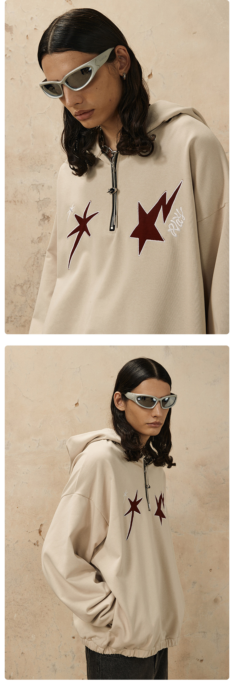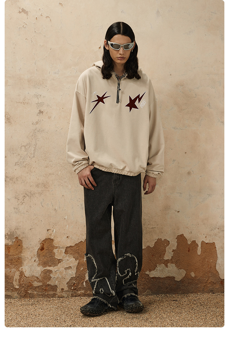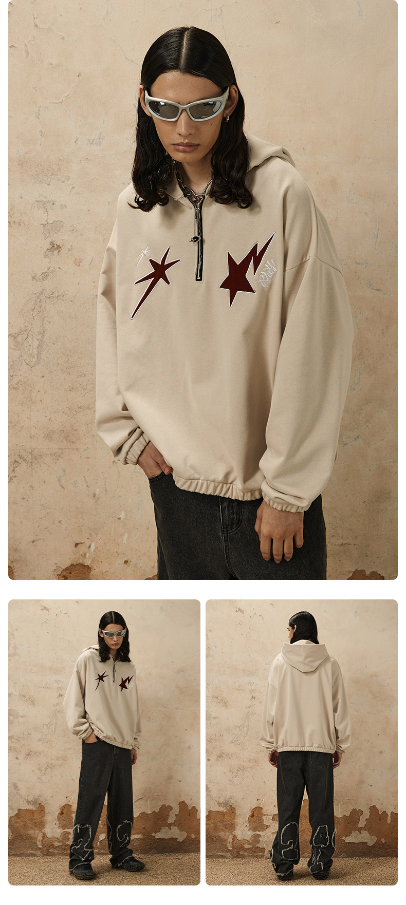 Half Zipper Patchwork Embroidery Hoodie WN12434