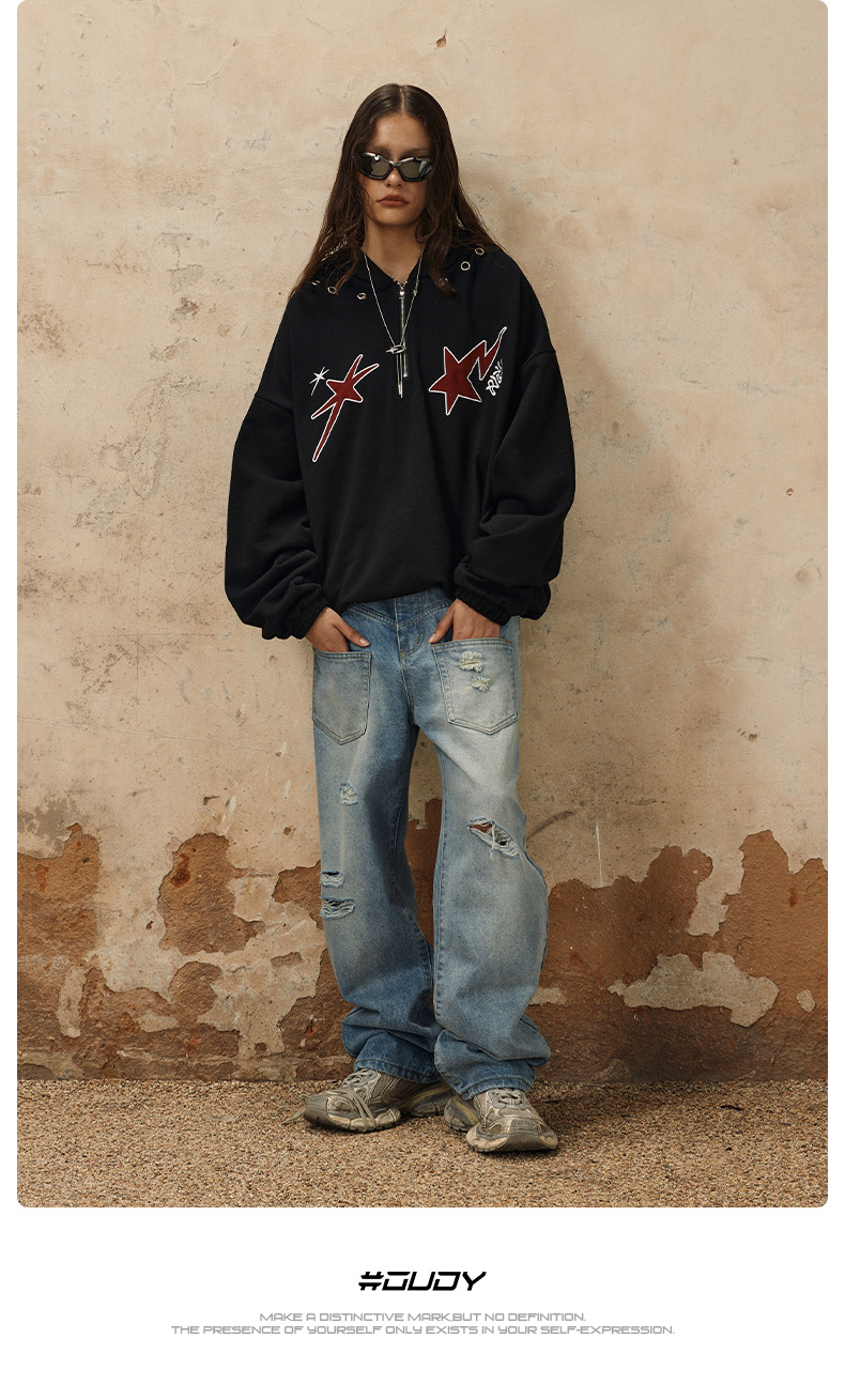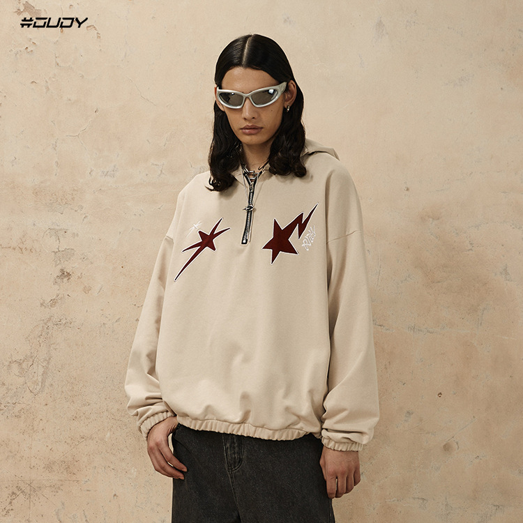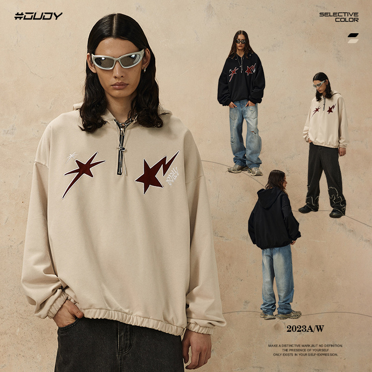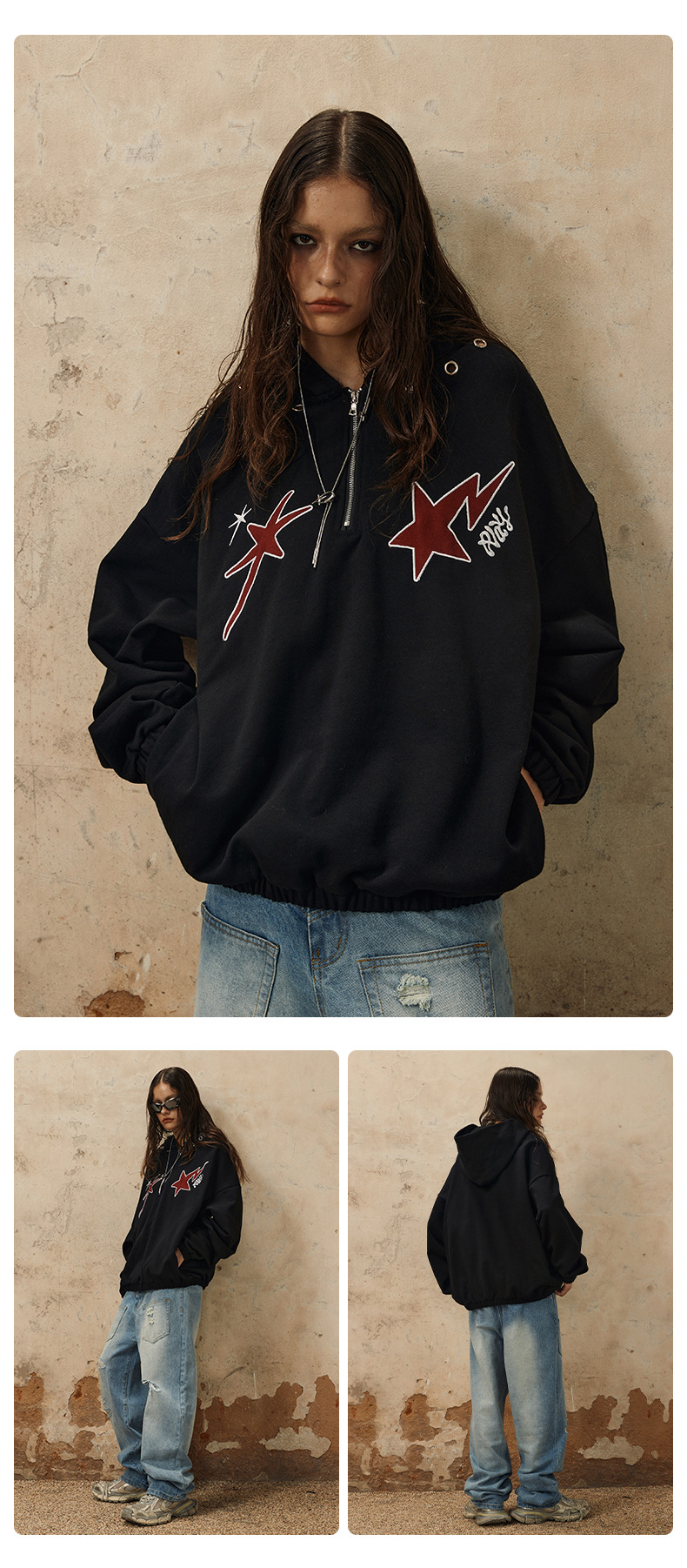 Half Zipper Patchwork Embroidery Hoodie WN12434