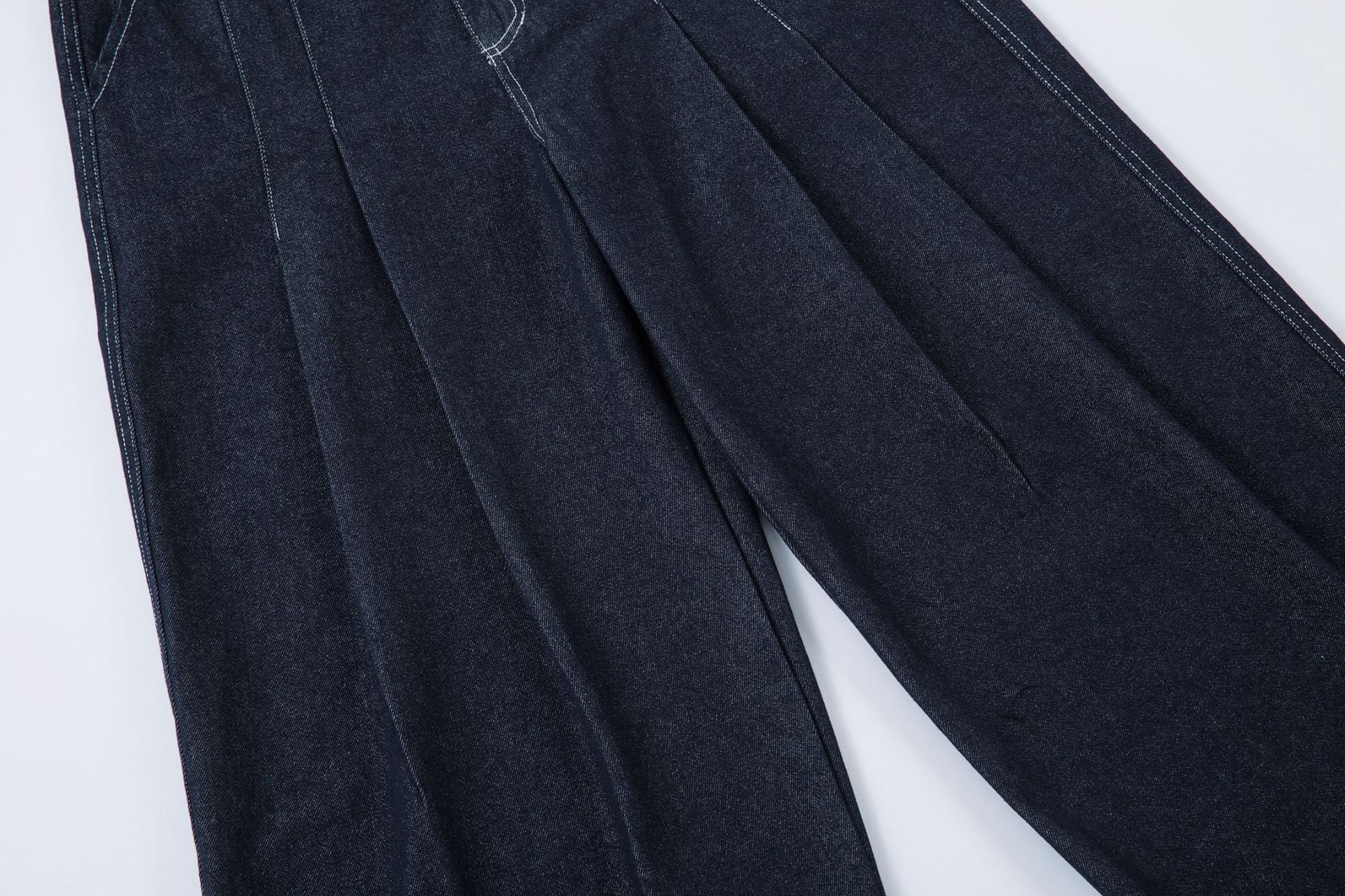 Washed Wide-Leg Tuck In Denim Jeans WN12732