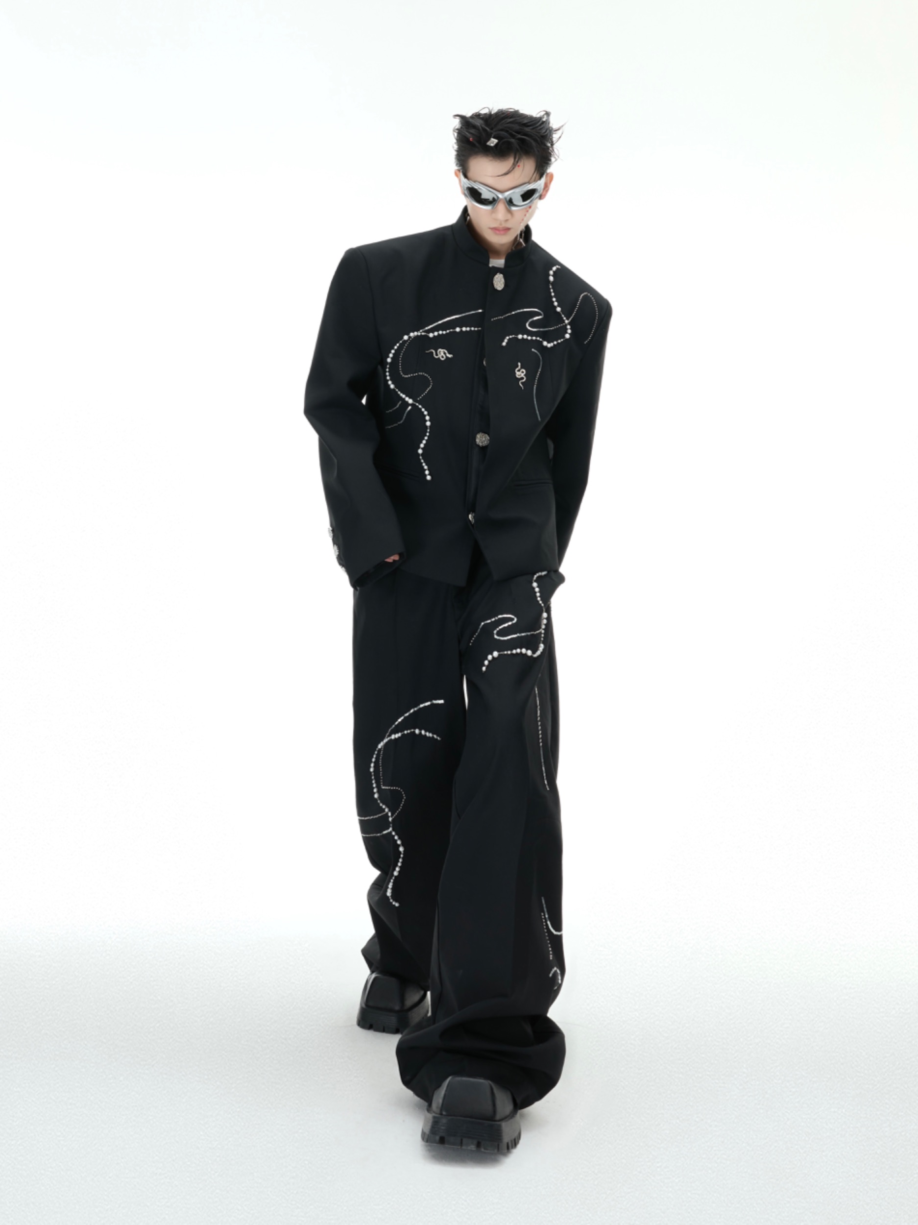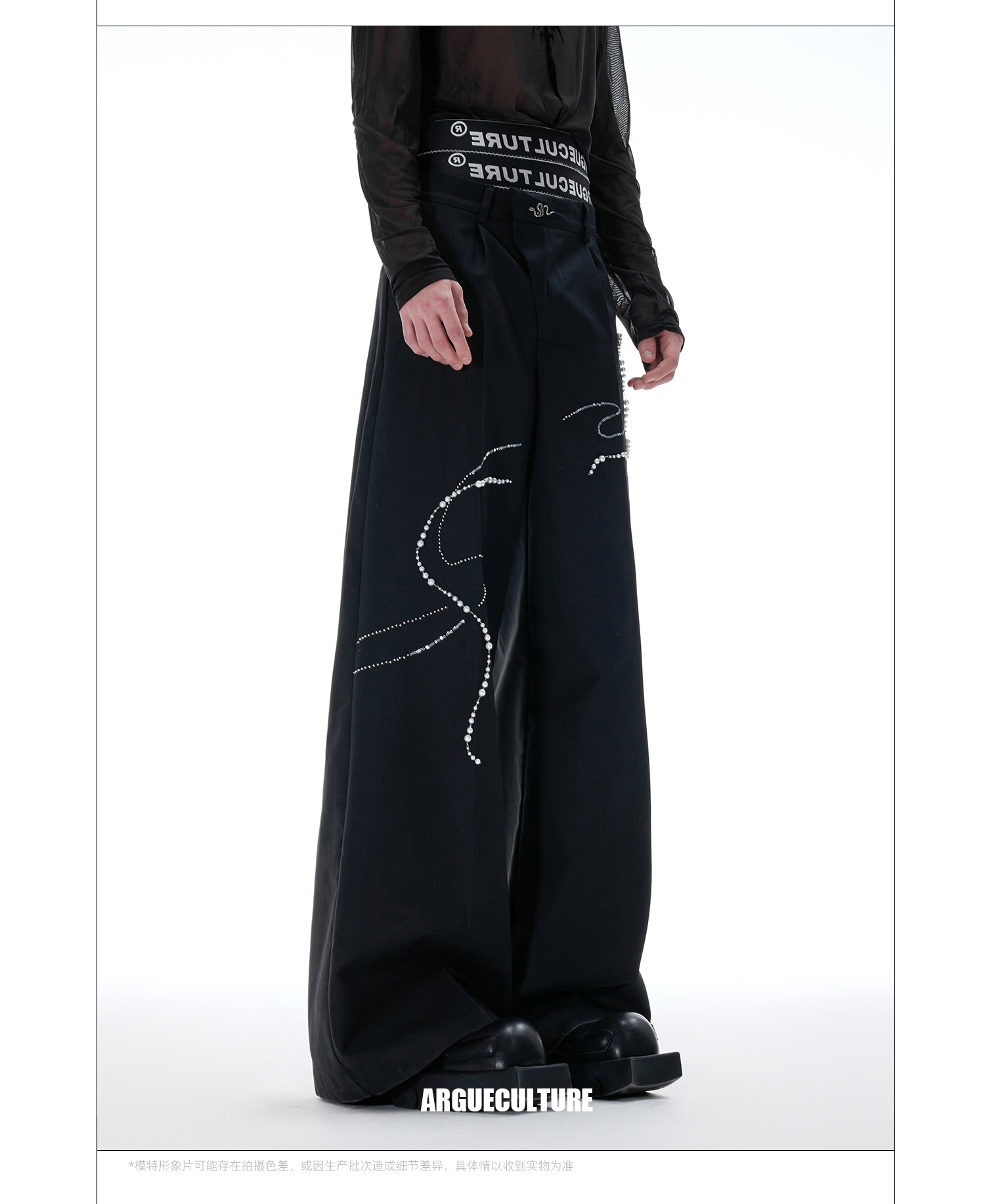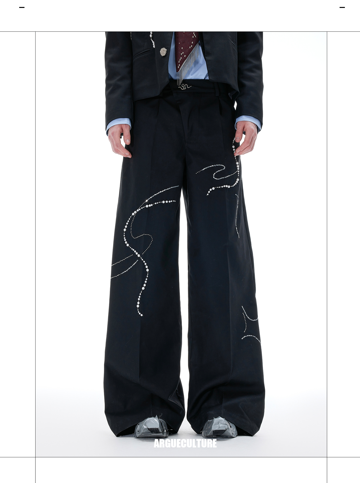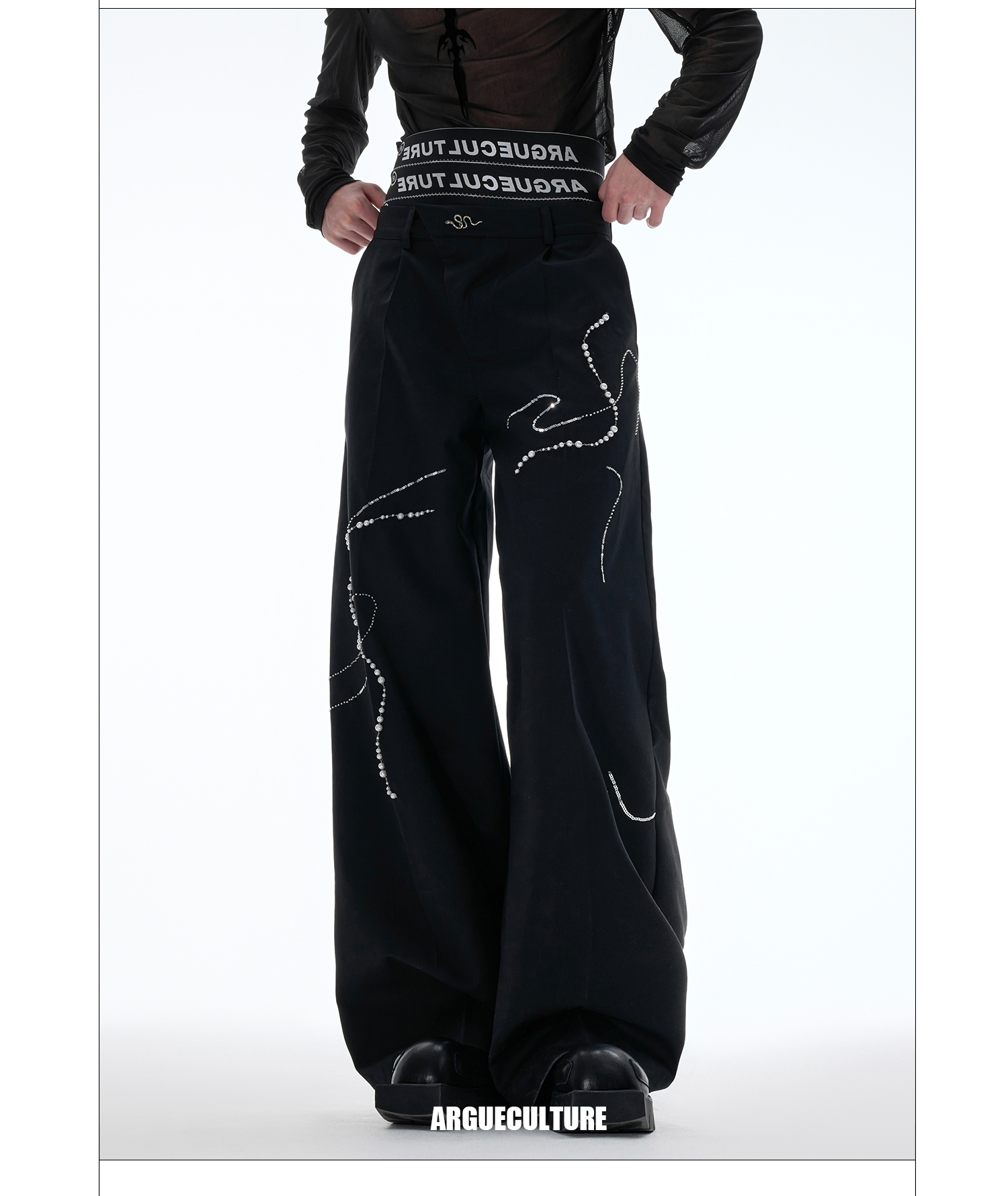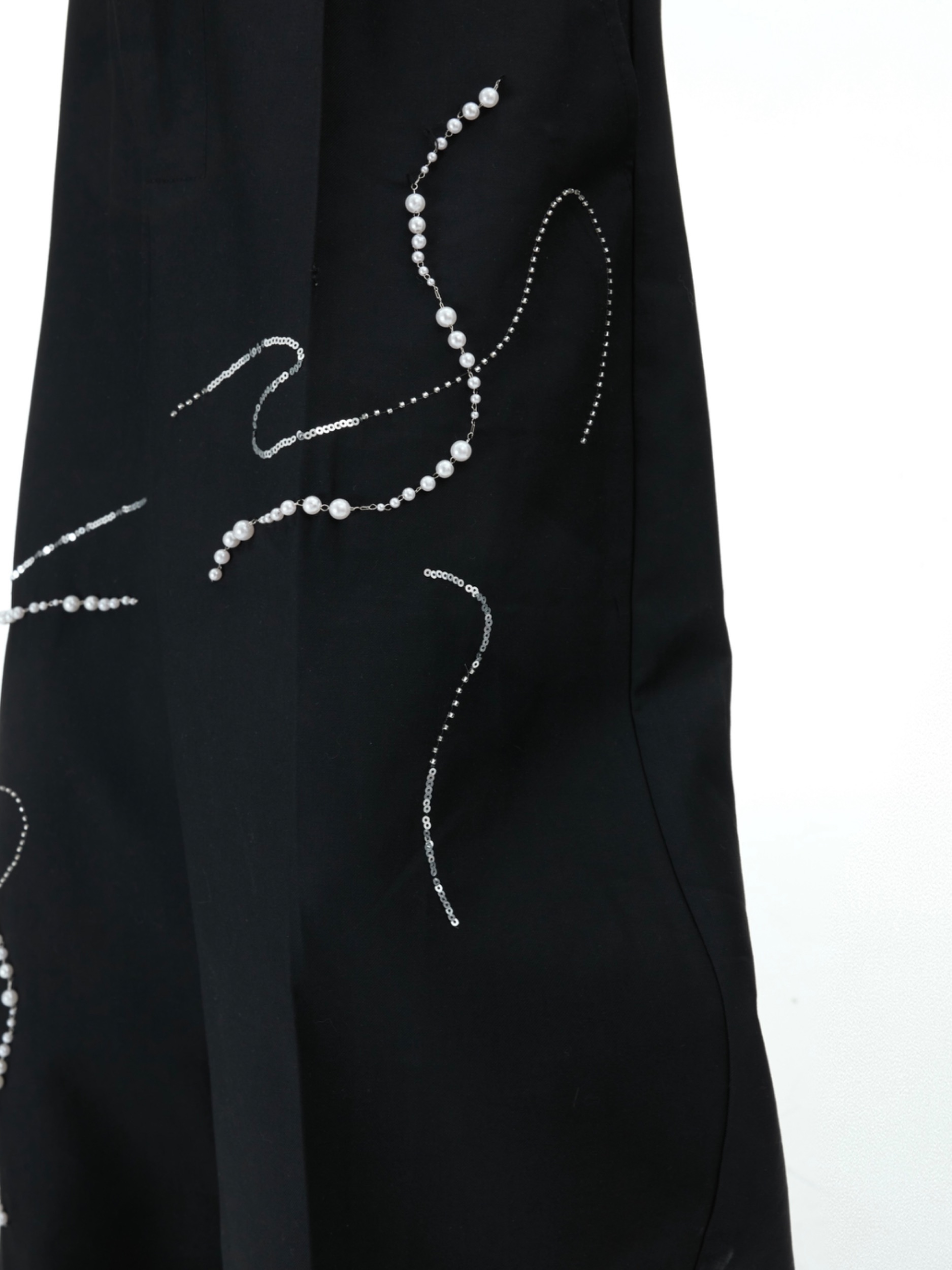 Pearl-Embellished Snake-Year Wide-Leg Trousers WN12903