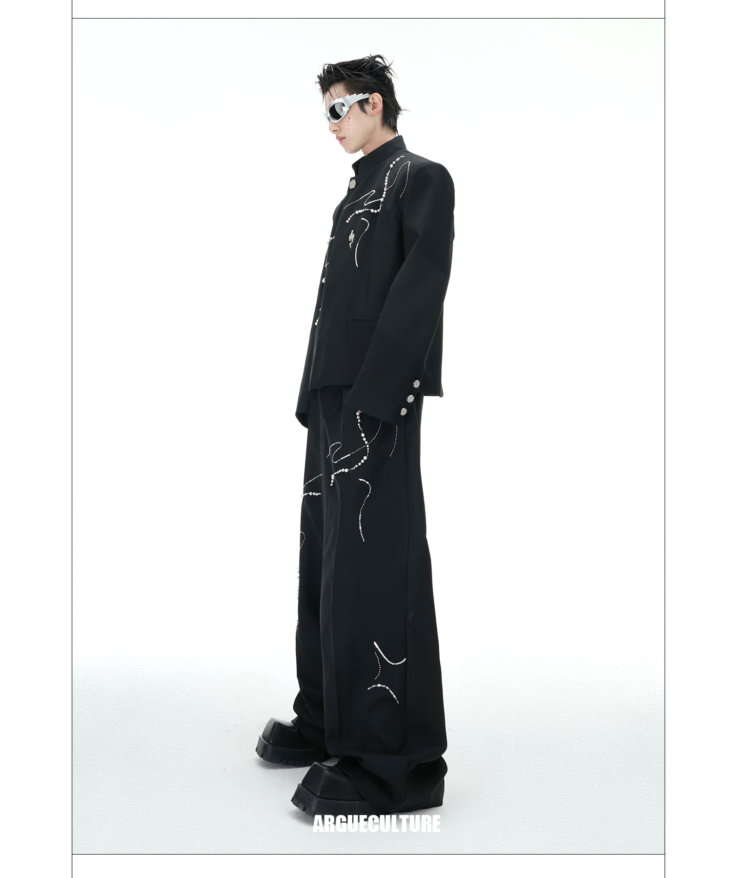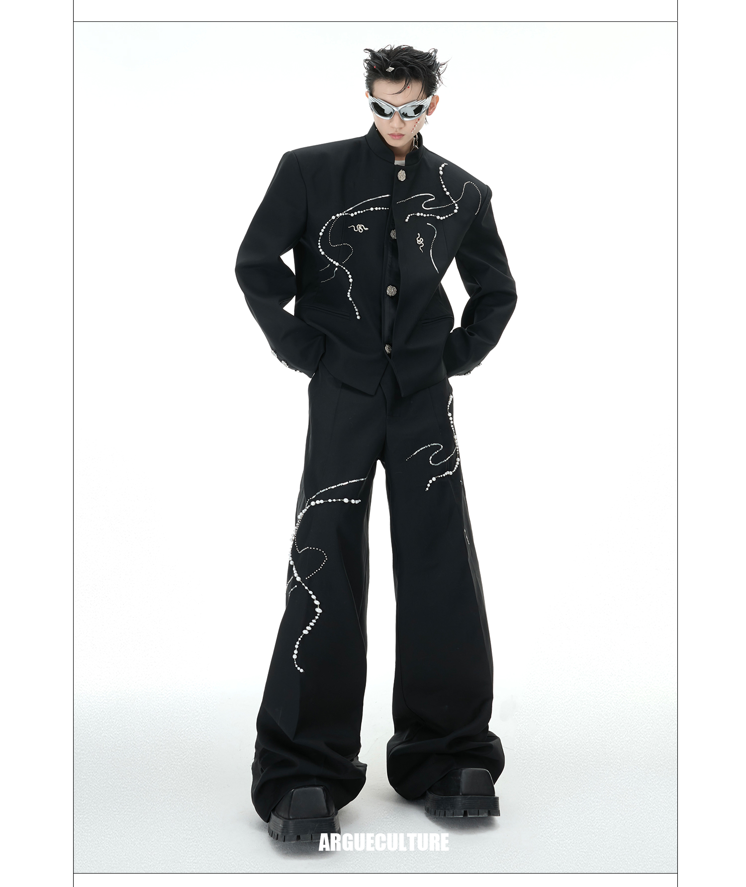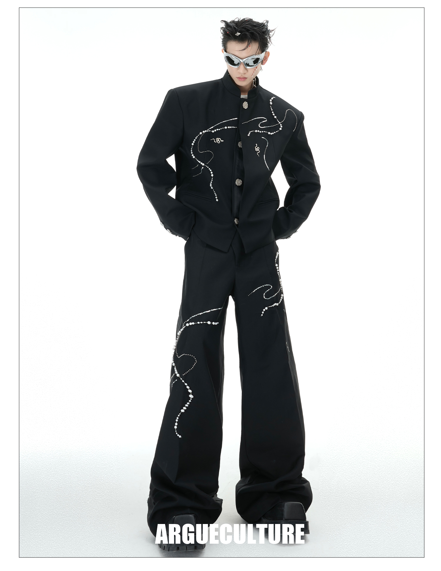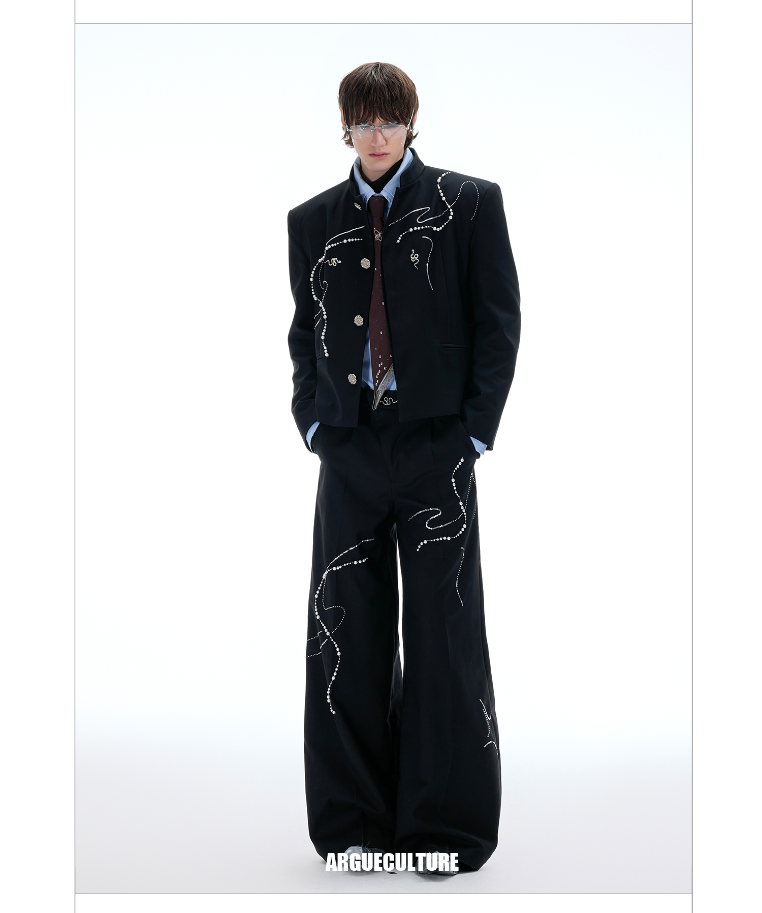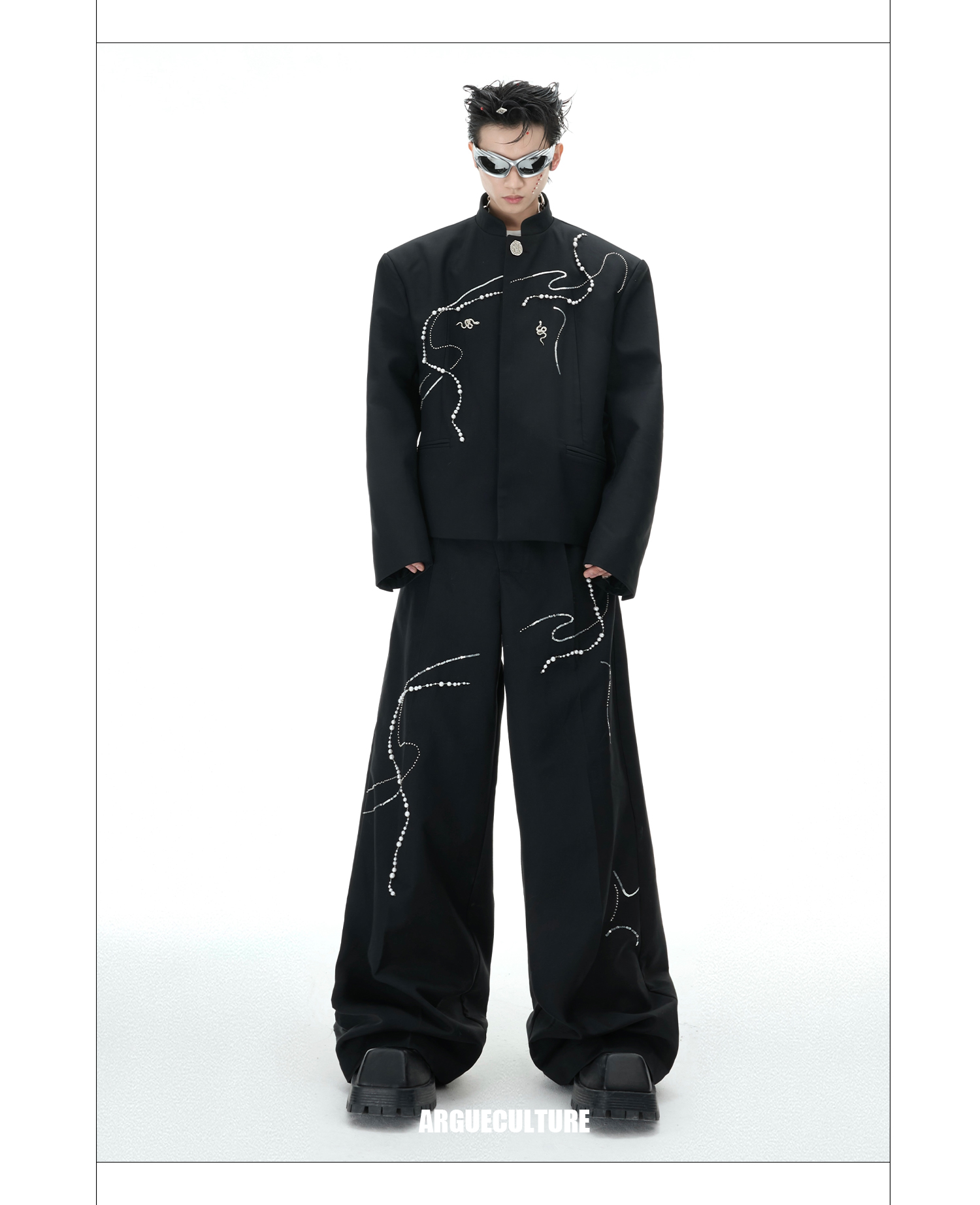 Pearl-Embellished Snake-Year Wide-Leg Trousers WN12903