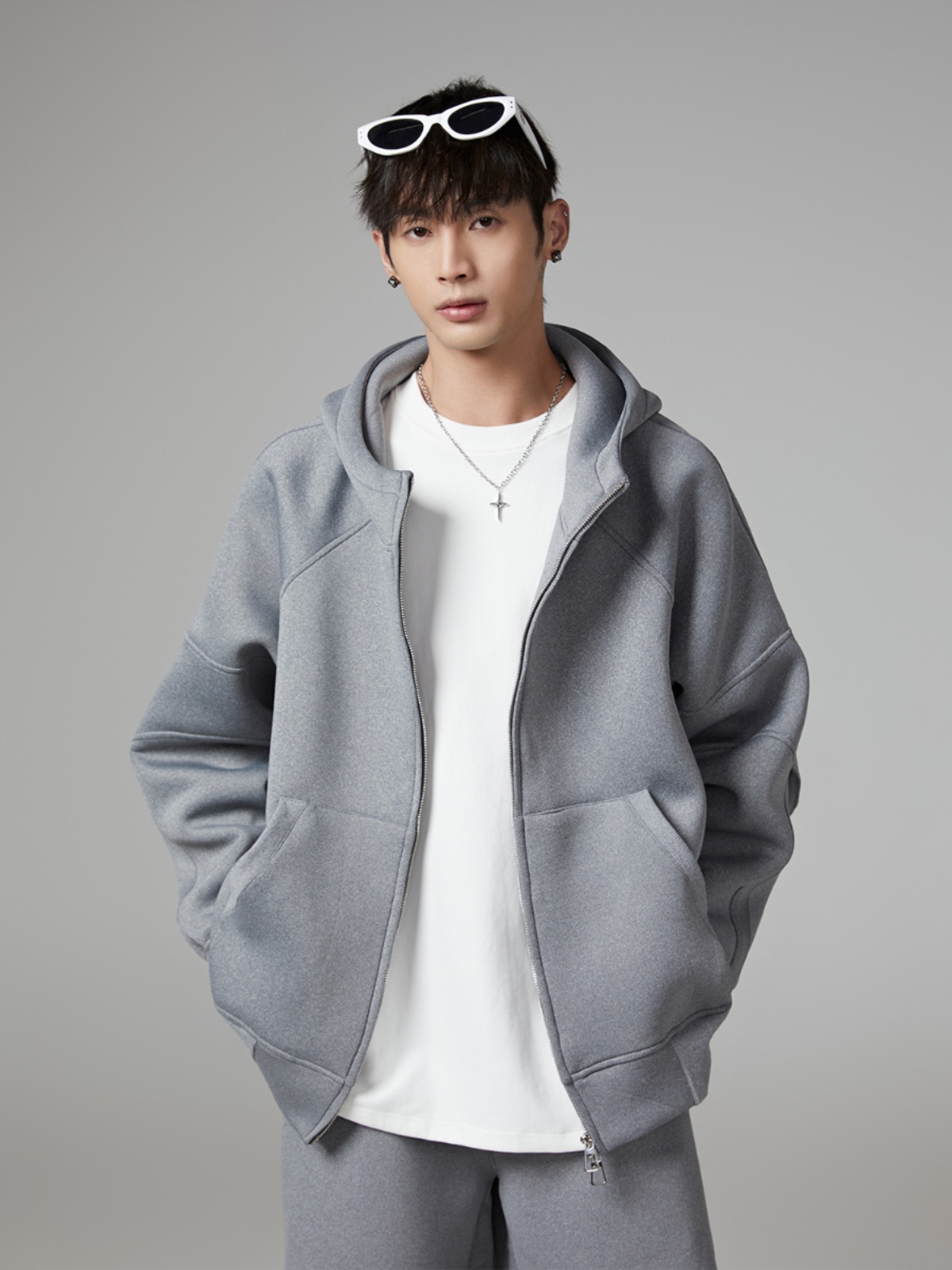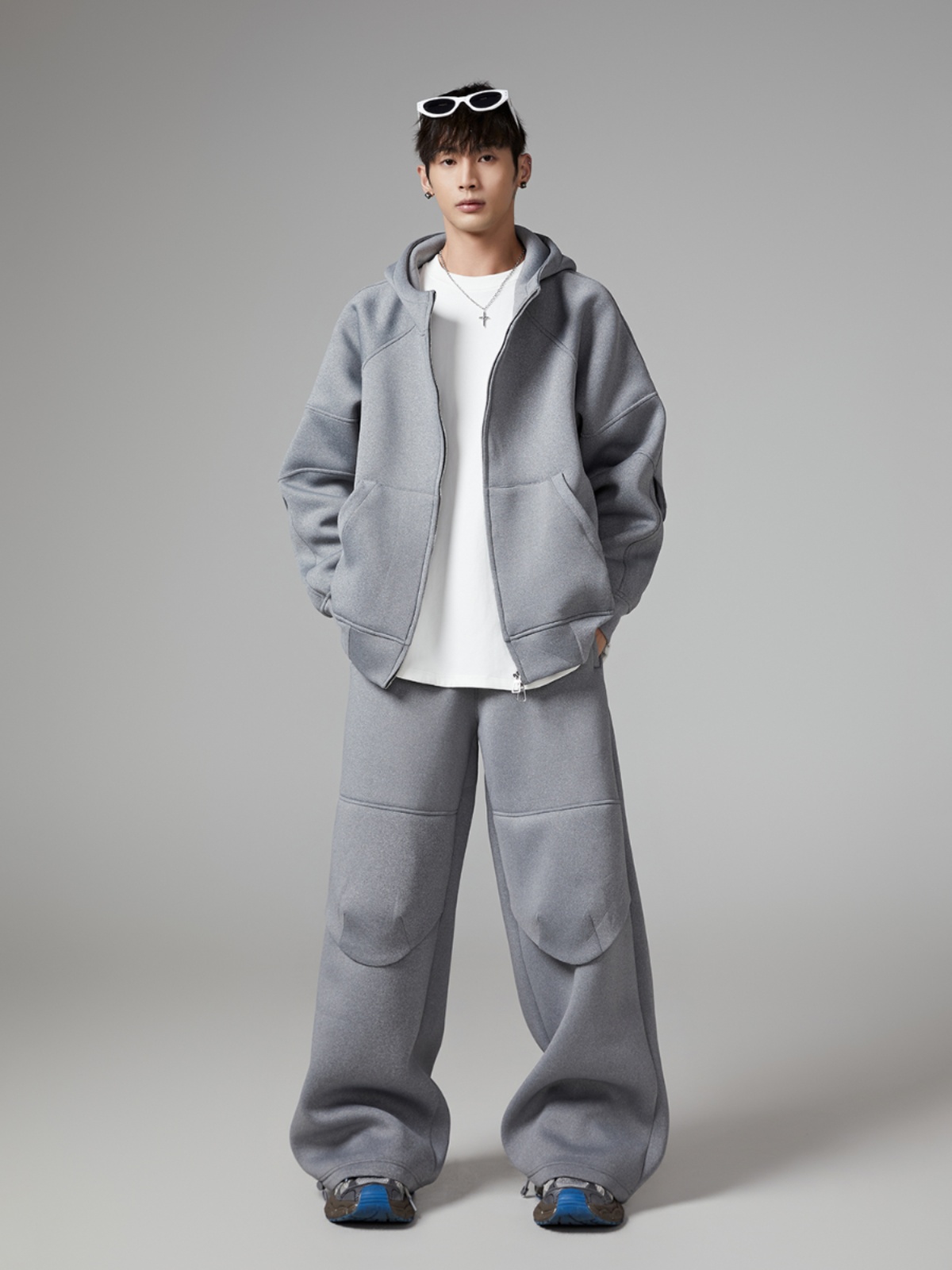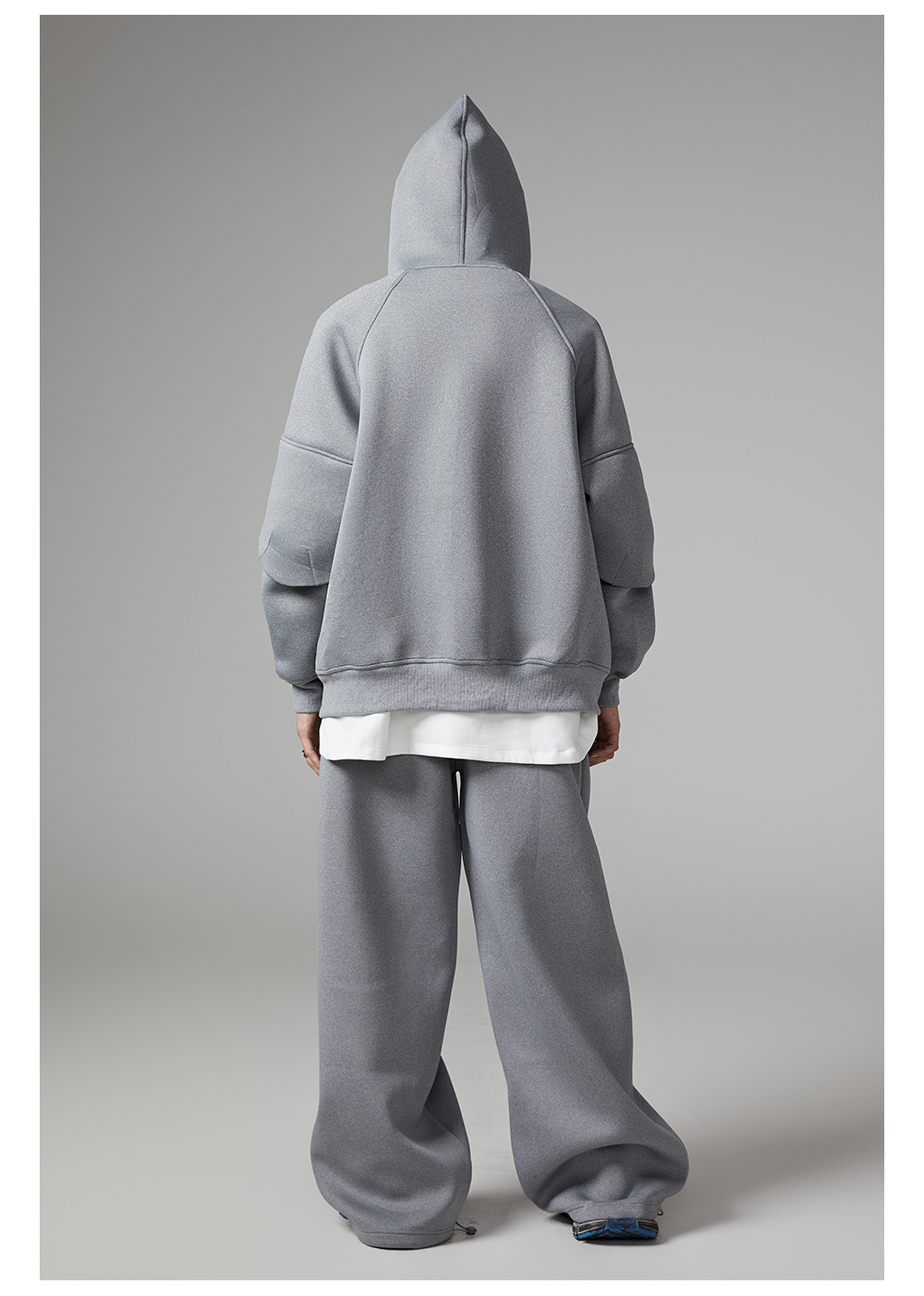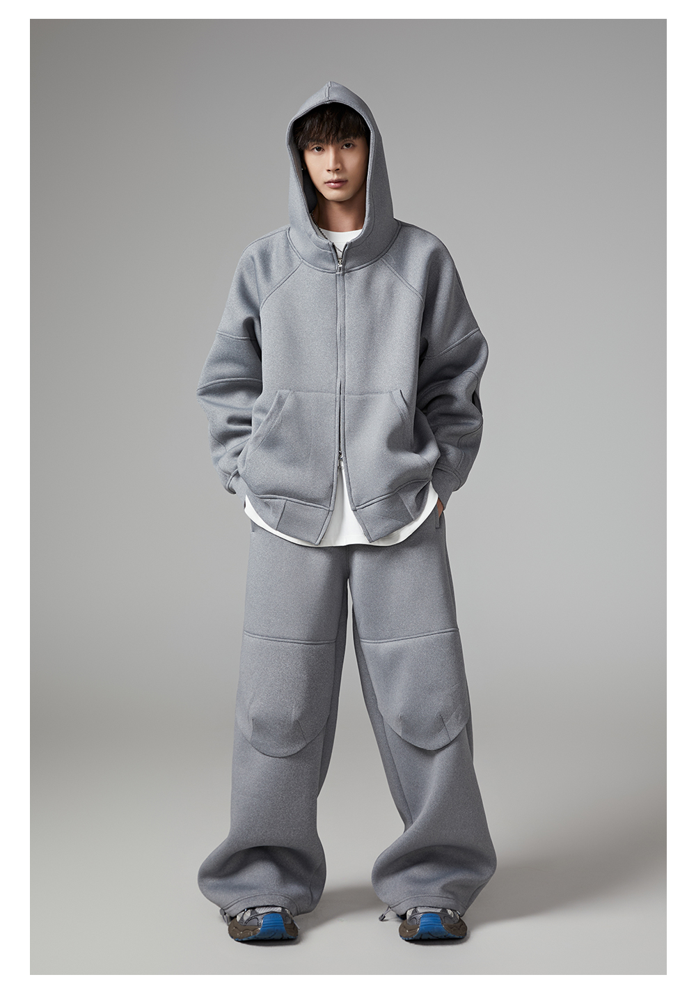 Thick Cotton Oversize Zipper Hoodie & Sweat Pants Setup WN13290