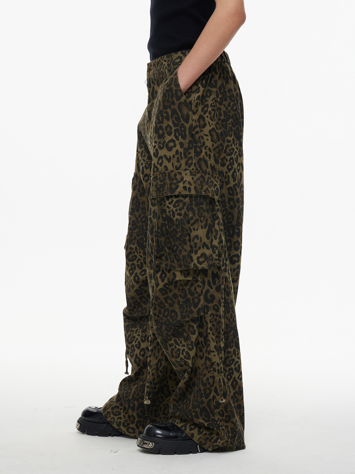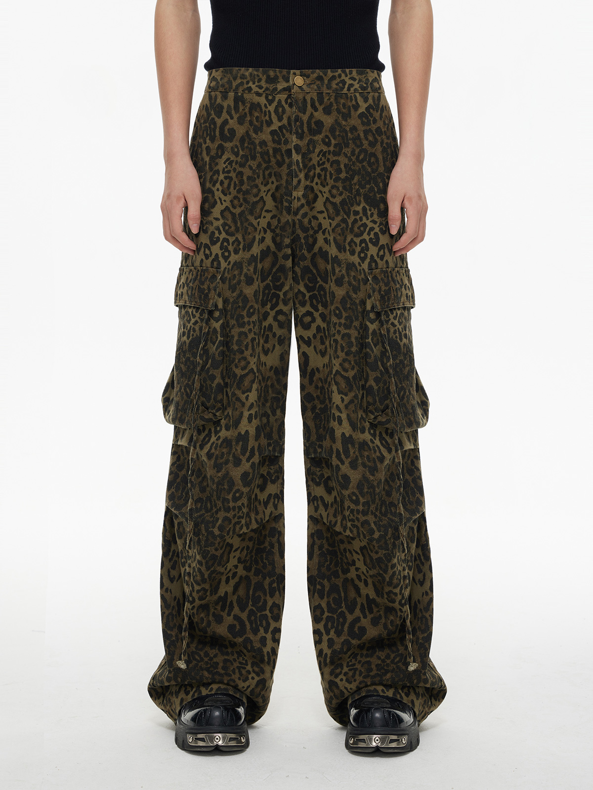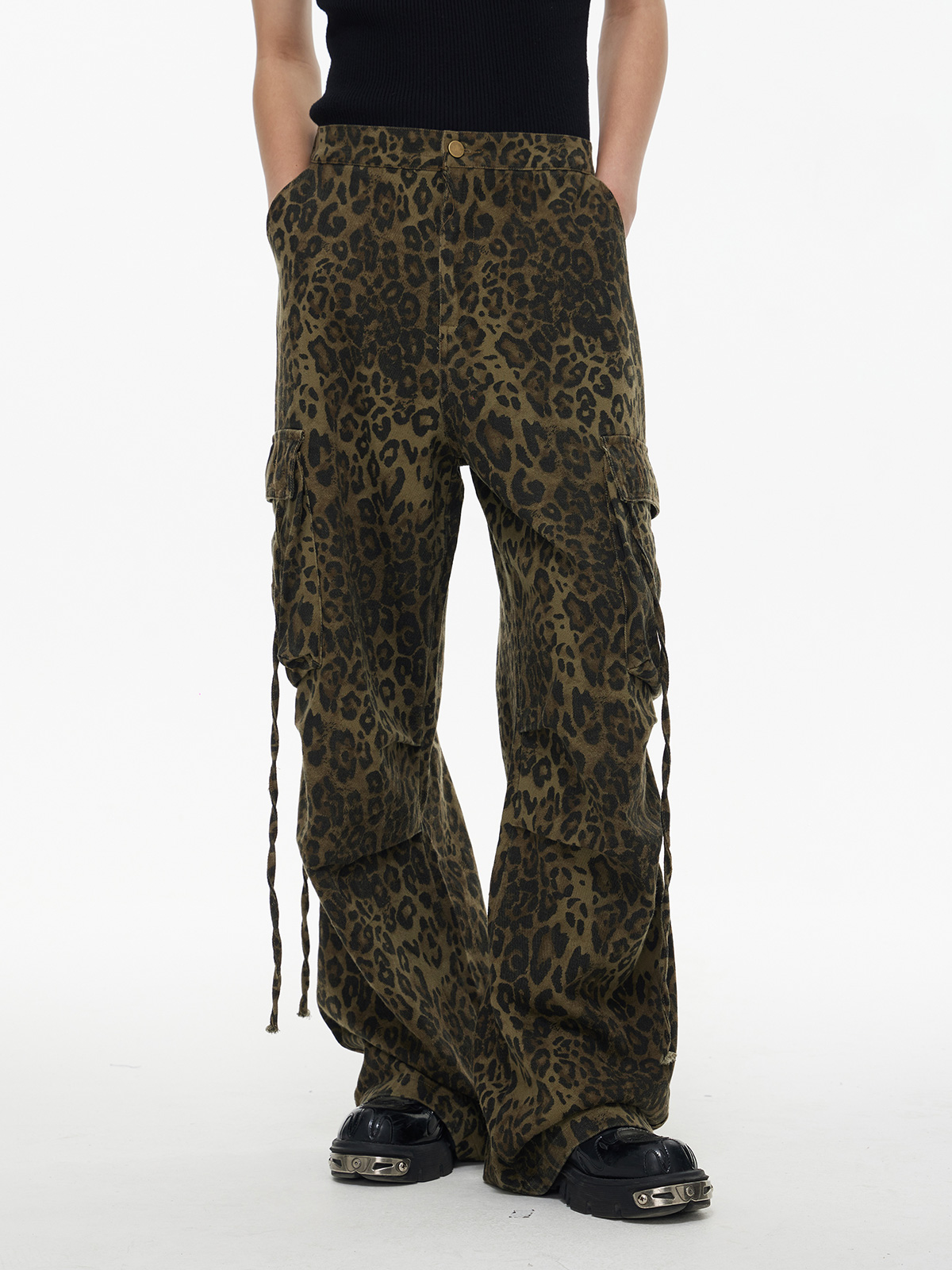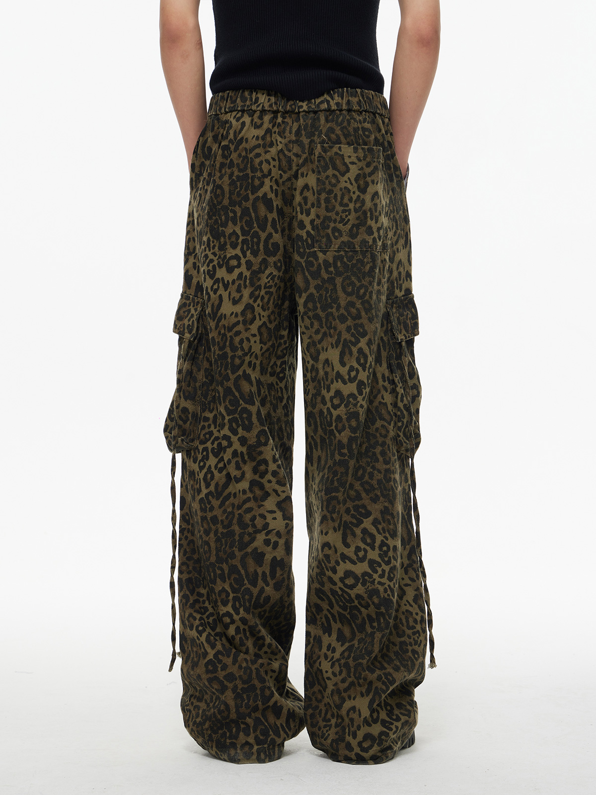 Leopard Print Multi-Pocket Straight Cargo Pants WN13584