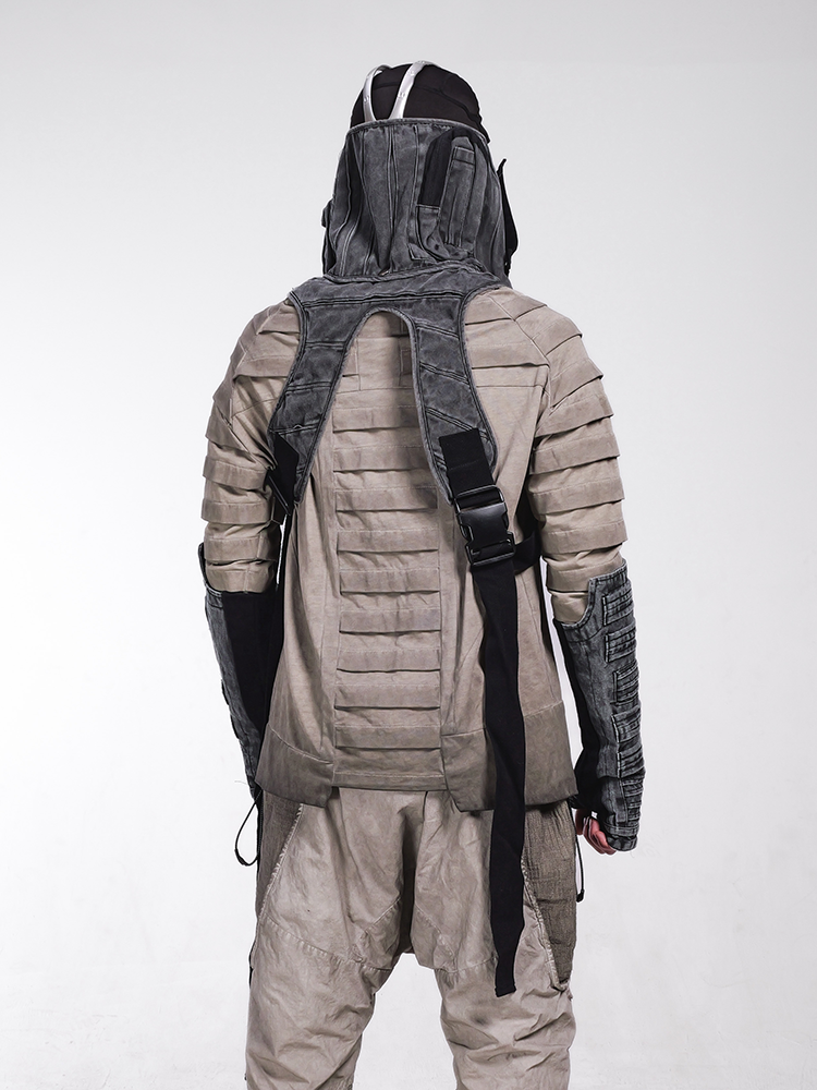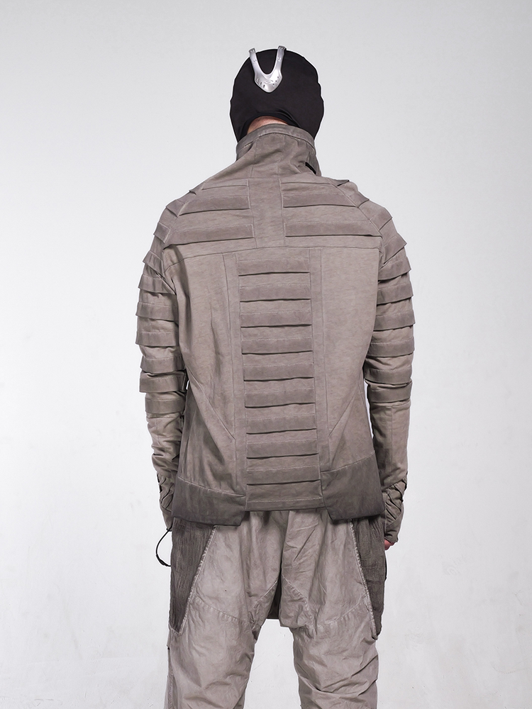 High-Neck Integrated Sleeve Pleats Mud-Dyed Long Sleeve T-Shirt WN13875