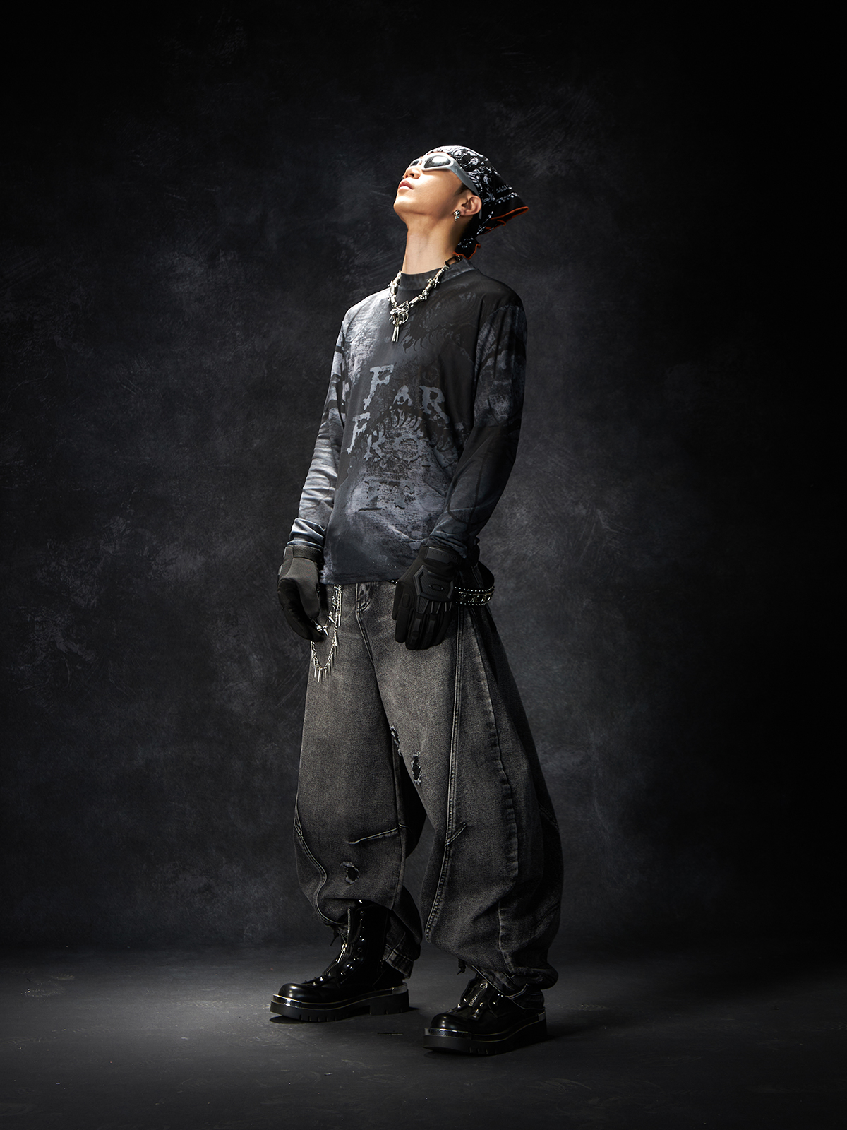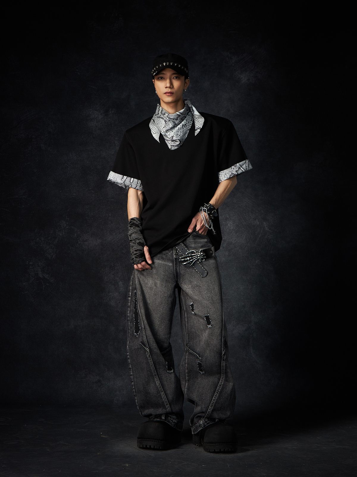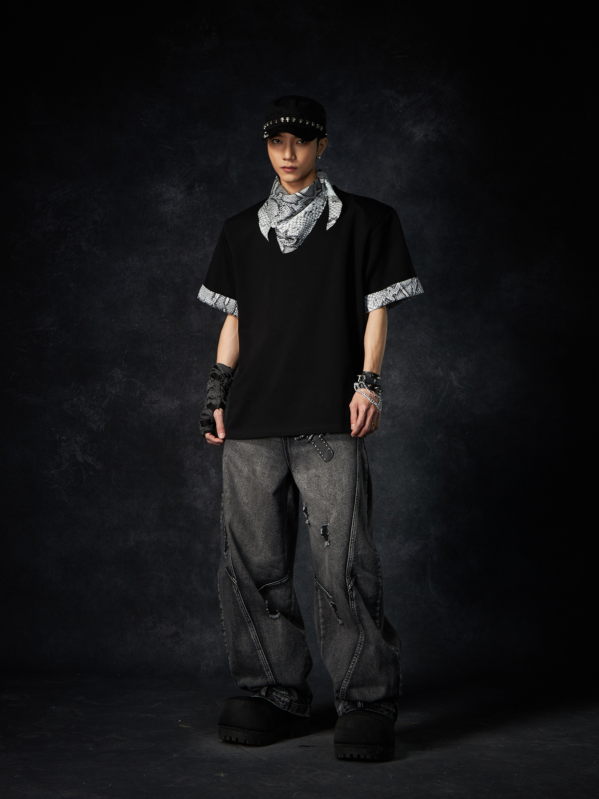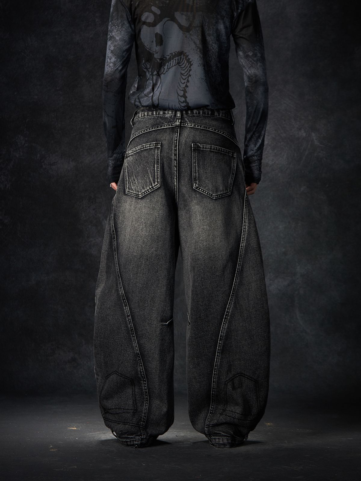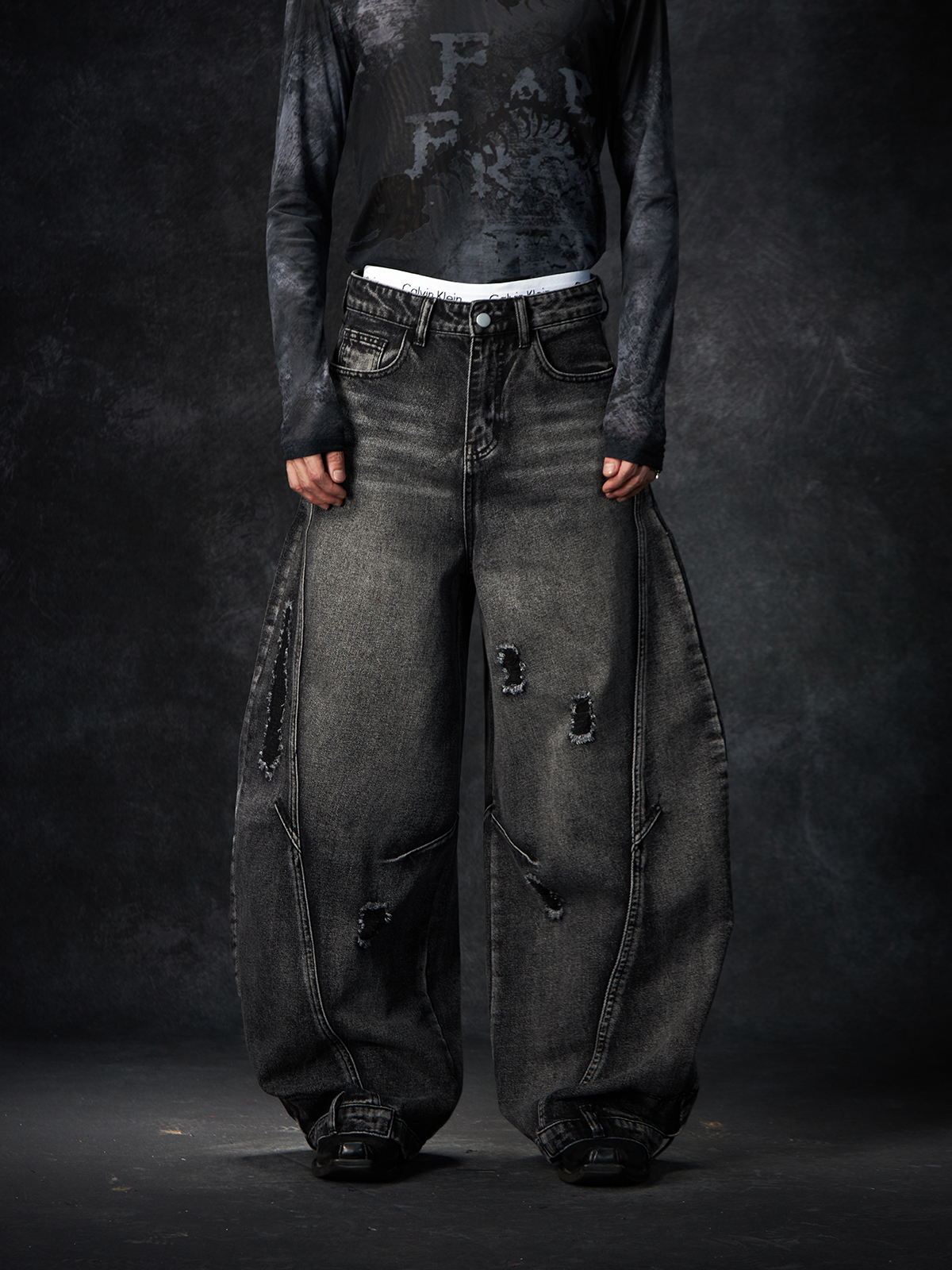Slit Damage Washed Wide-leg Denim Jeans WN15244