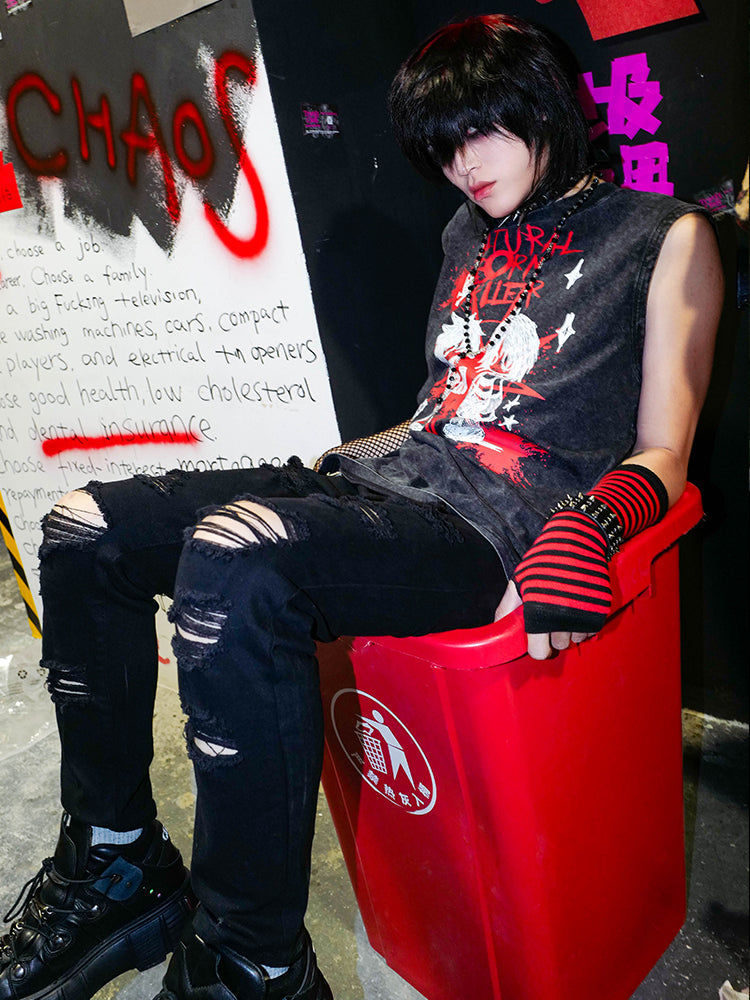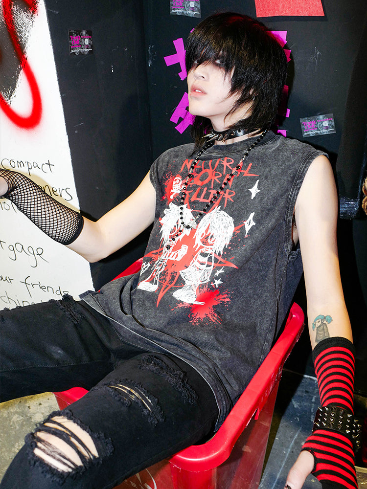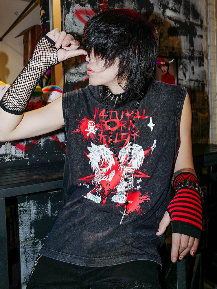 Graphic Design Washed Loose Sleeveless T-Shirt WN15903