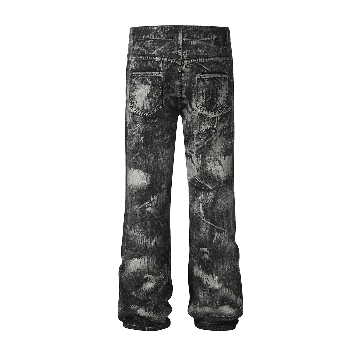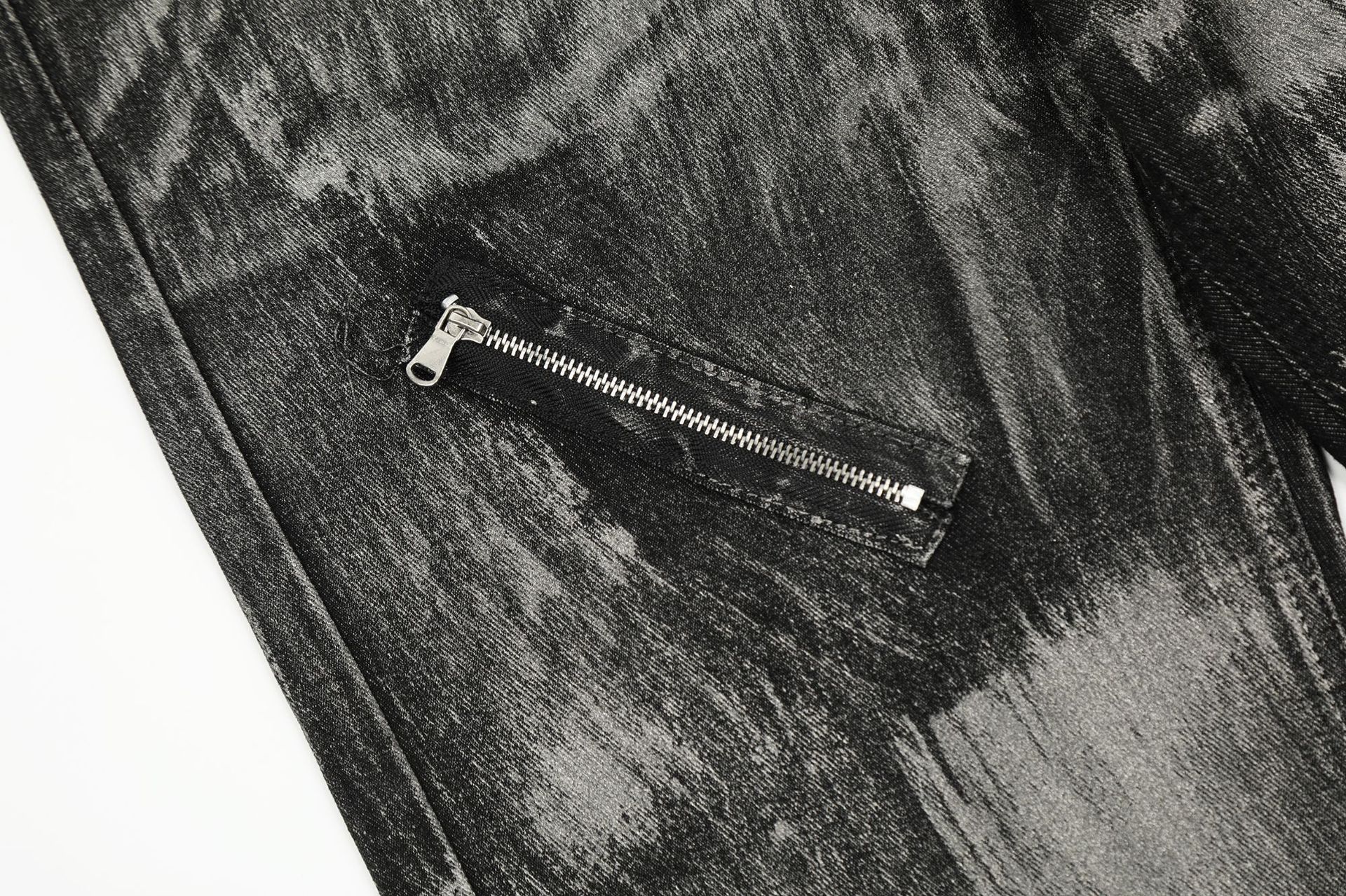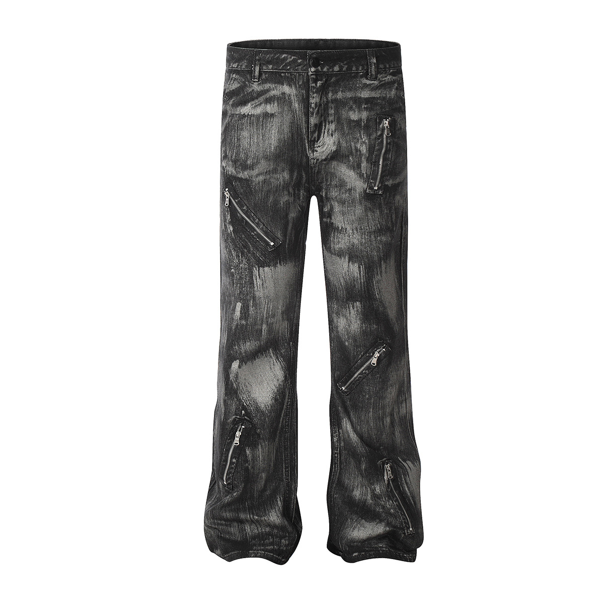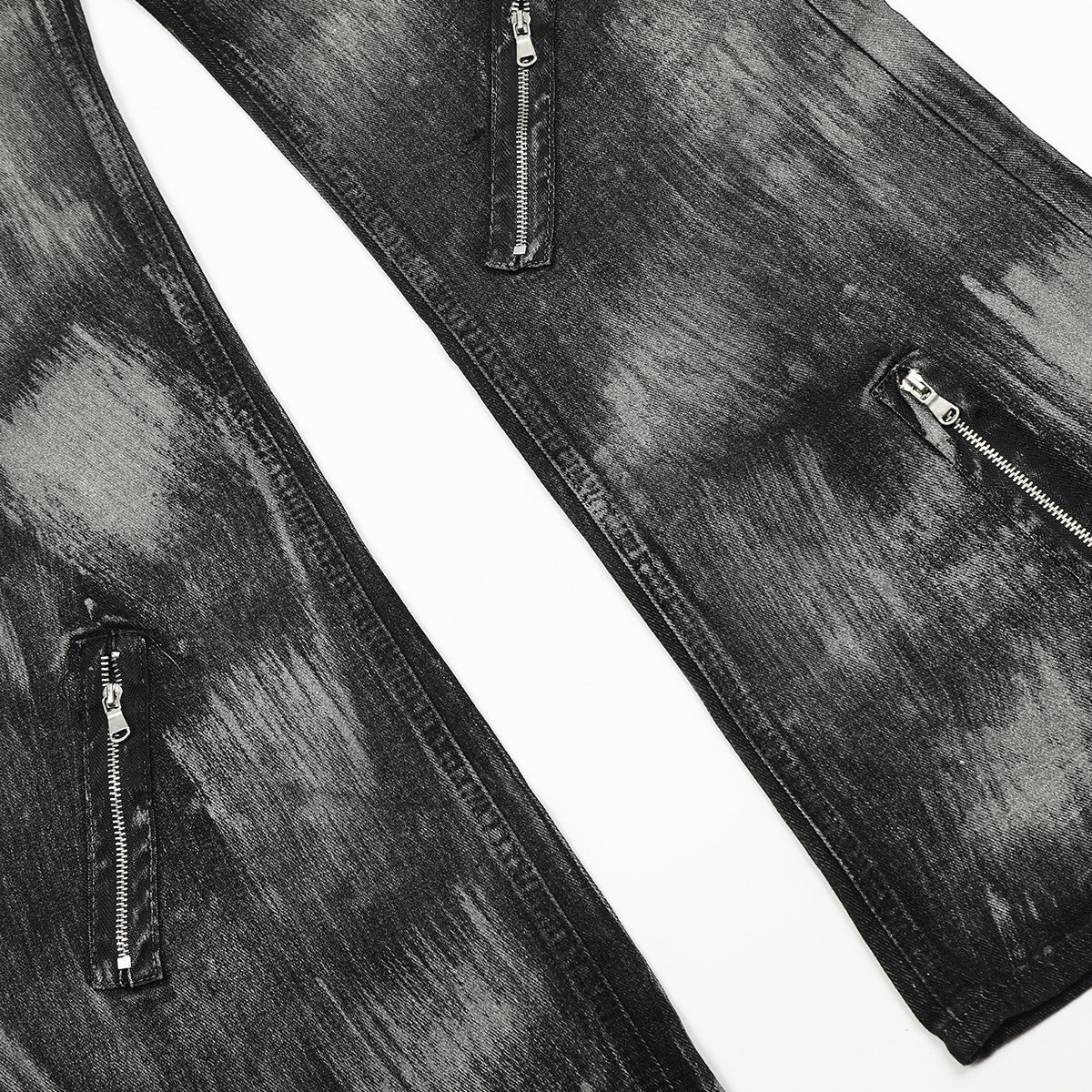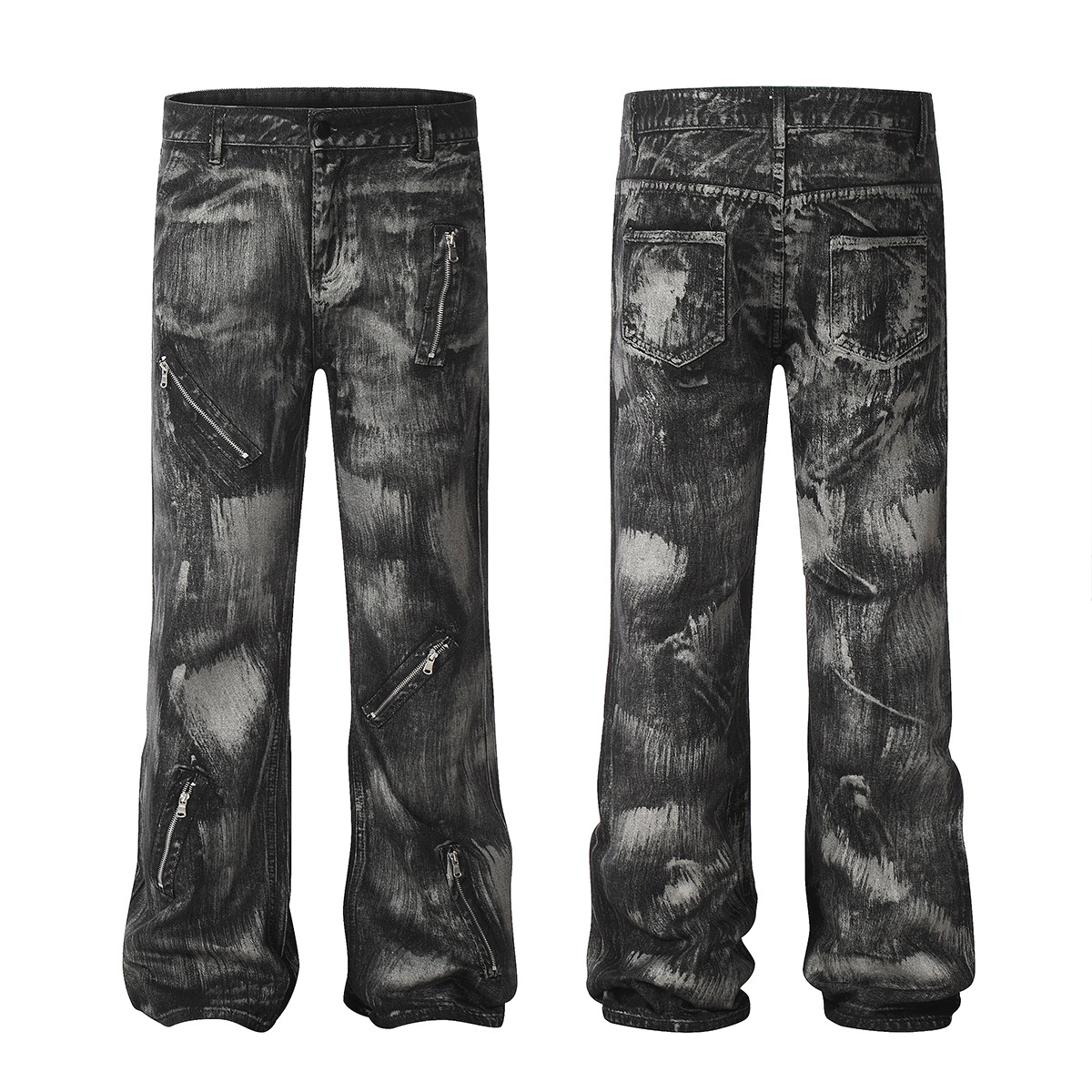 Paint Brush Zipper Design Micro Flare Denim Jeans WN16171