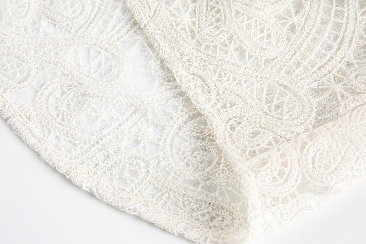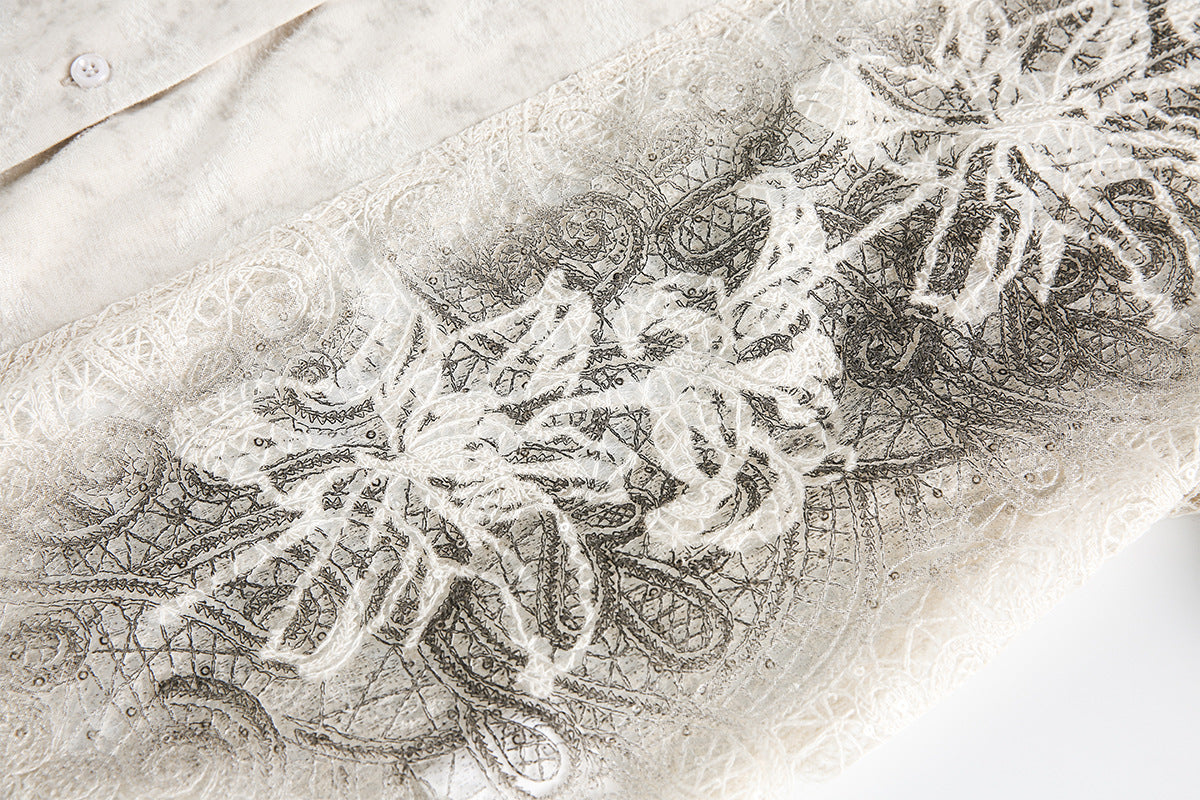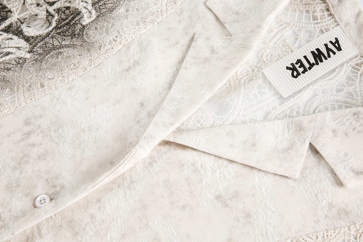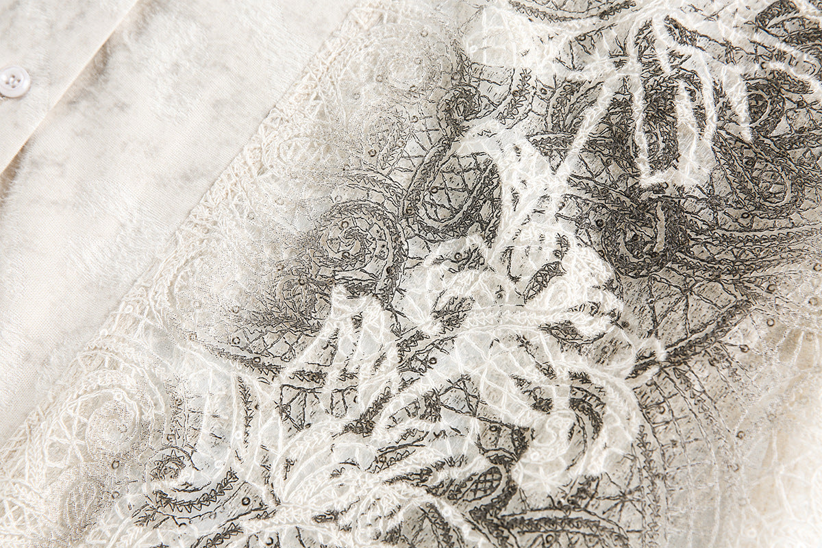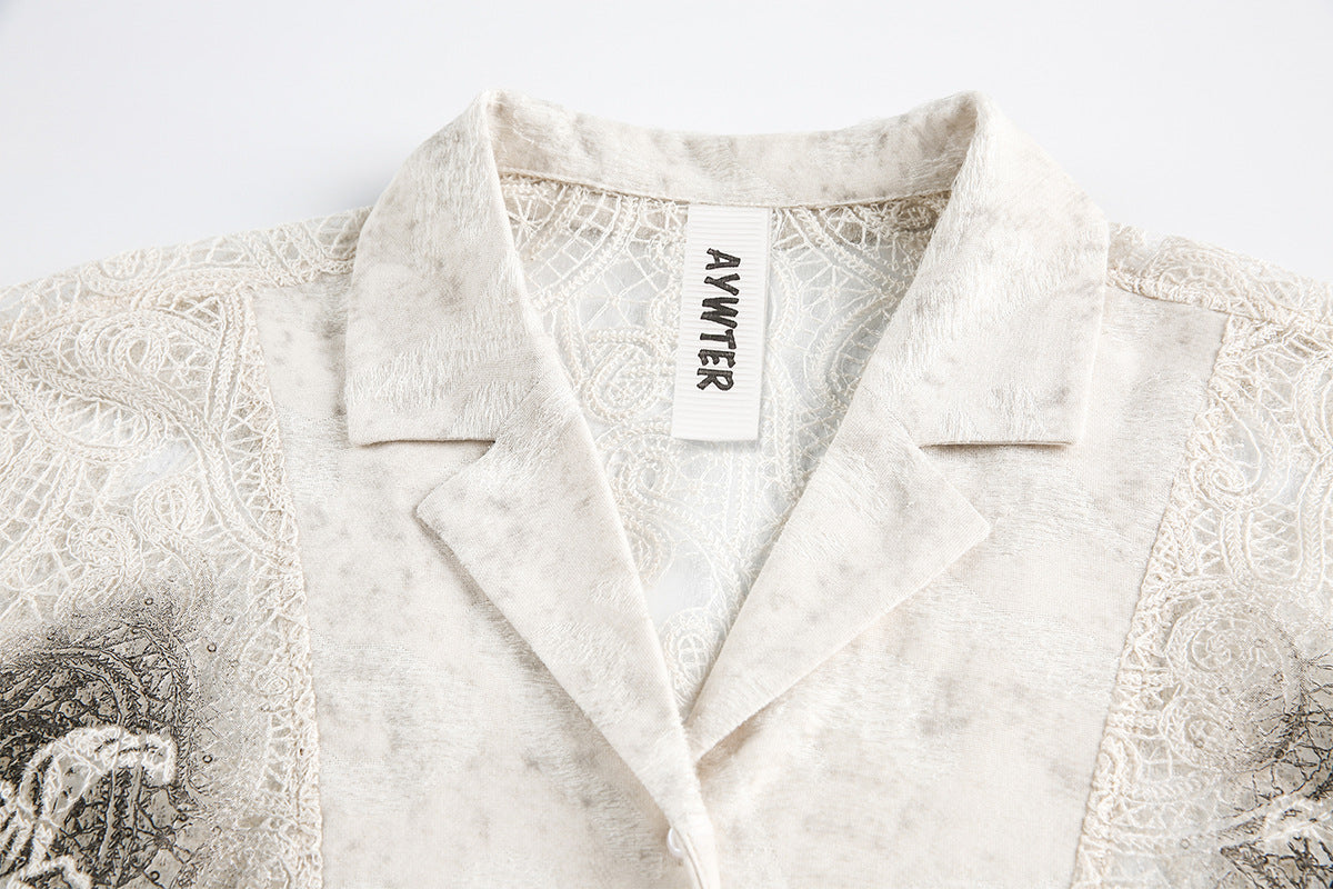 Graffiti Lace Cutout Short Sleeve Shirt WN16181