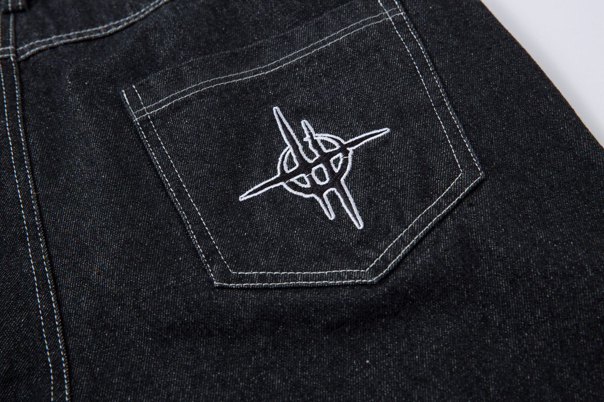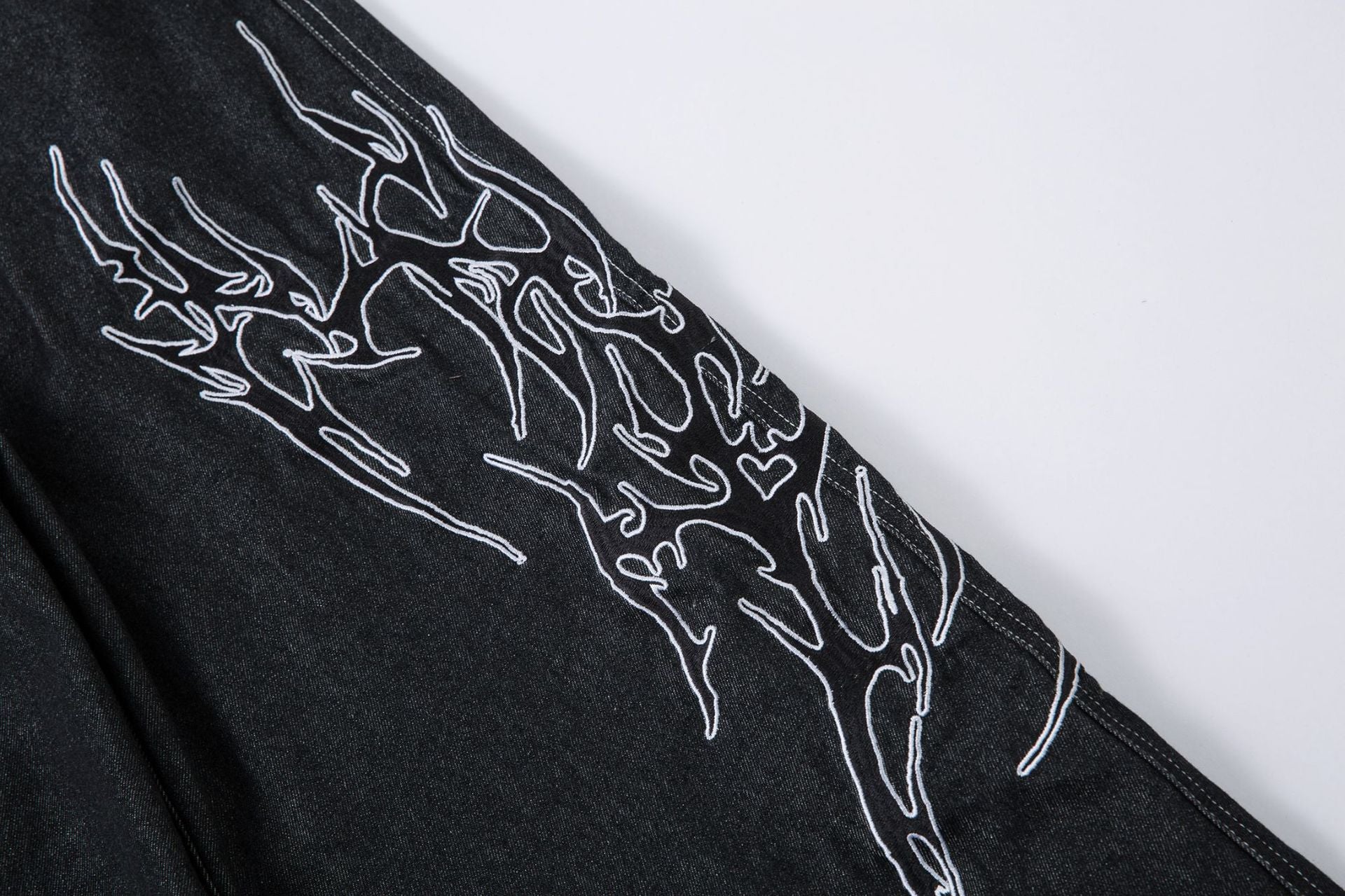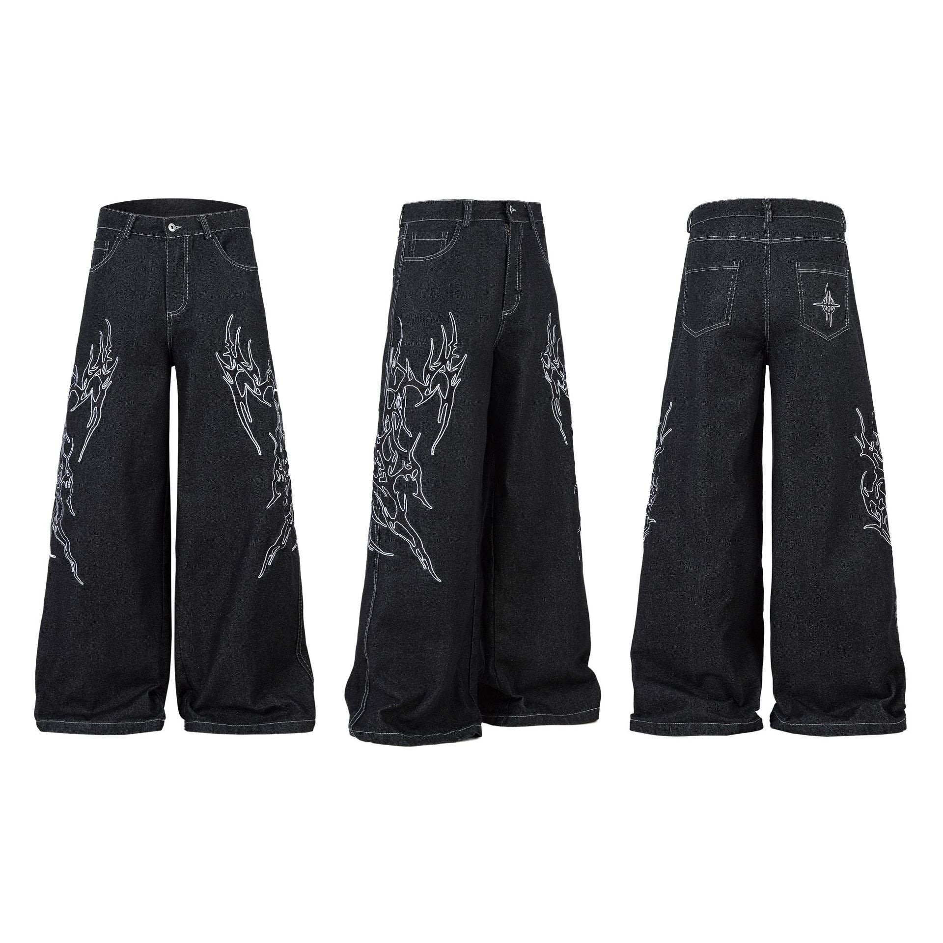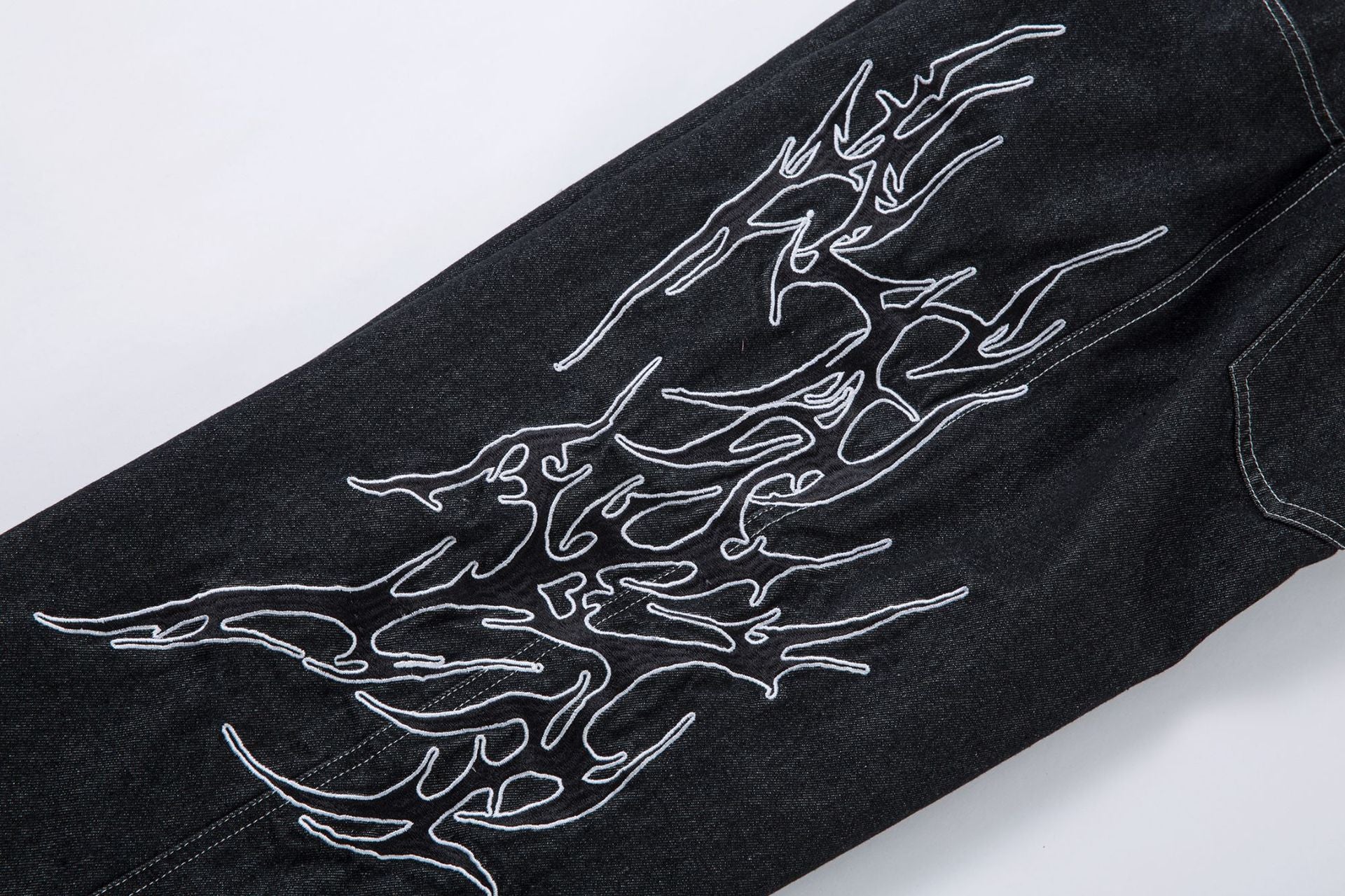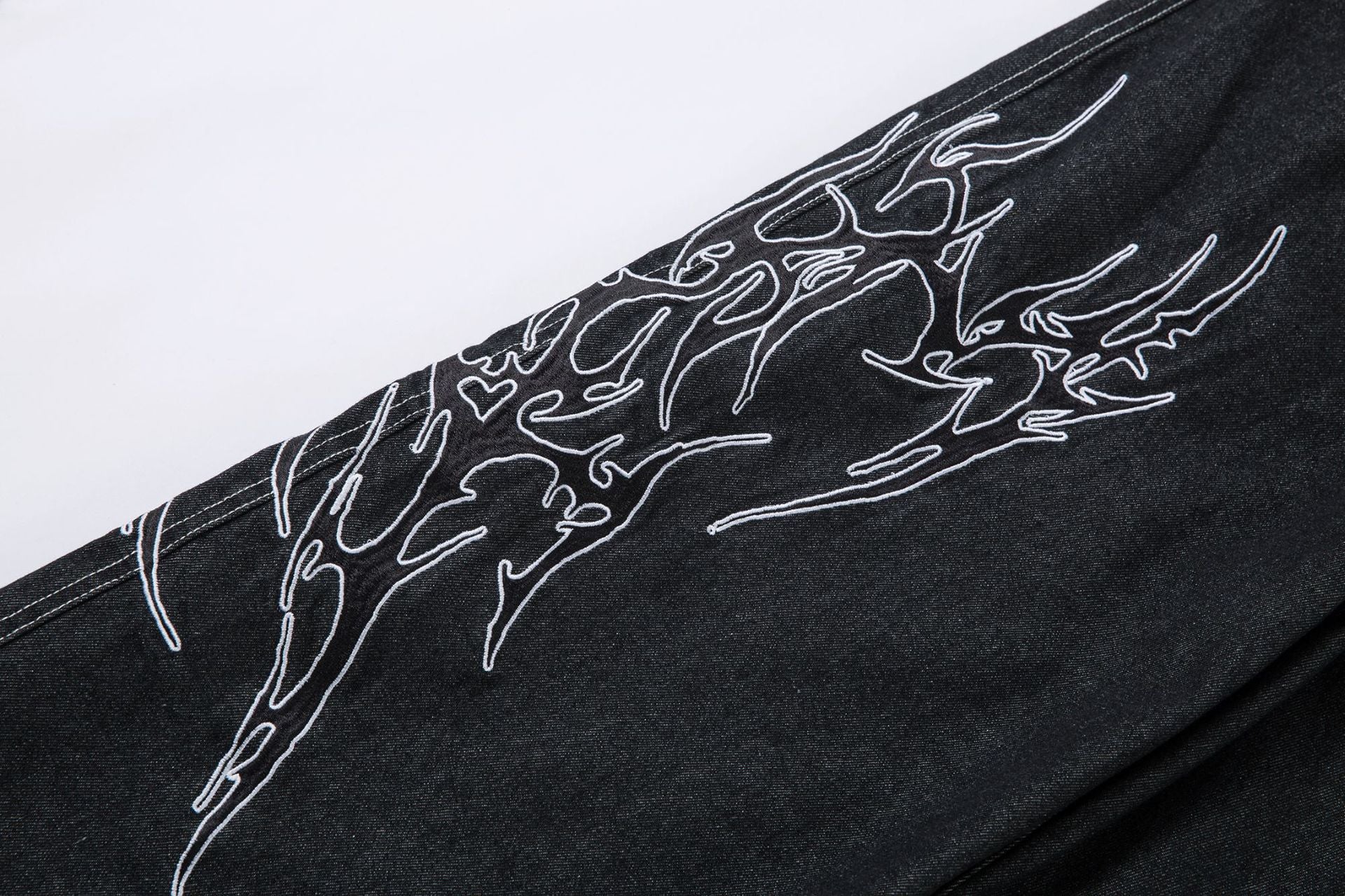 Graphic Embroidery Wide Leg Denim Jeans WN16200