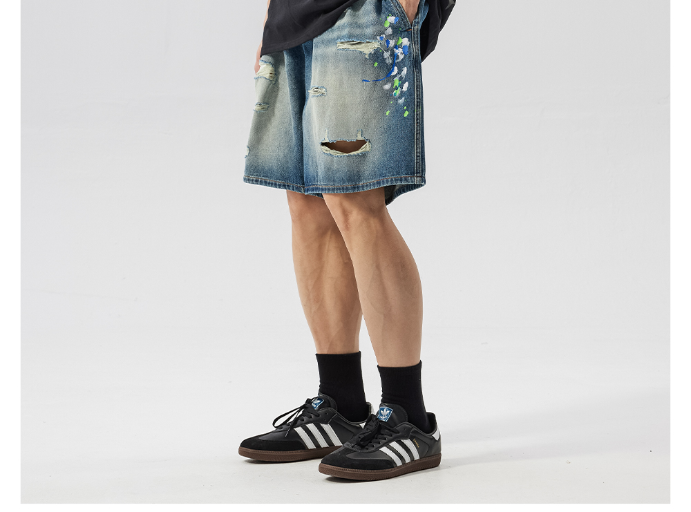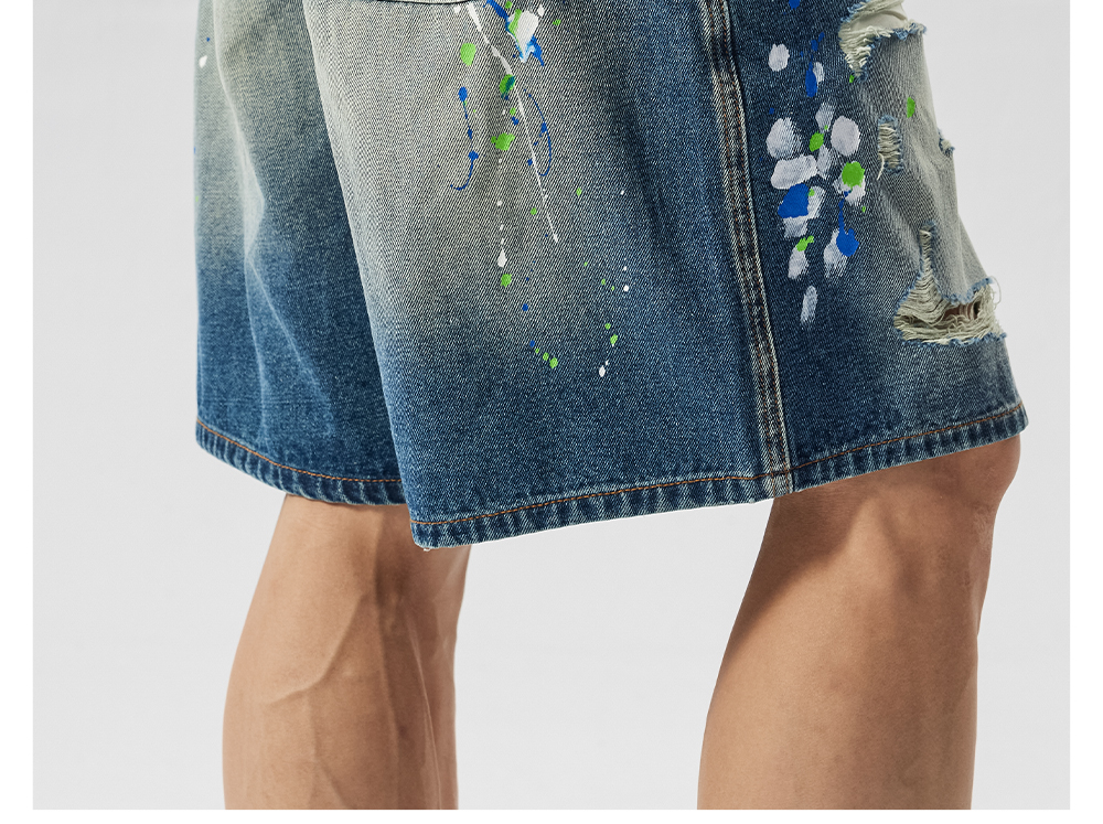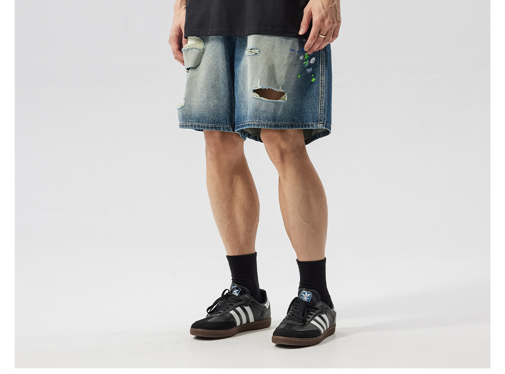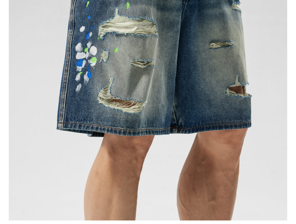 Raw Hem Damage Drawstring Washed Half Denim Jeans WN17484