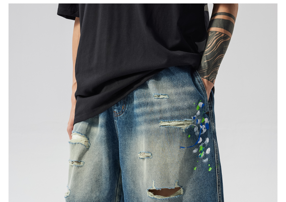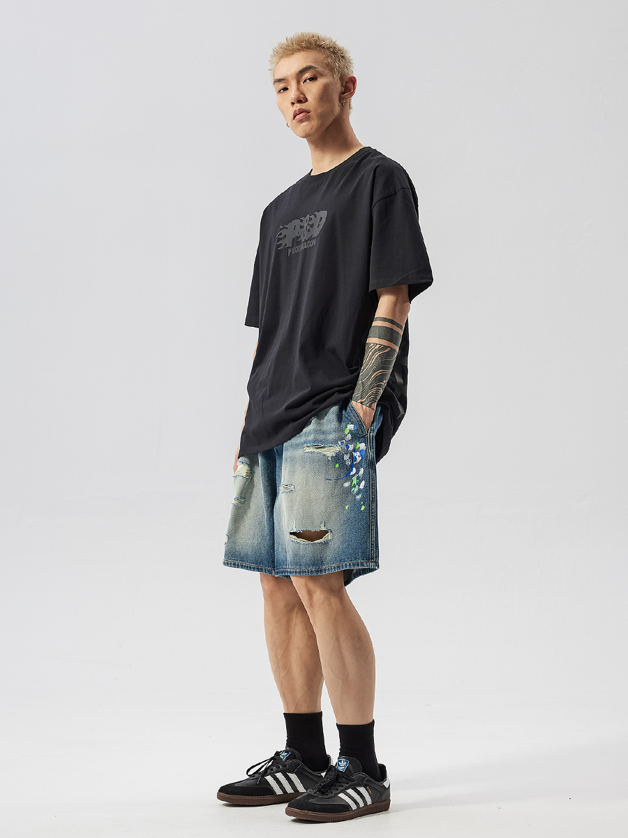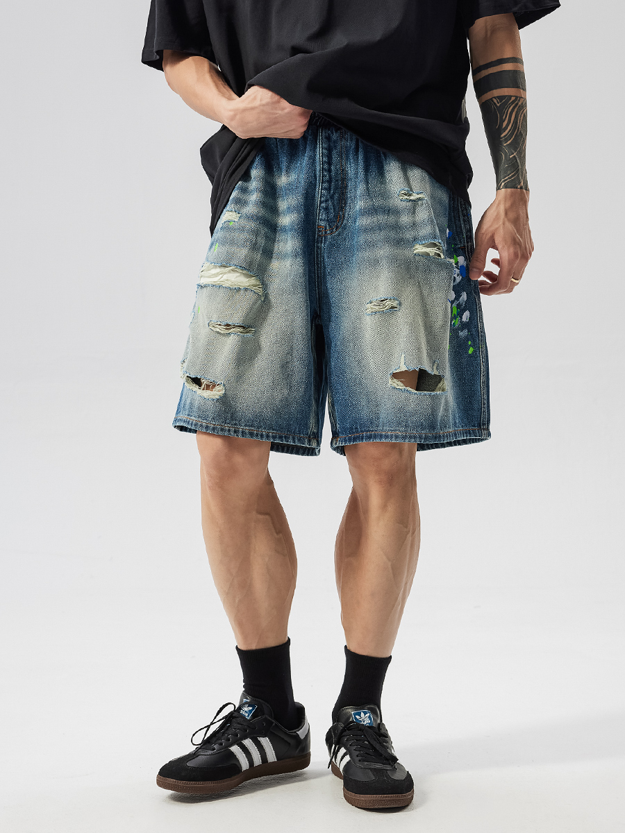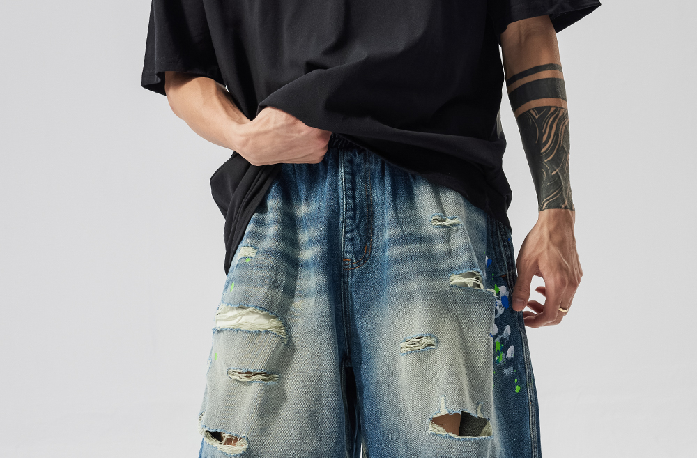 Raw Hem Damage Drawstring Washed Half Denim Jeans WN17484