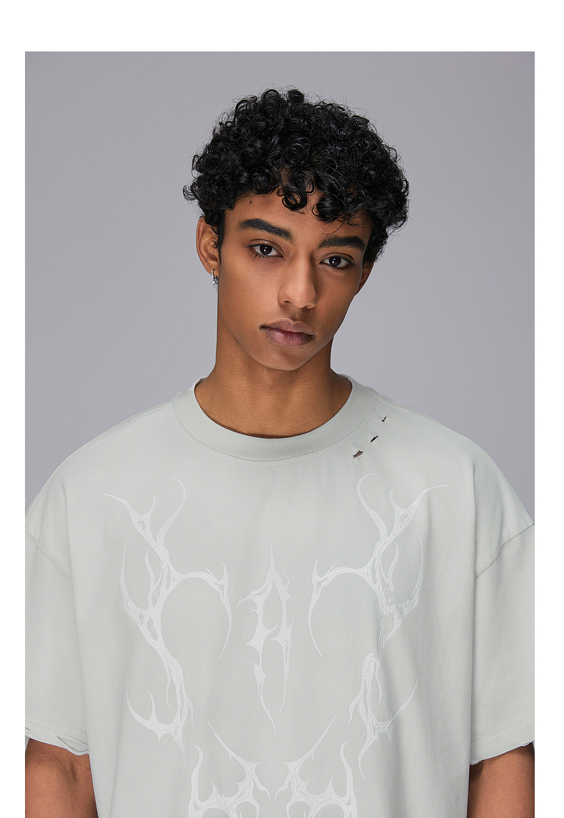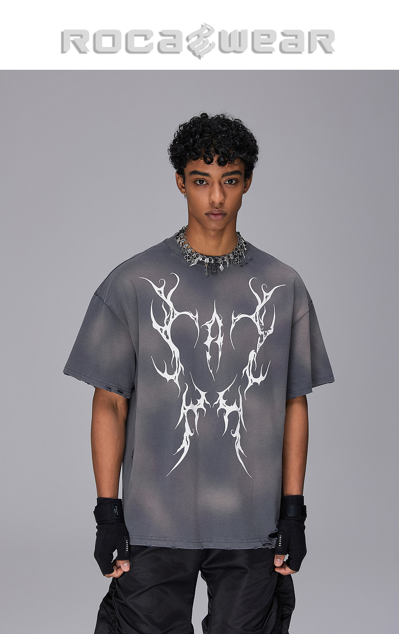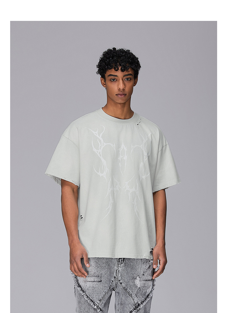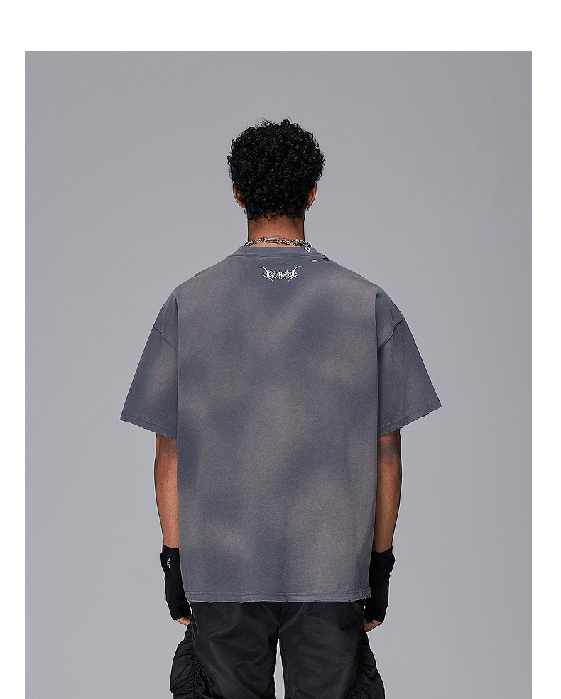 3D Paste Print Spray Wash Heavyweight Short Sleeve T-Shirt WN17958