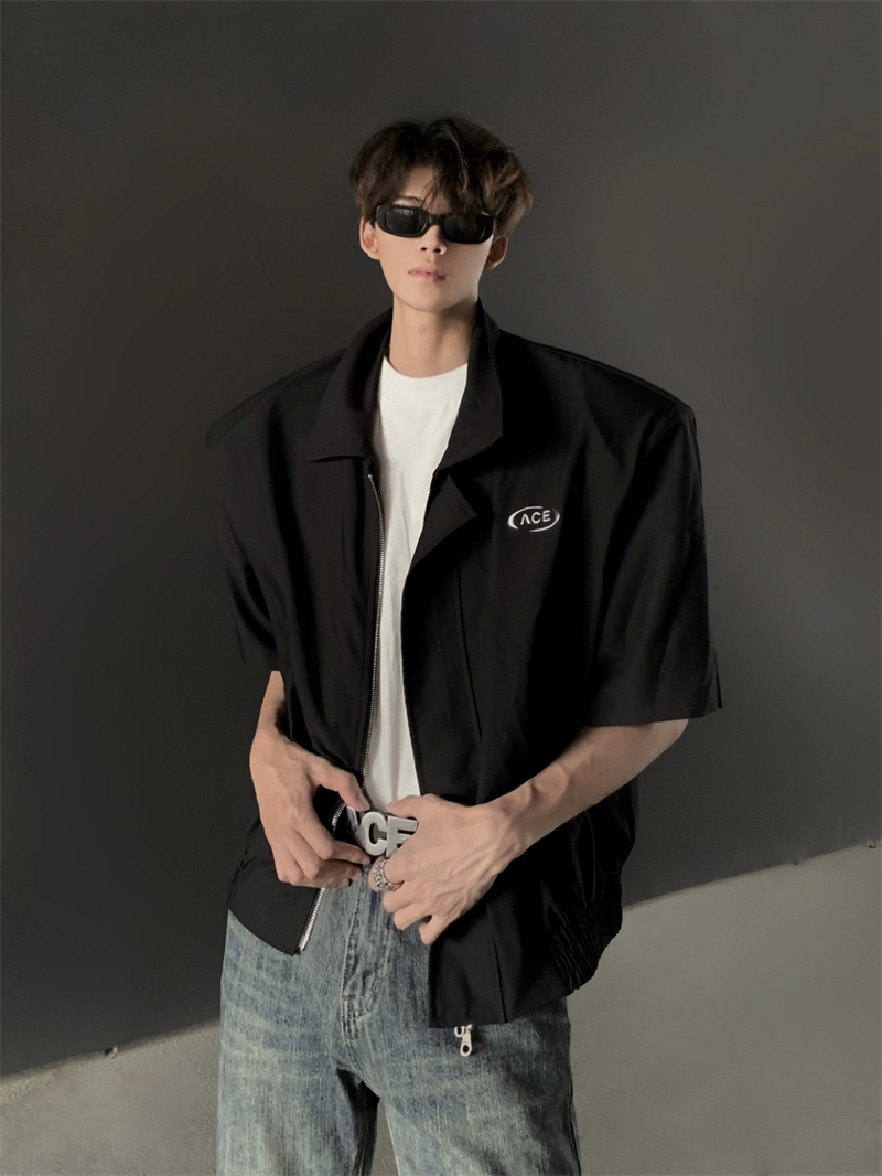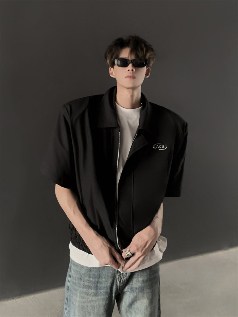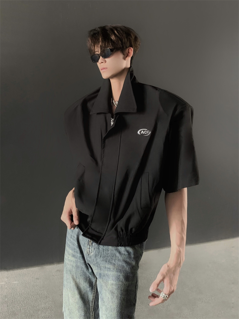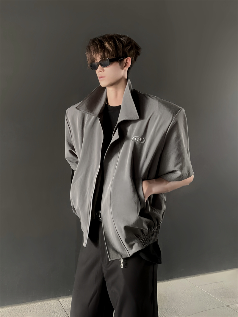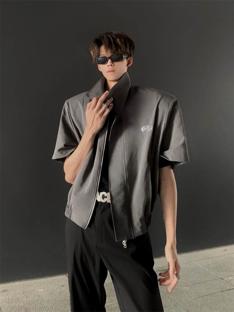 Deconstructed Oversized Lapel Shoulder-Pad Zipper Jacket WN20041